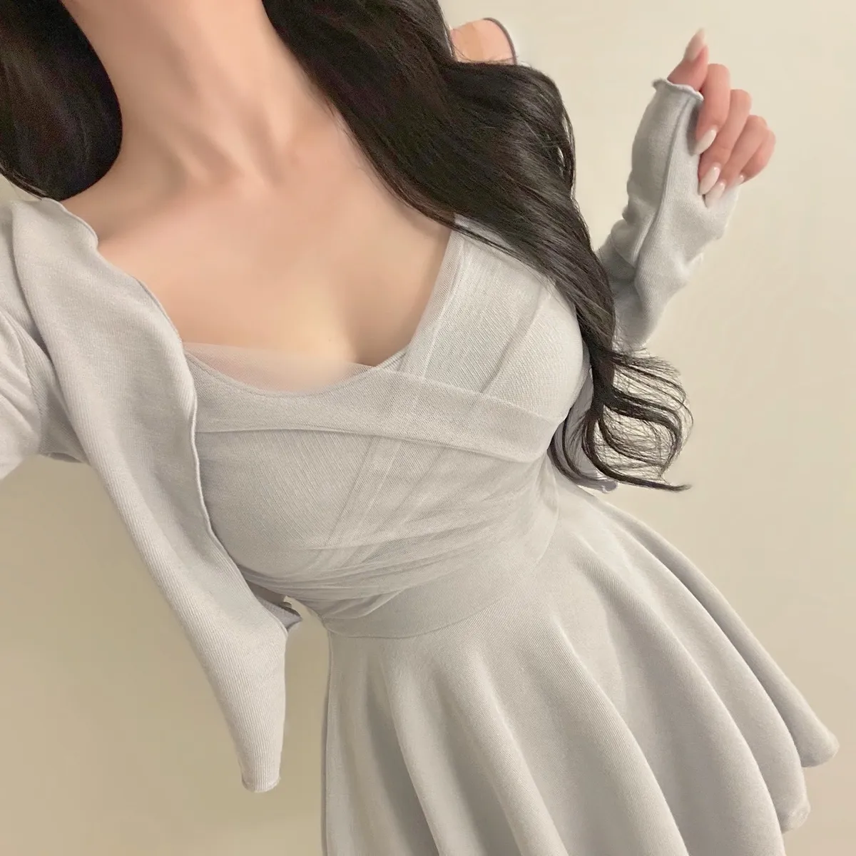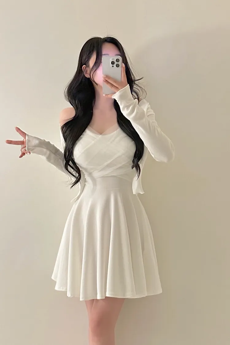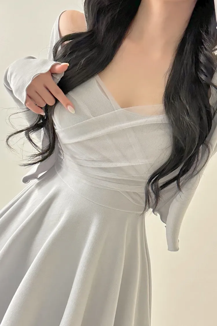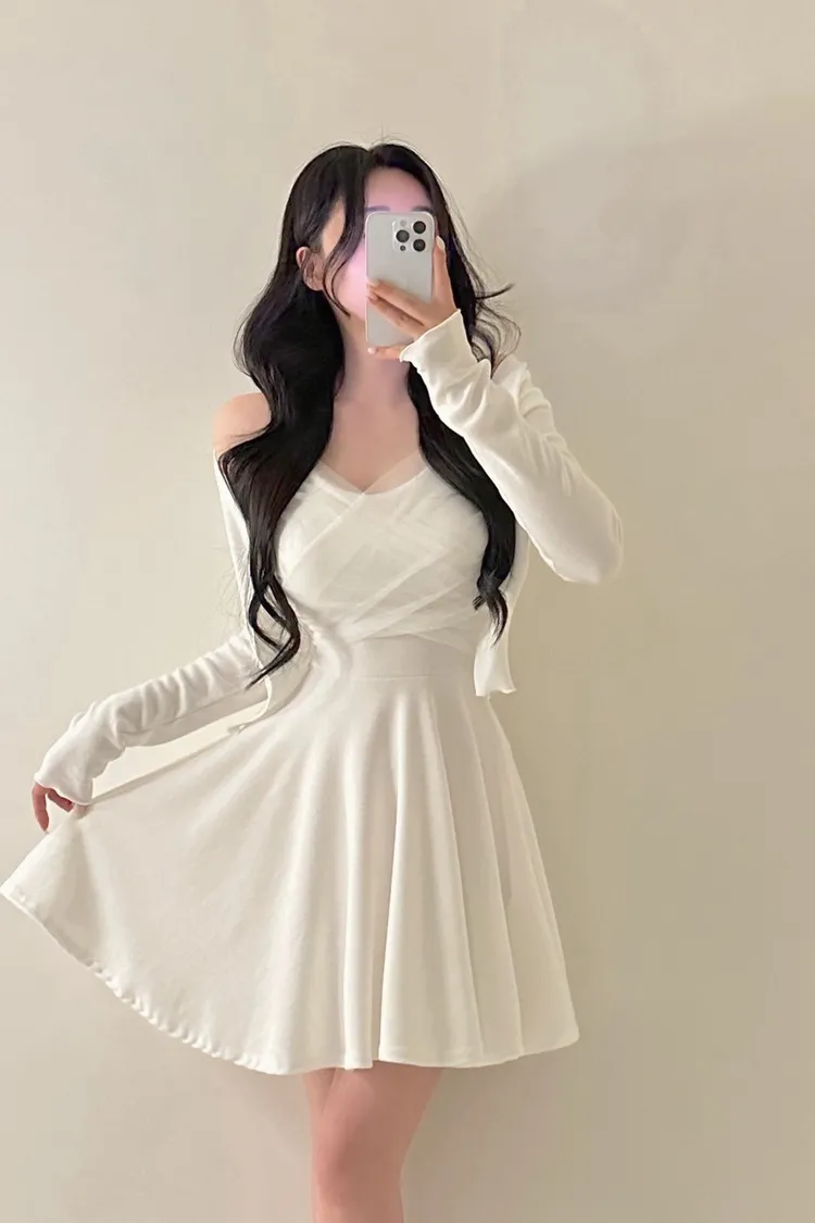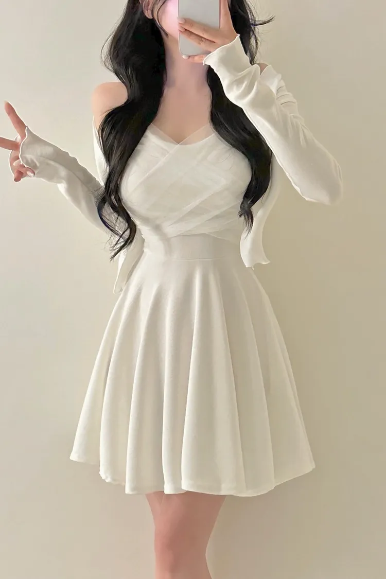 溫柔私藏細肩帶網紗短洋裝+開襟罩衫set
