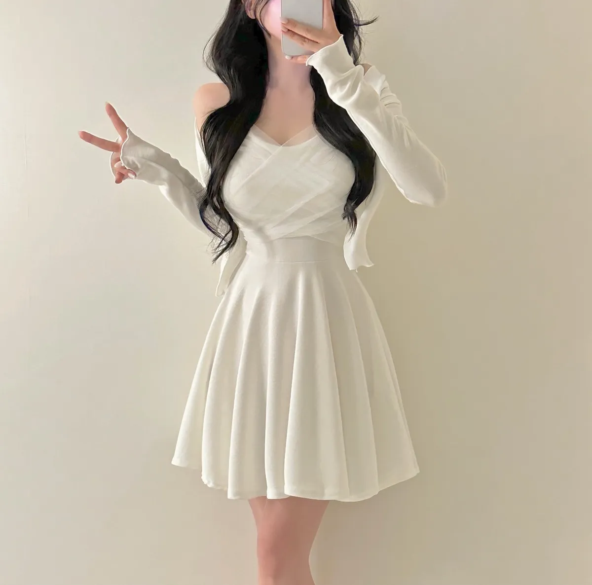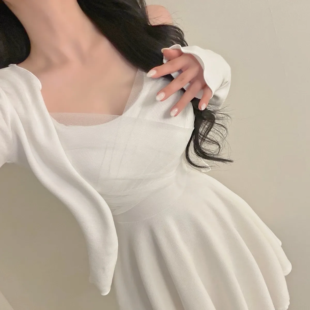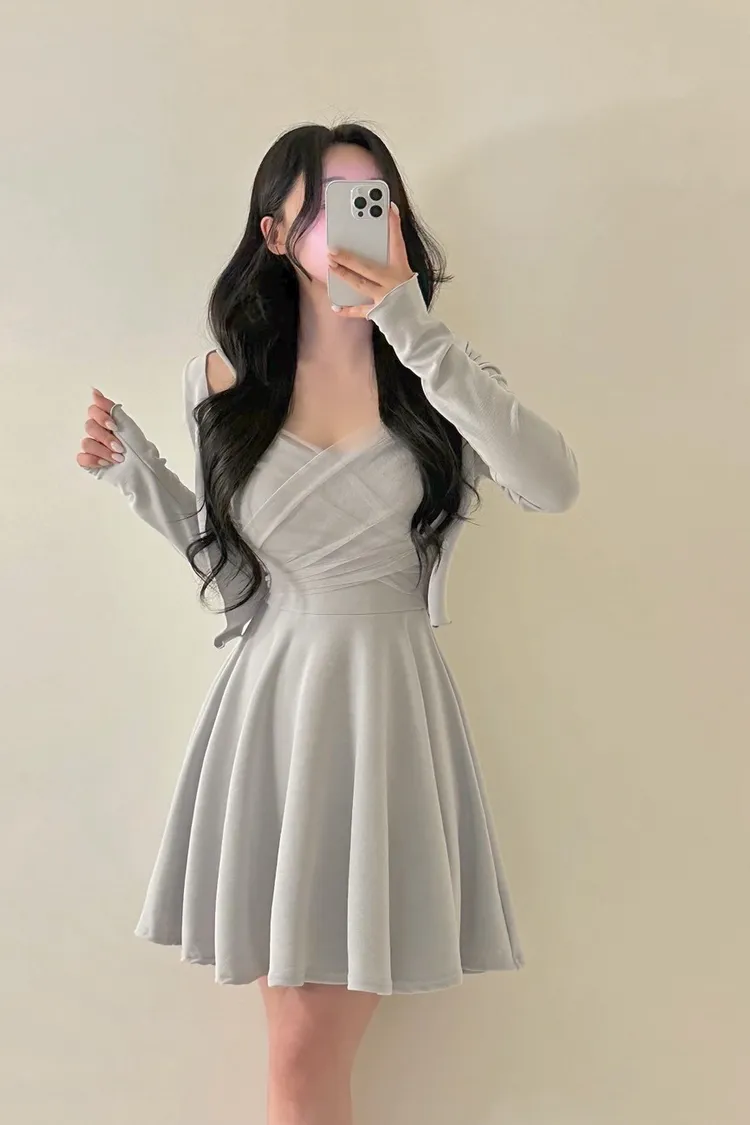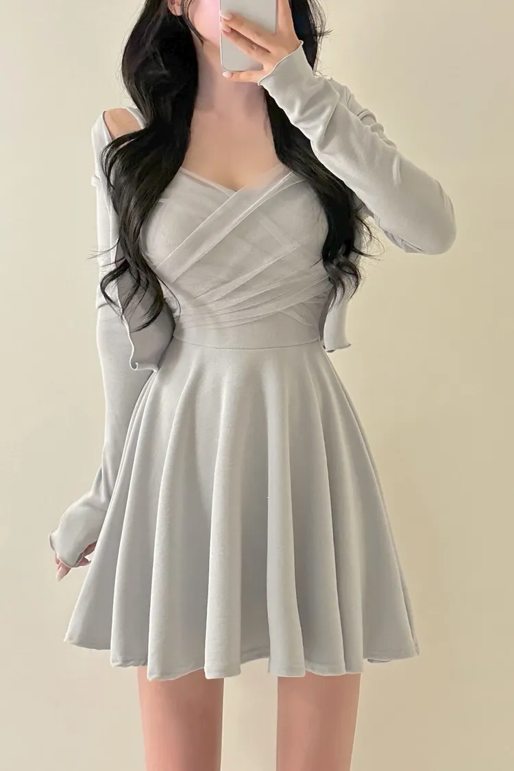 溫柔私藏細肩帶網紗短洋裝+開襟罩衫set
