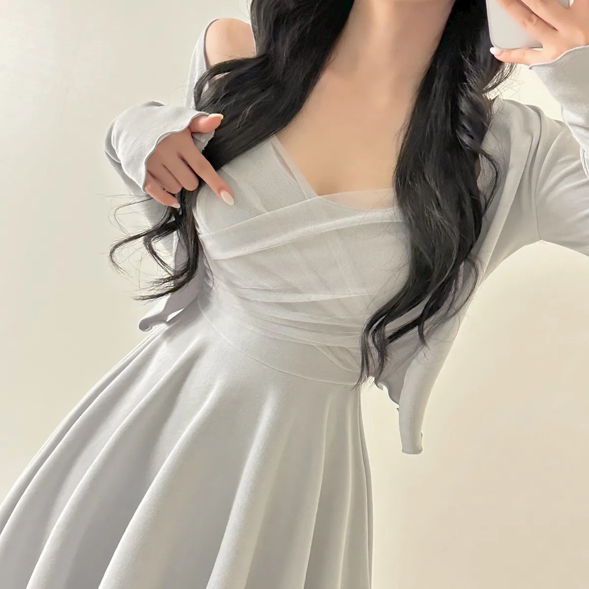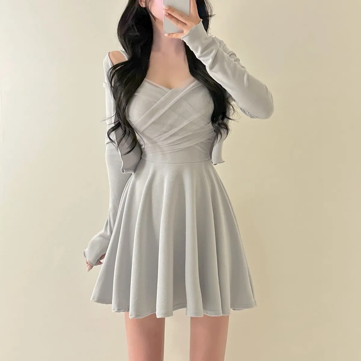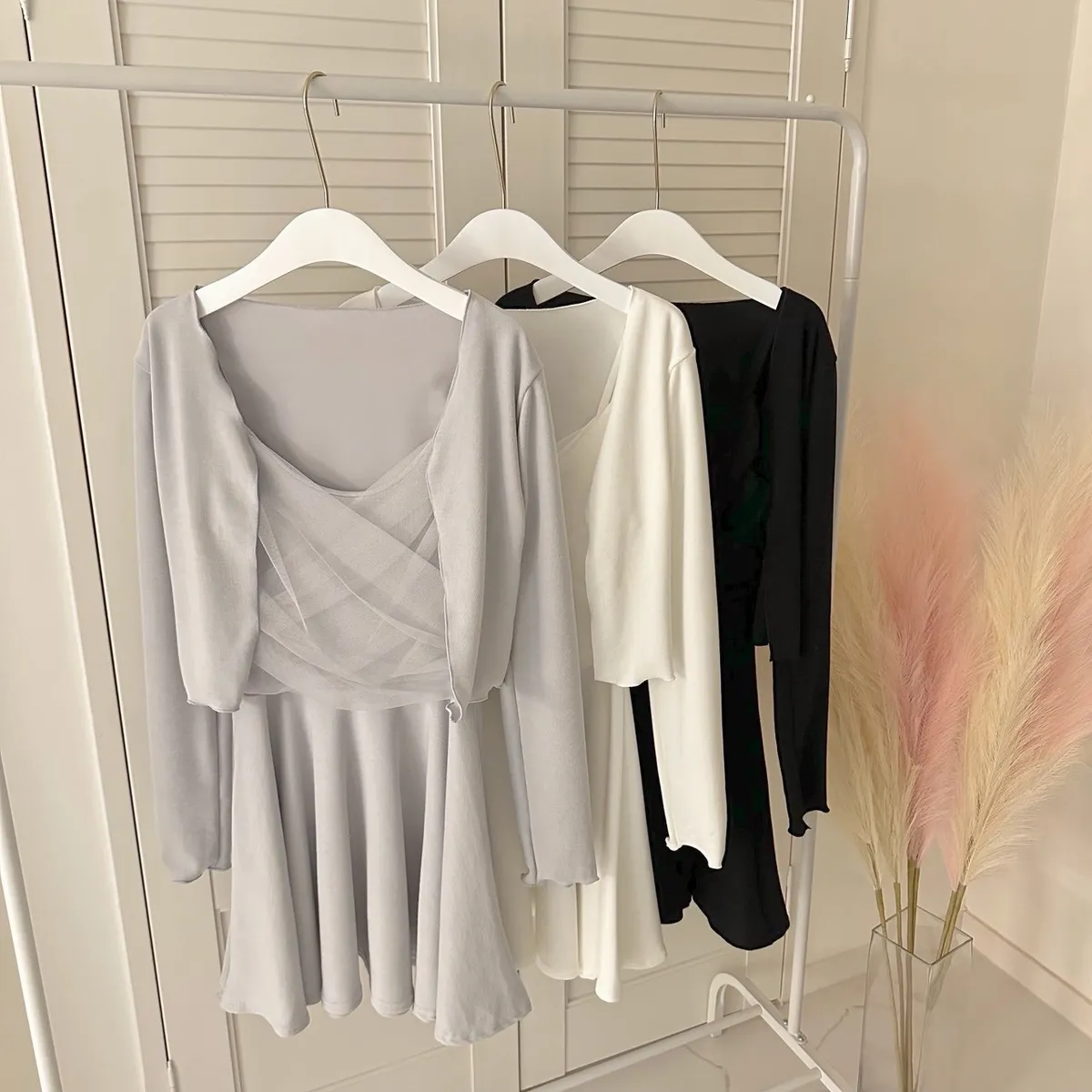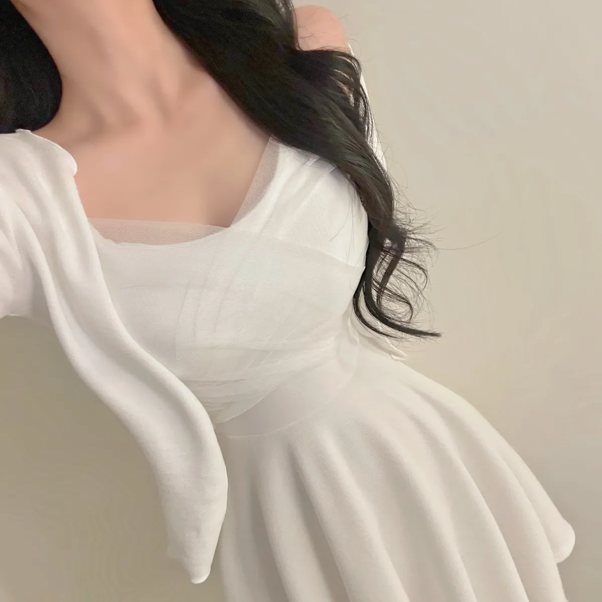 溫柔私藏細肩帶網紗短洋裝+開襟罩衫set