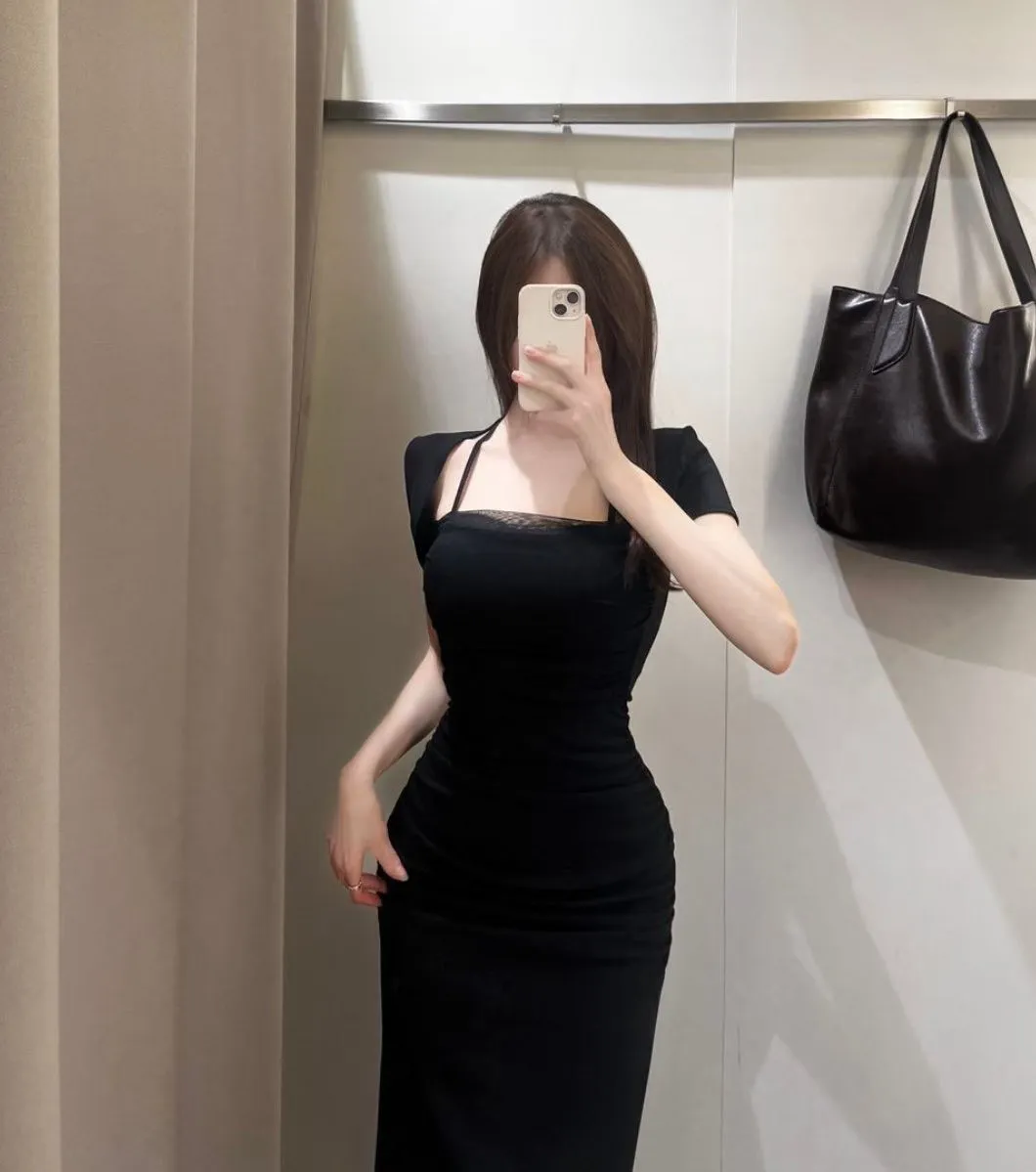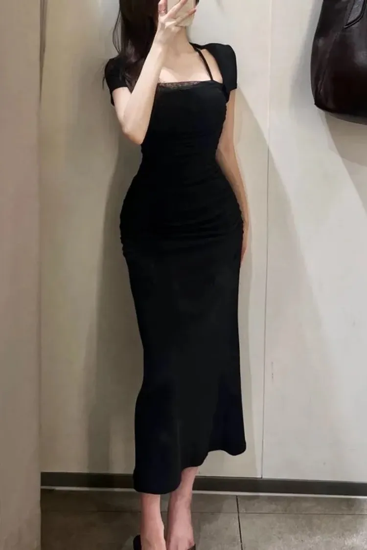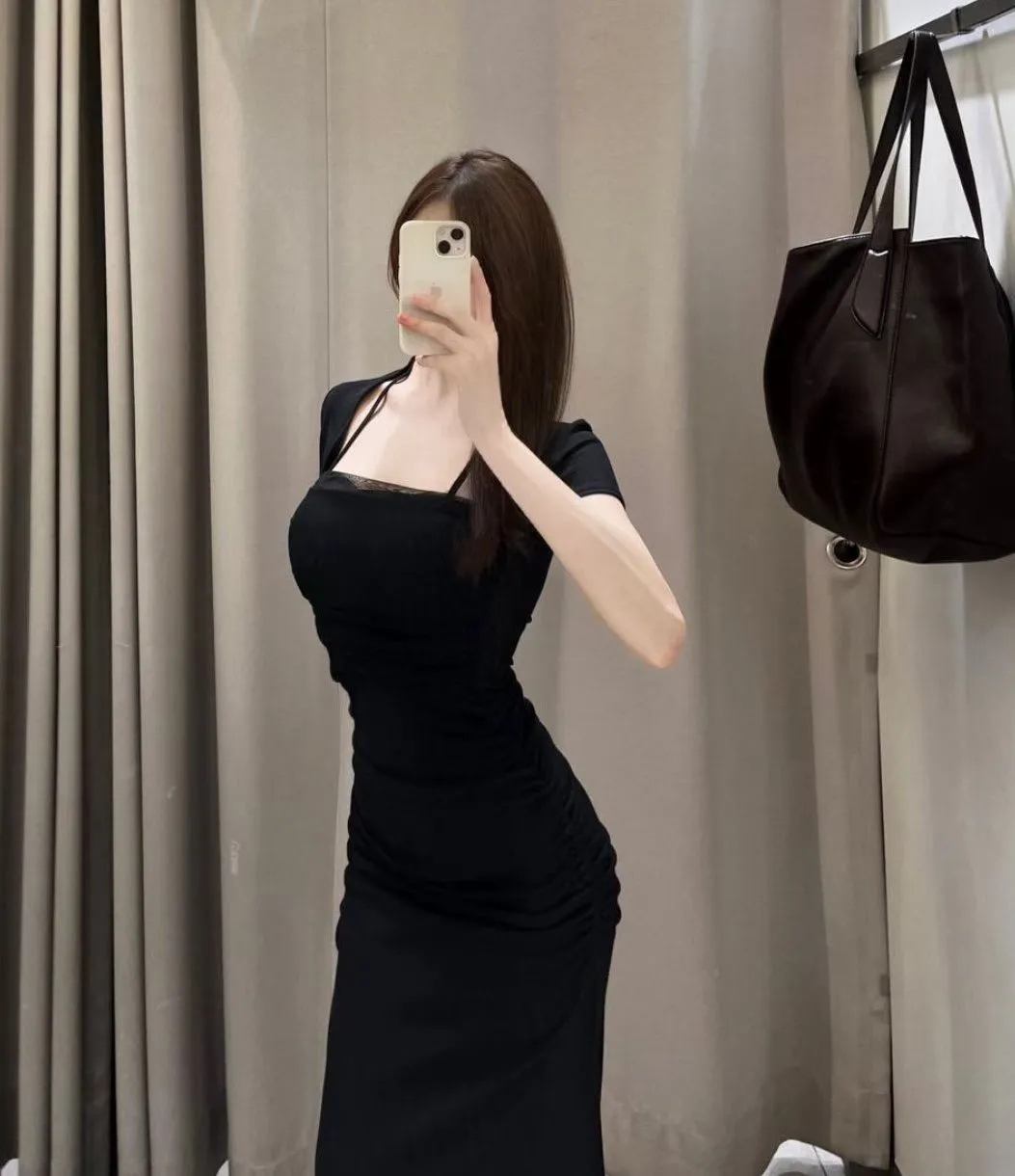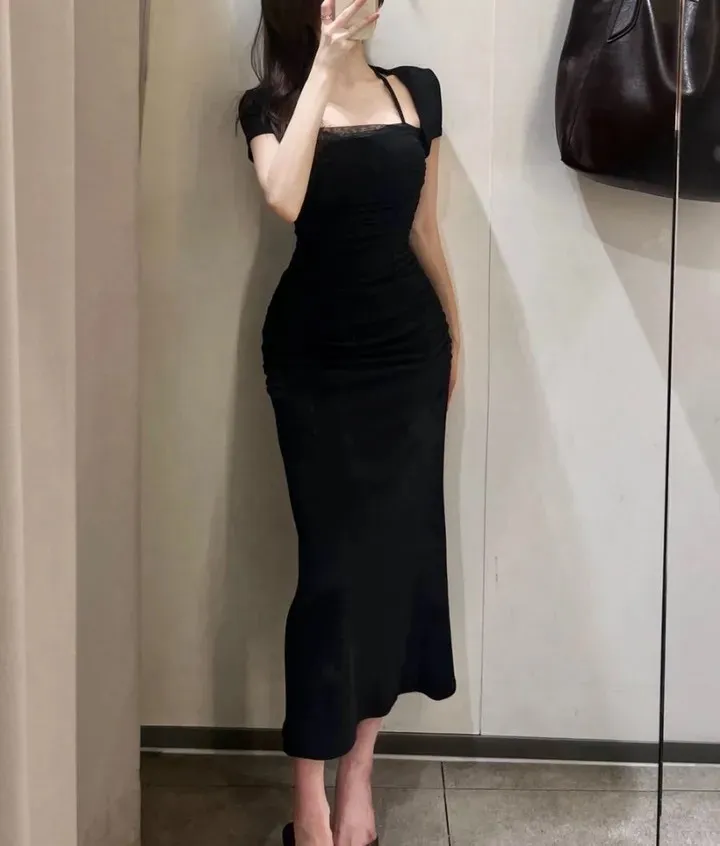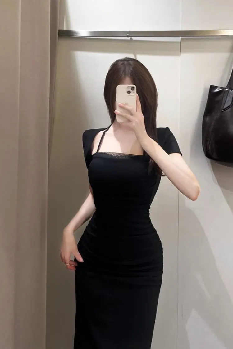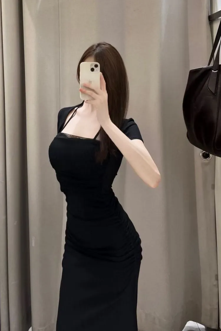 私藏檔口家彈力方領網紗棉質一件裙