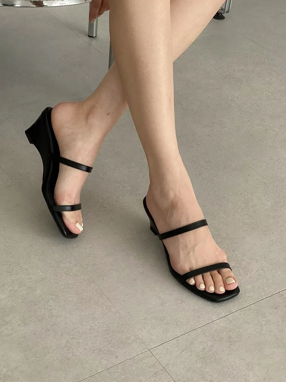 溫柔基本款百搭邊條厚底涼鞋