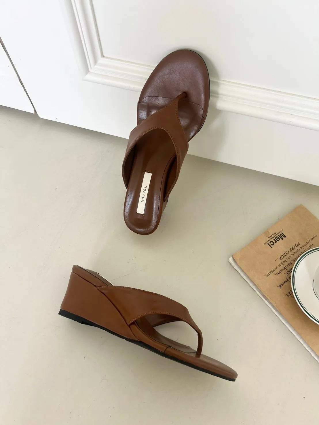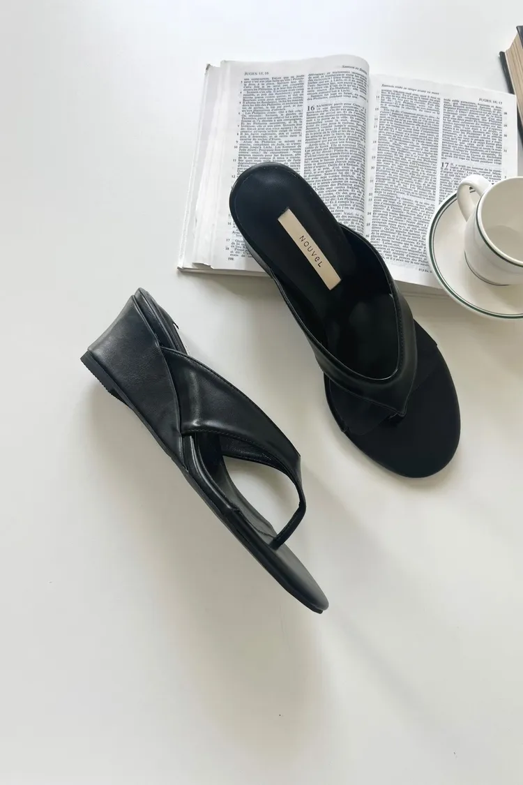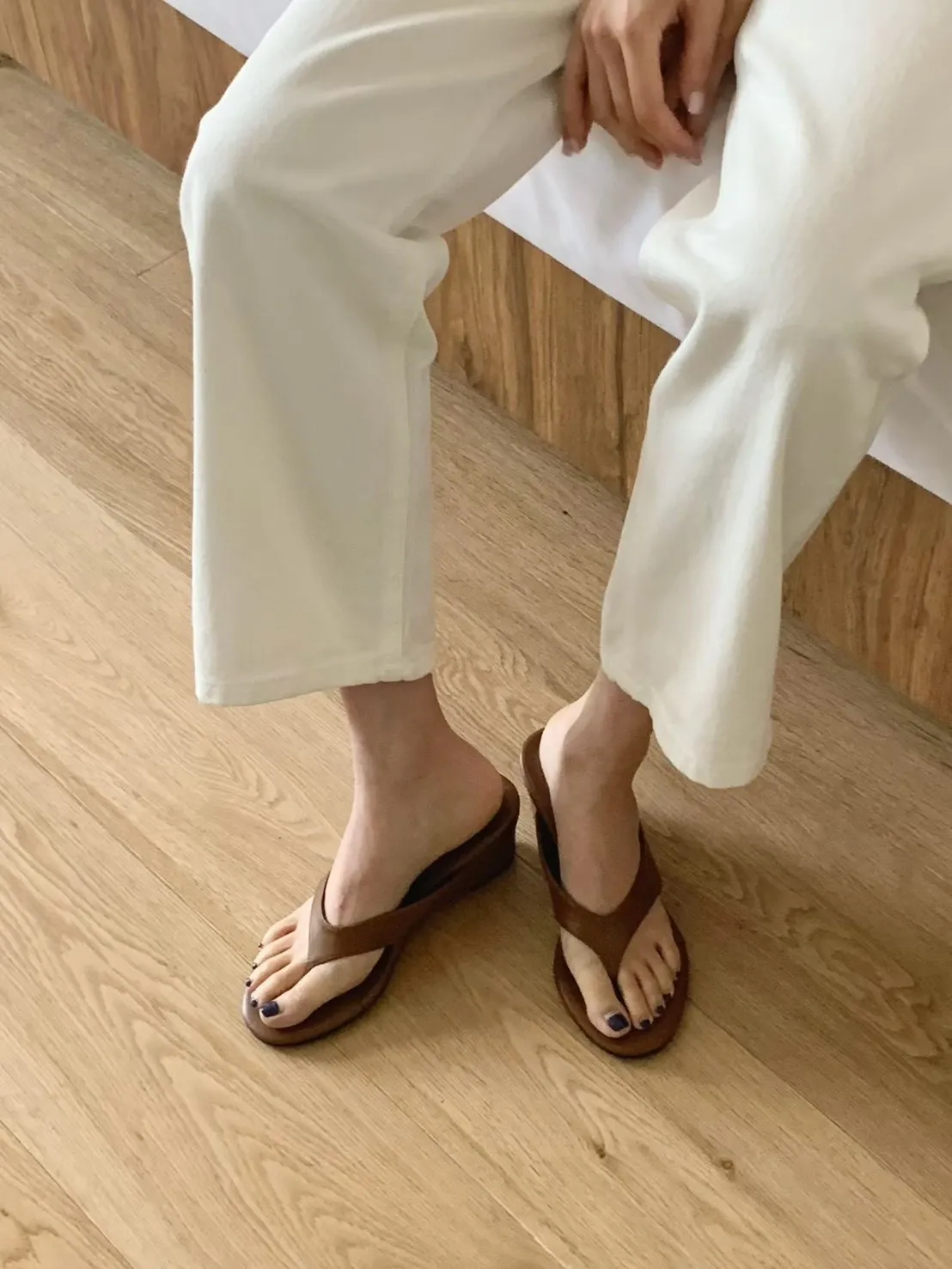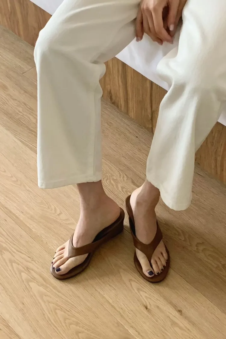 高級色日常厚底素面夾腳拖鞋