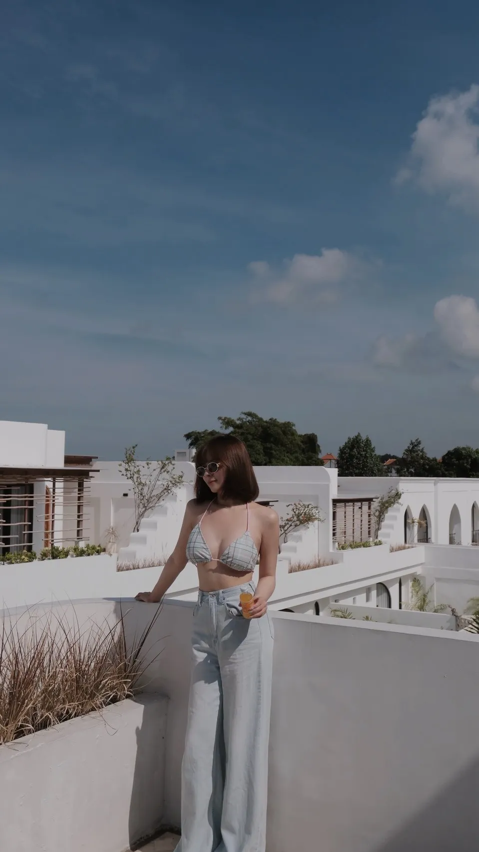 蘇打汽水格紋綁帶比基尼set