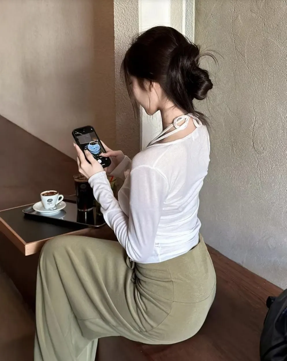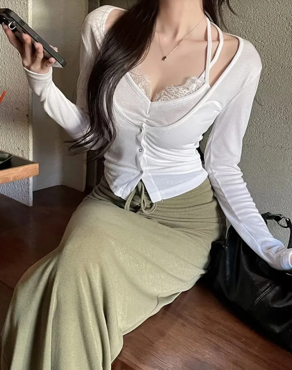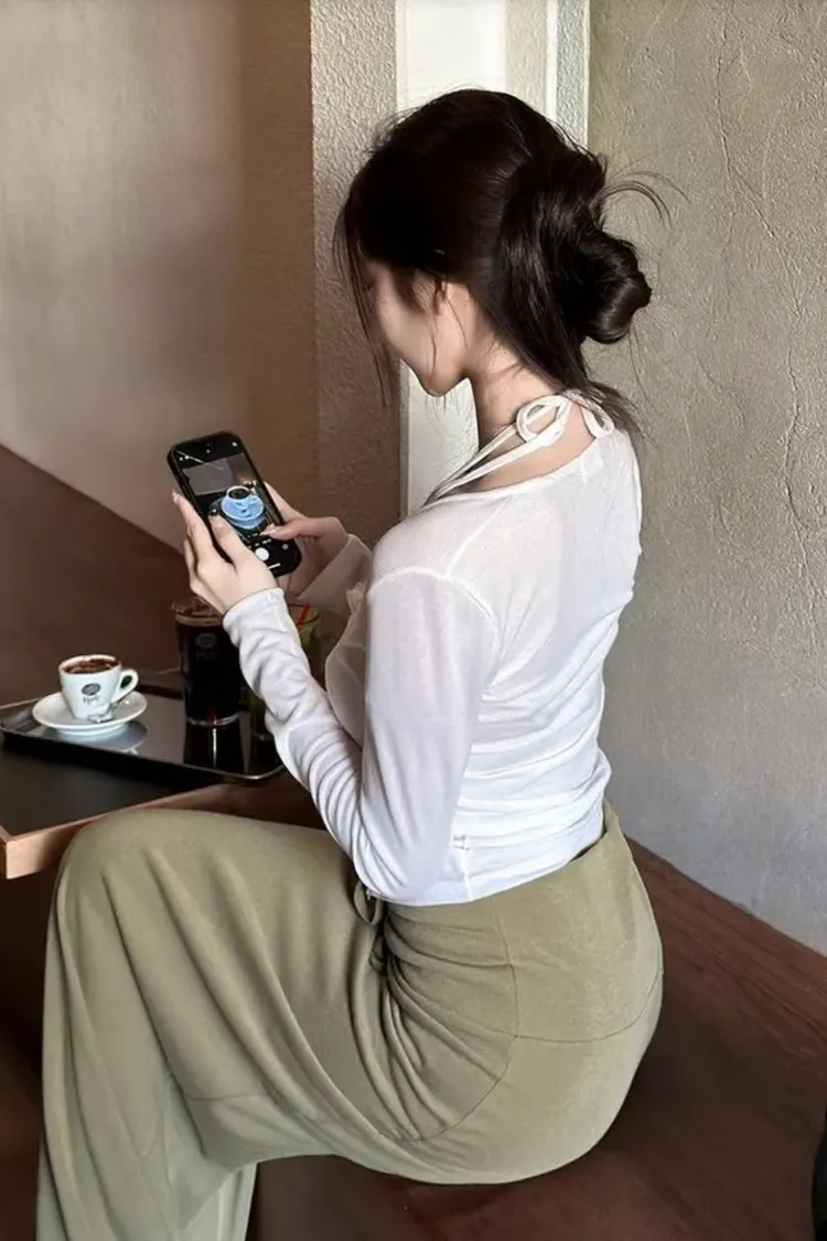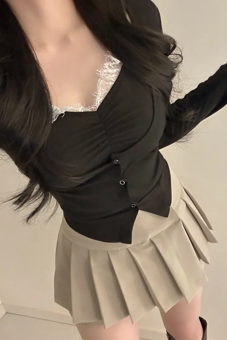 溫柔必買蕾絲雕花彈力棉質綁帶上衣