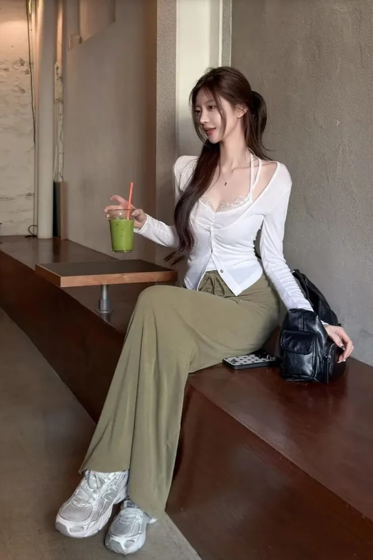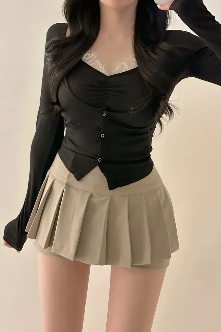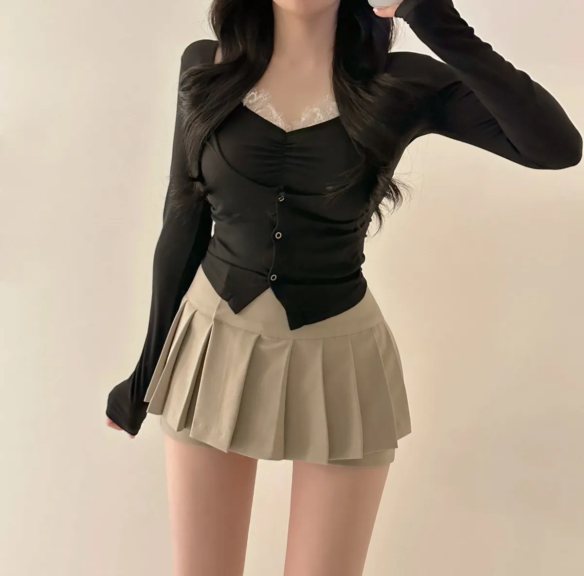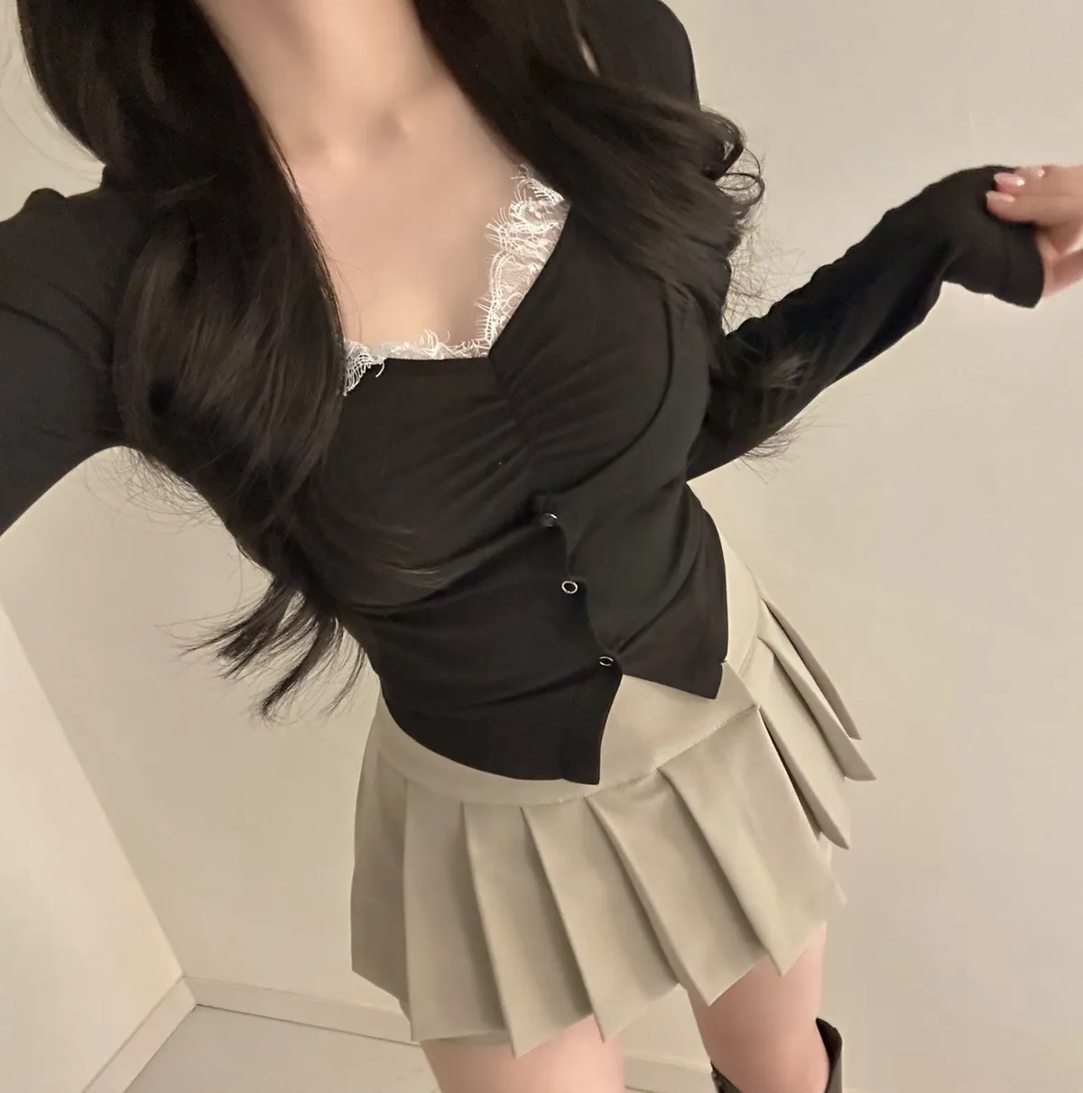 溫柔必買蕾絲雕花彈力棉質綁帶上衣