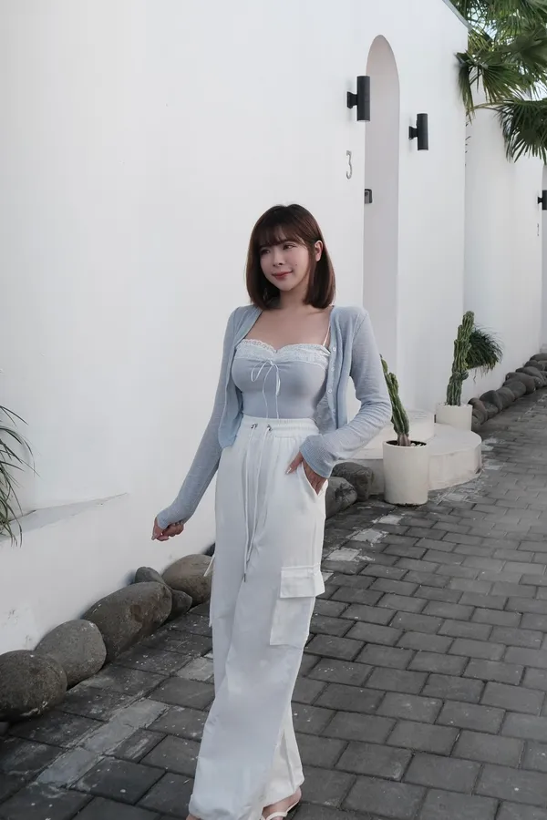 Queena私藏寶寶藍色薄款透膚上衣