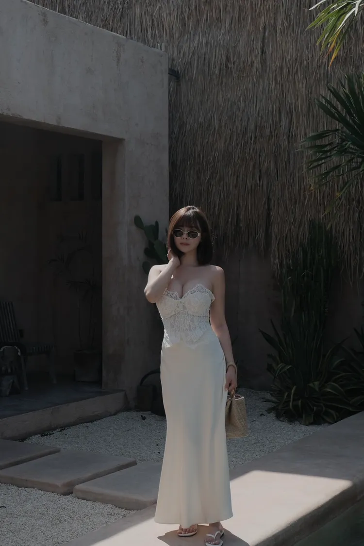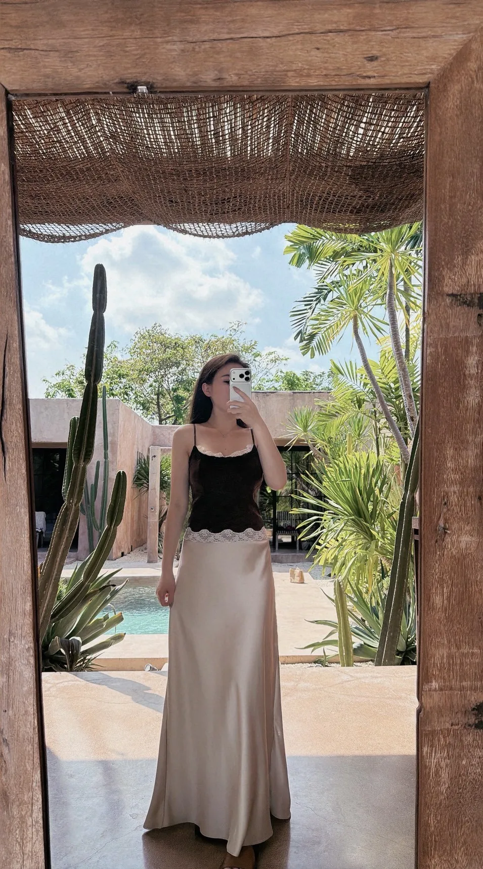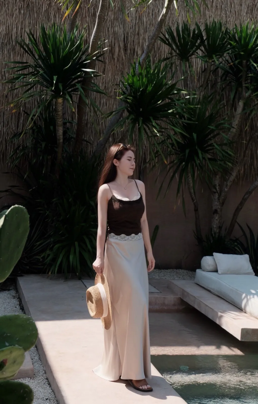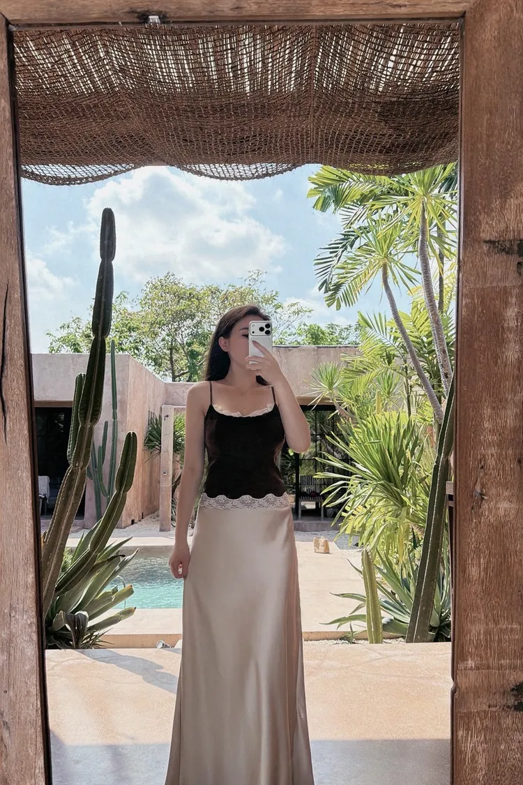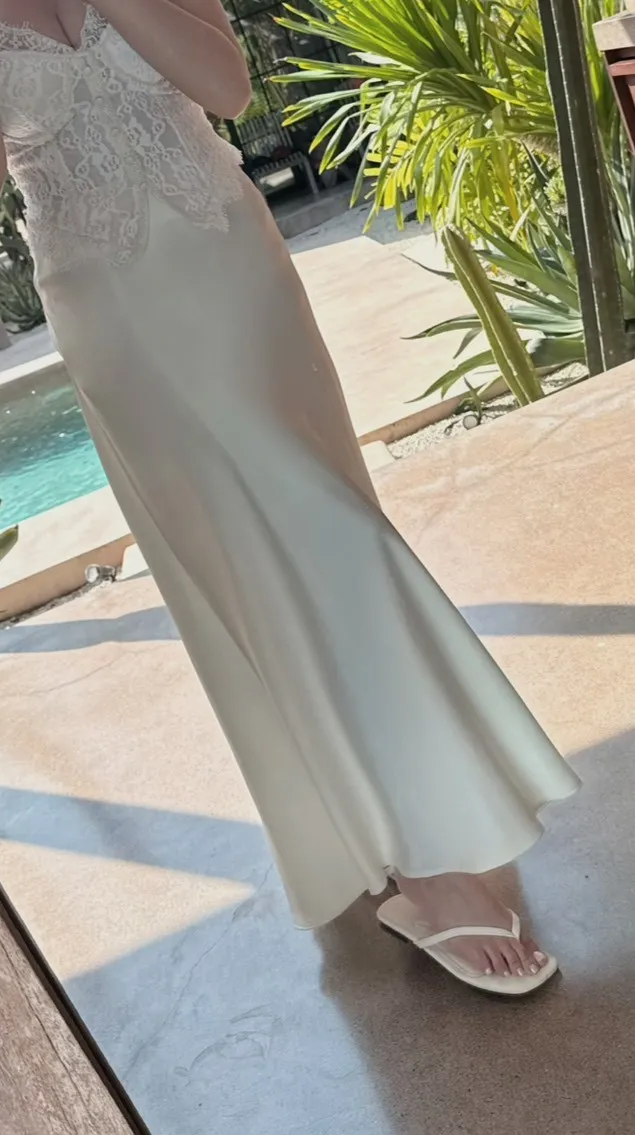 歐膩家溫柔高級雪紡緞面彈力半身裙