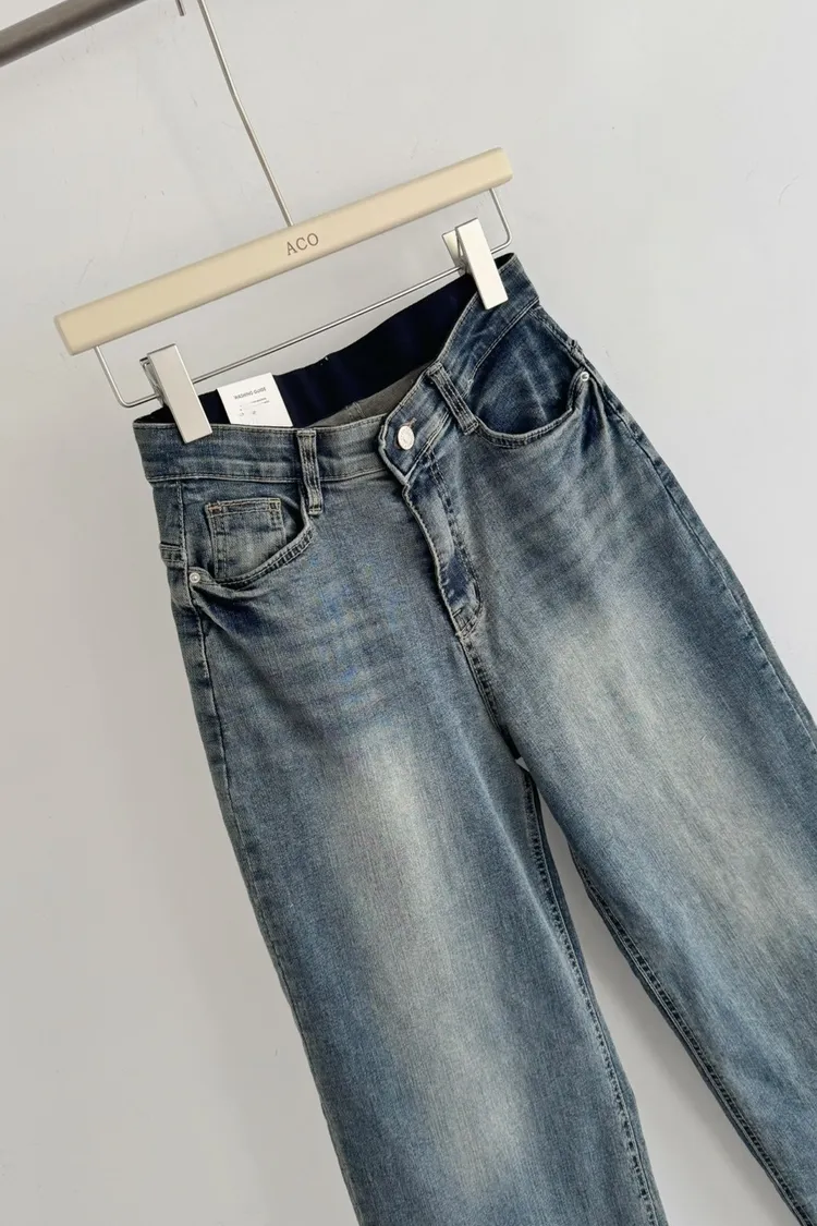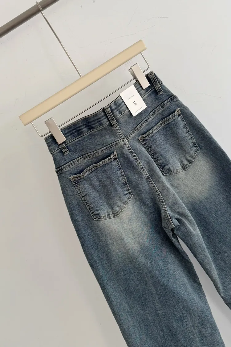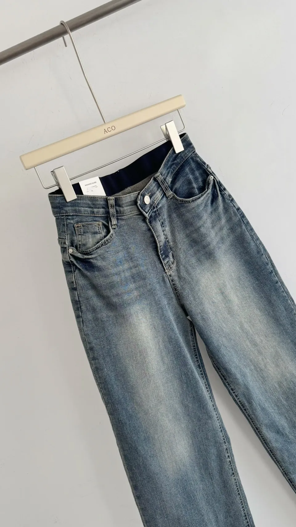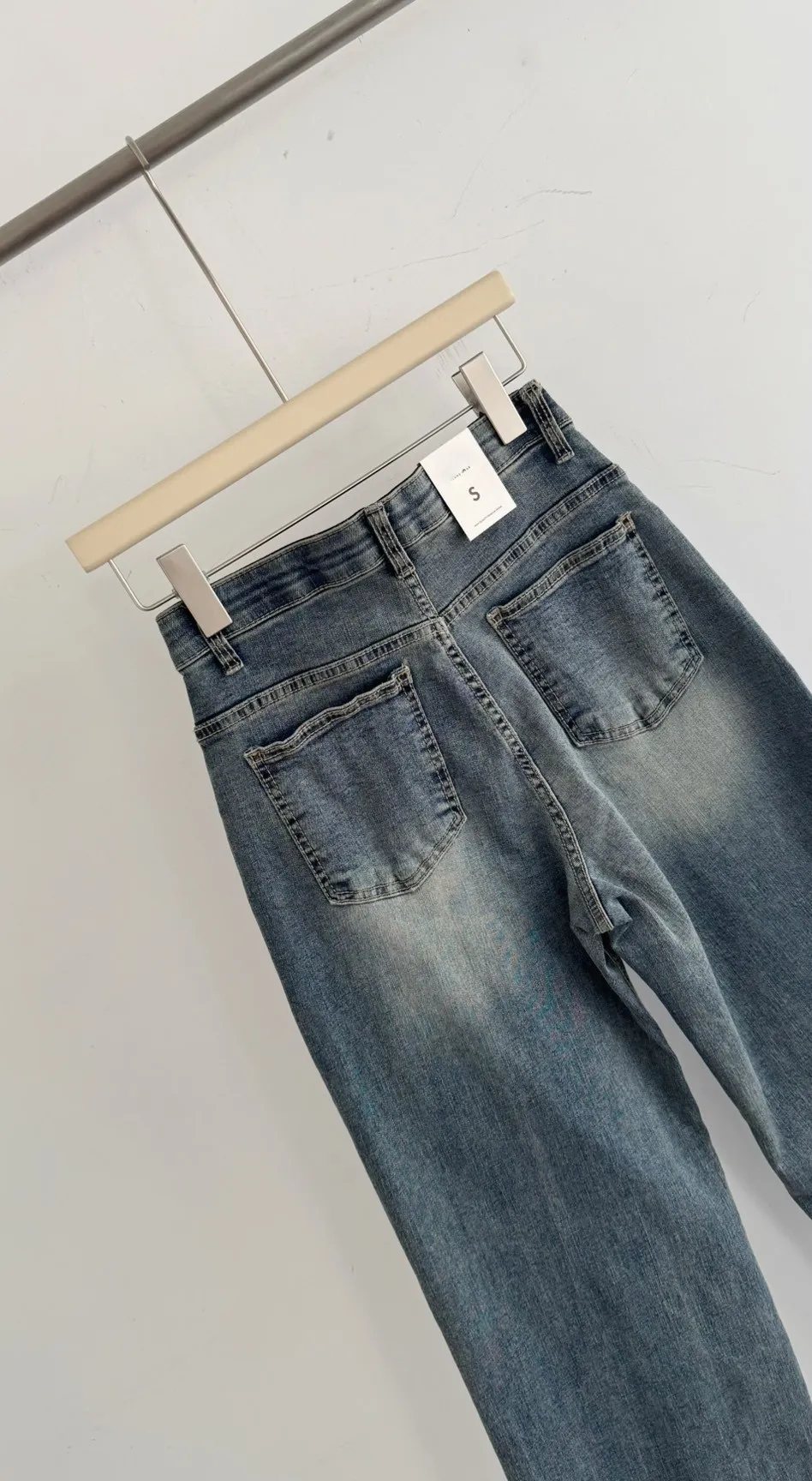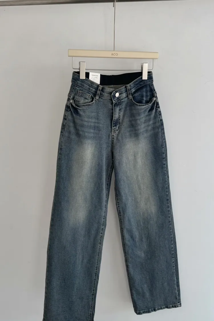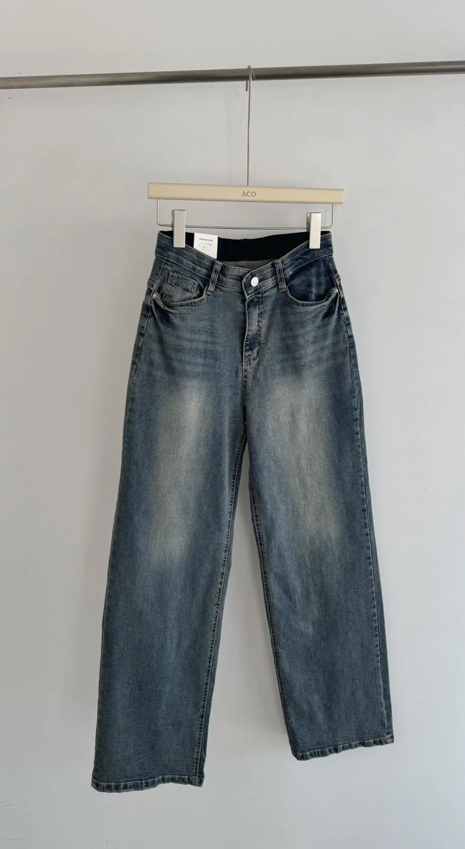 私藏歐巴家深藍彈力帶寬褲牛仔褲