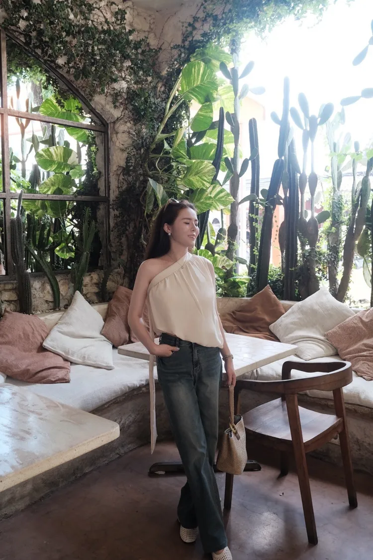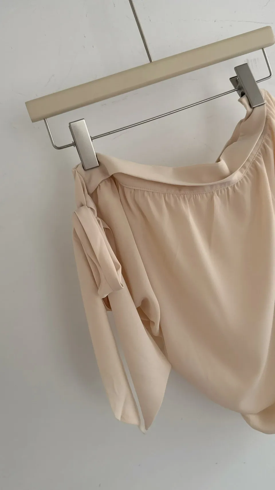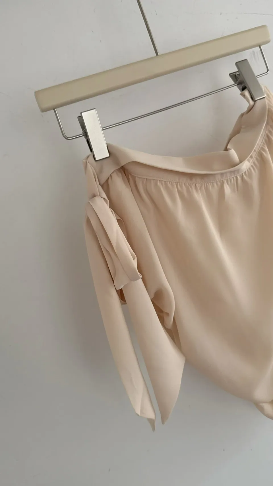 女神風綁帶溫柔單肩雪紡上衣