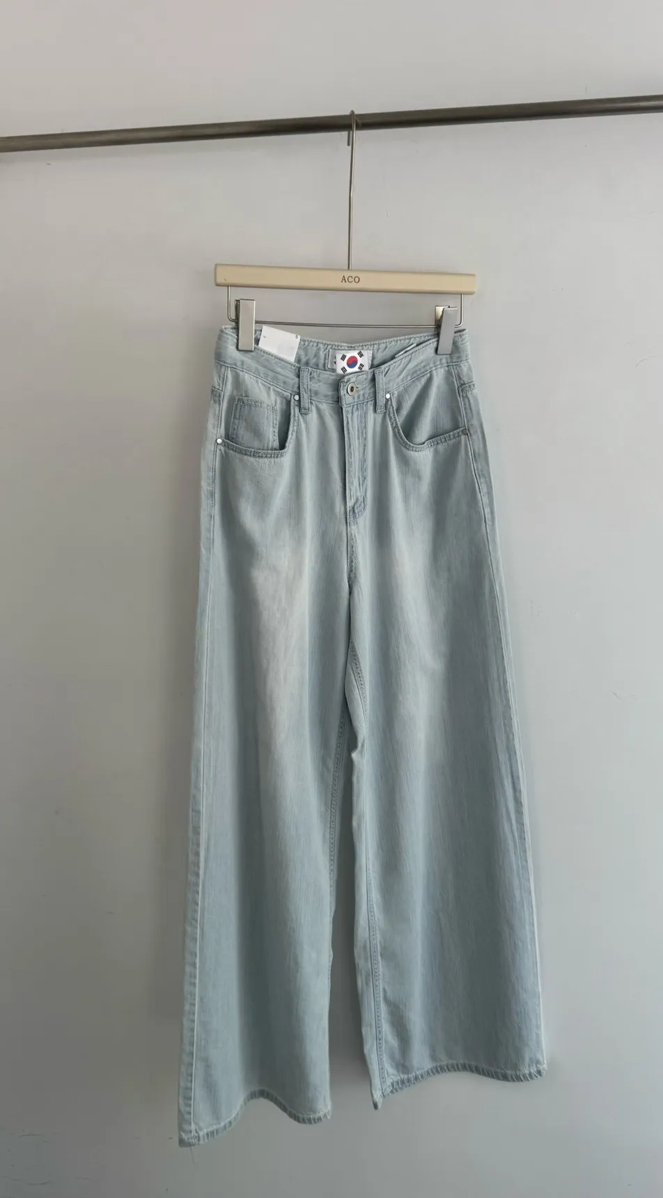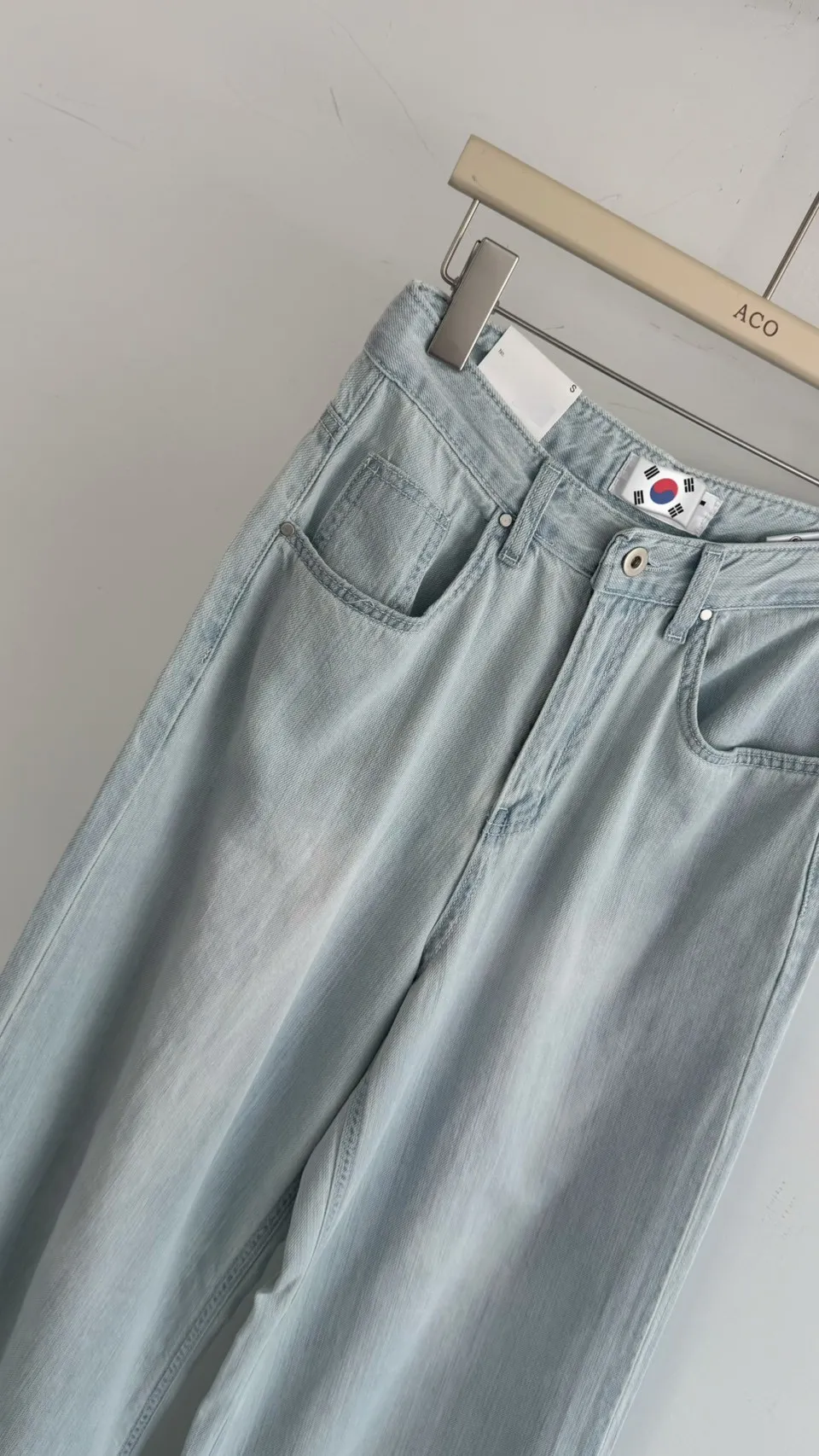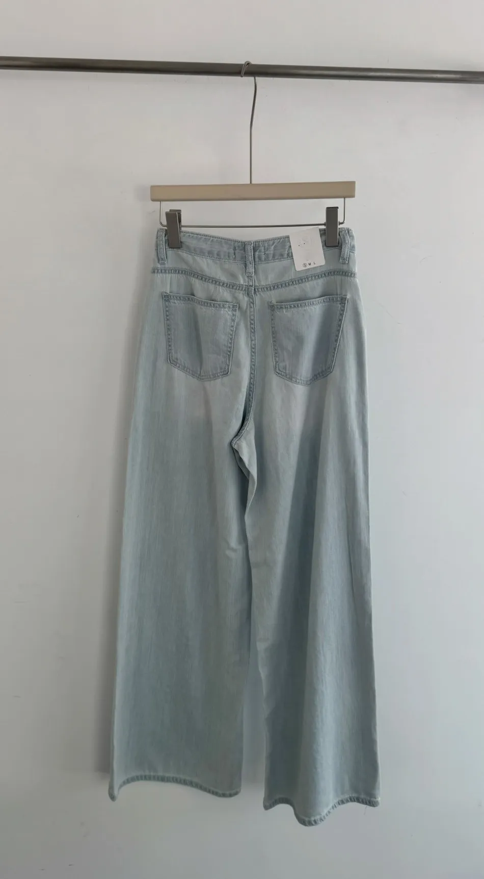 夏日私藏溫柔淺藍百搭高腰牛仔寬褲