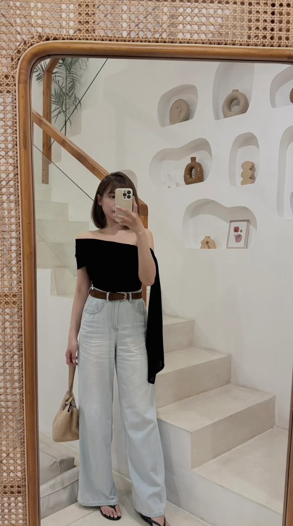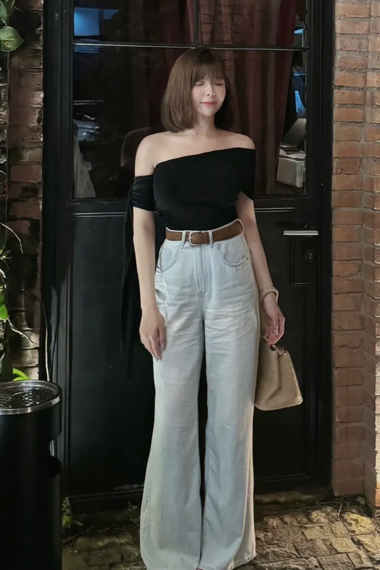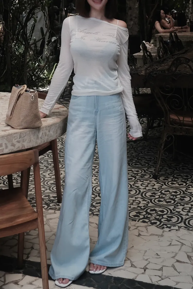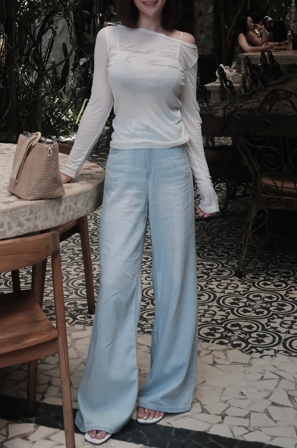 夏日私藏溫柔淺藍百搭高腰牛仔寬褲