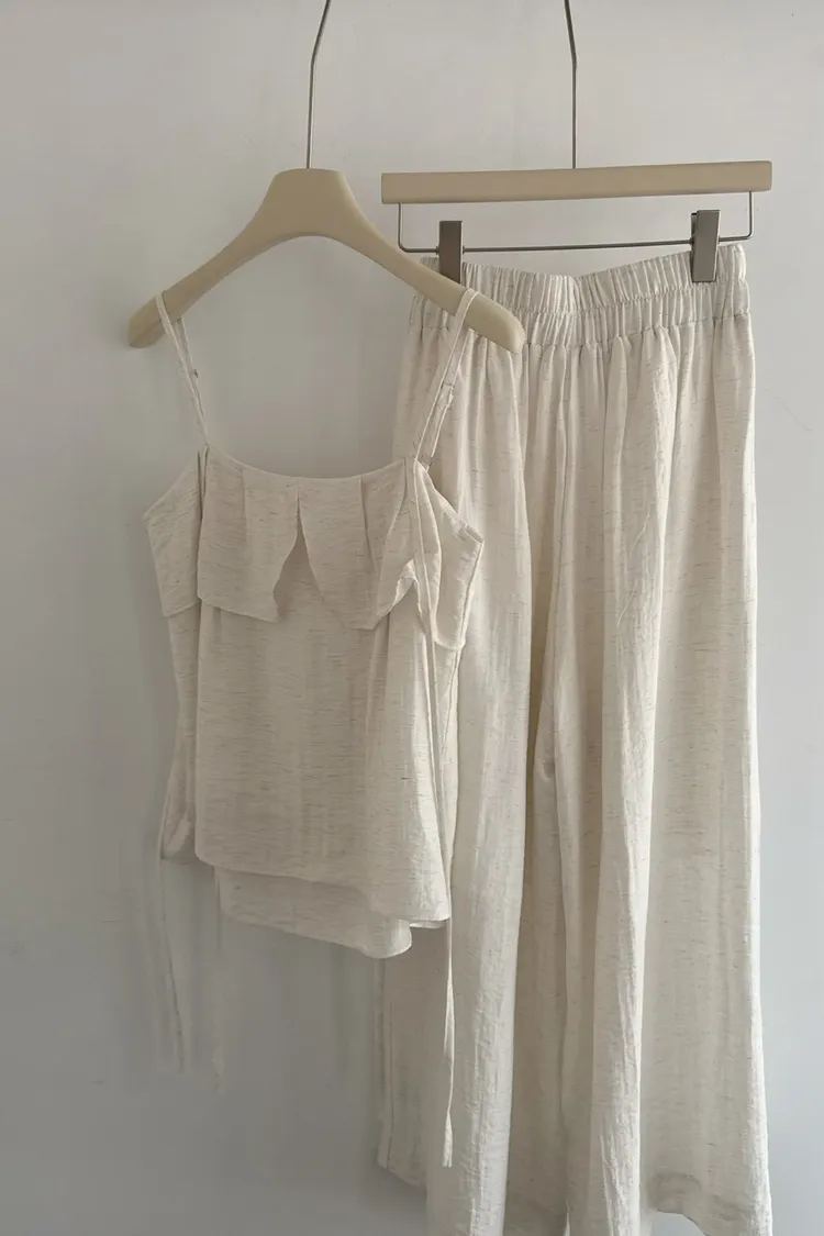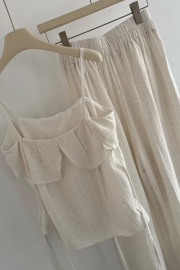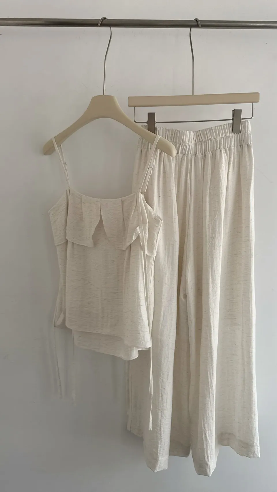 溫柔私藏棉麻寬鬆兩件式套裝:上衣+寬褲set