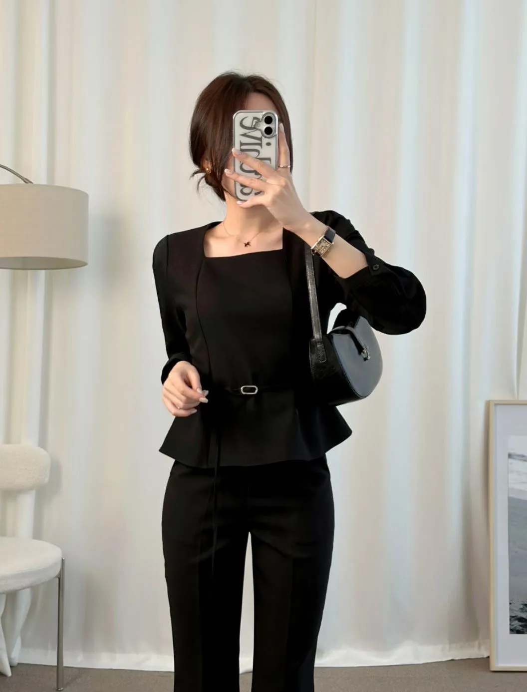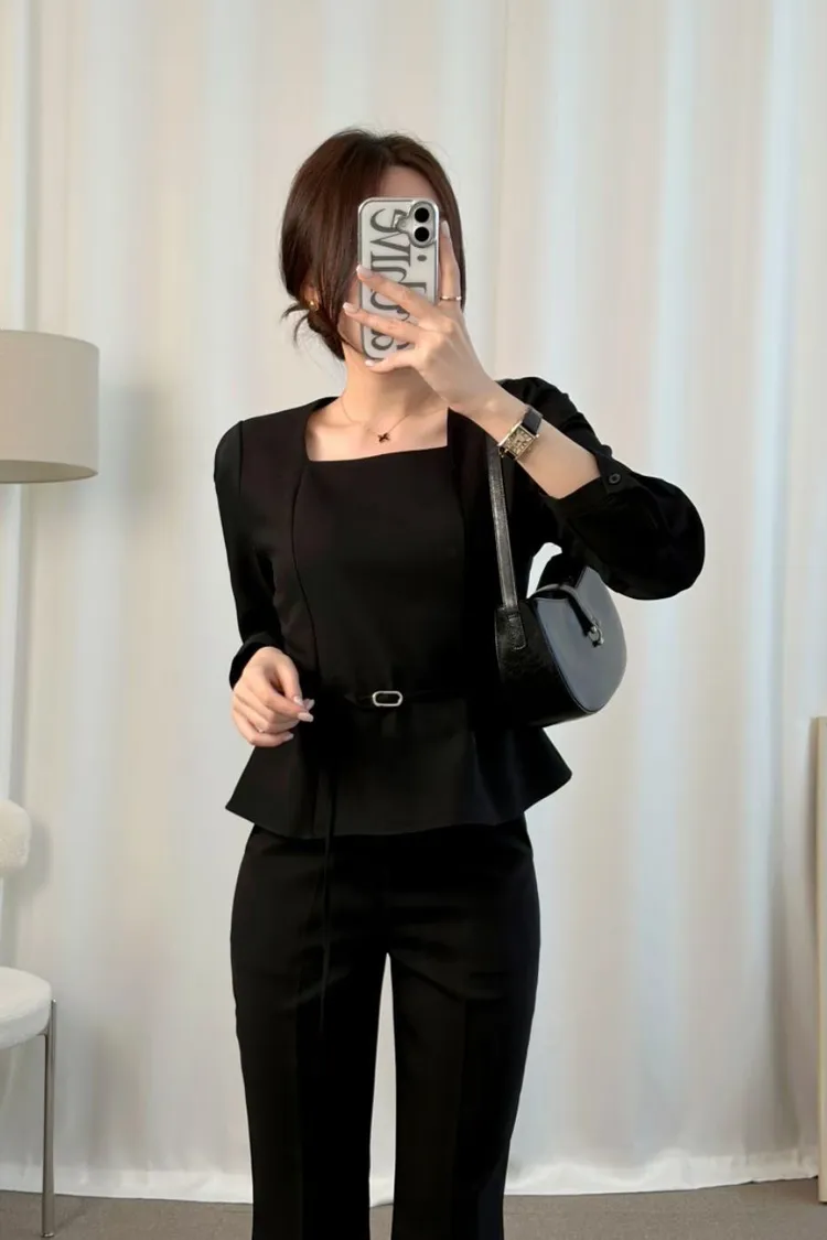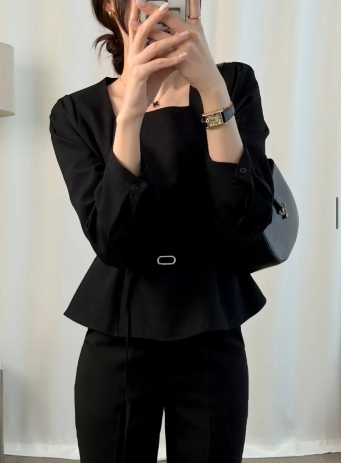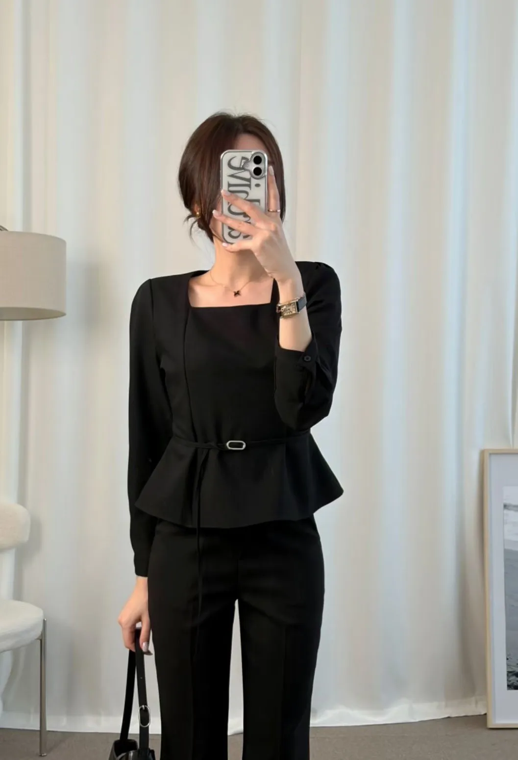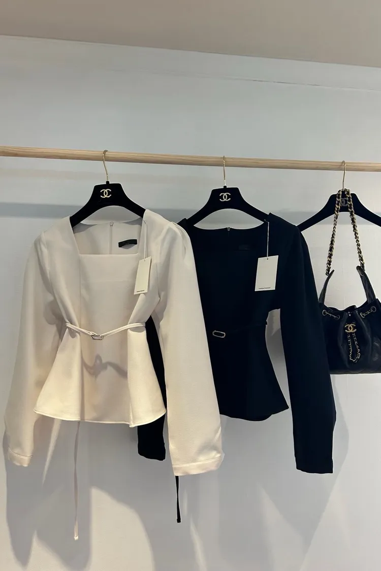 溫柔家獨家訂製小方領雪紡上衣(附腰帶)