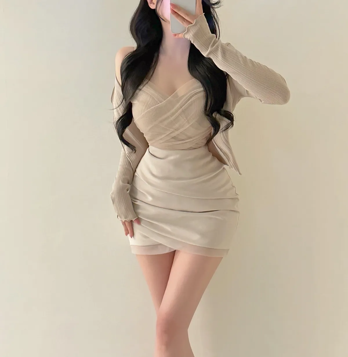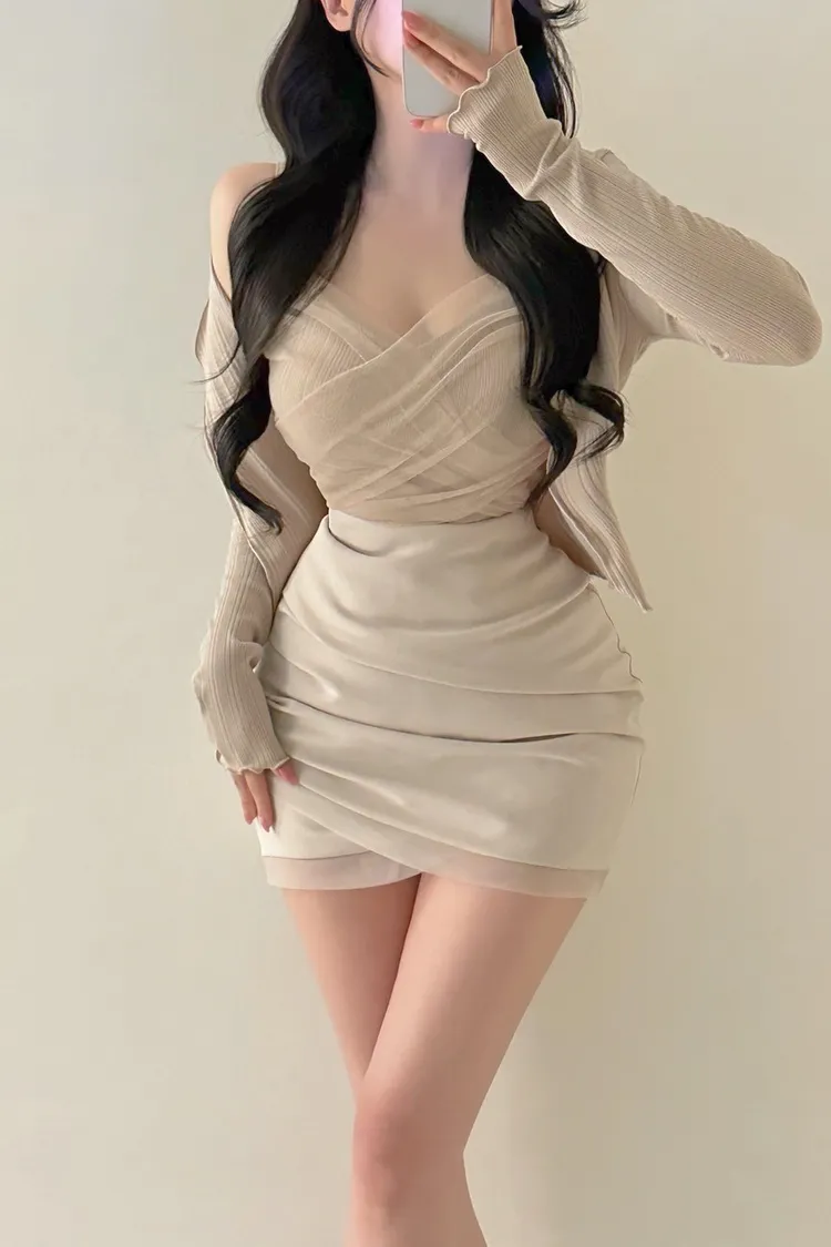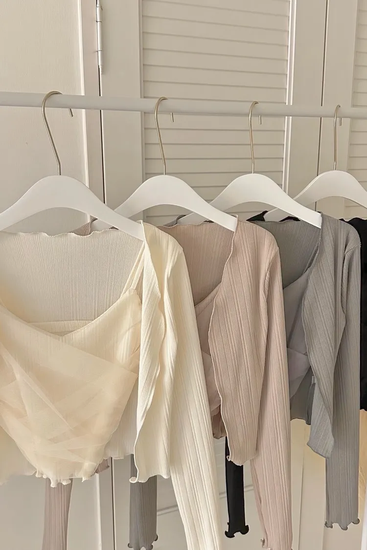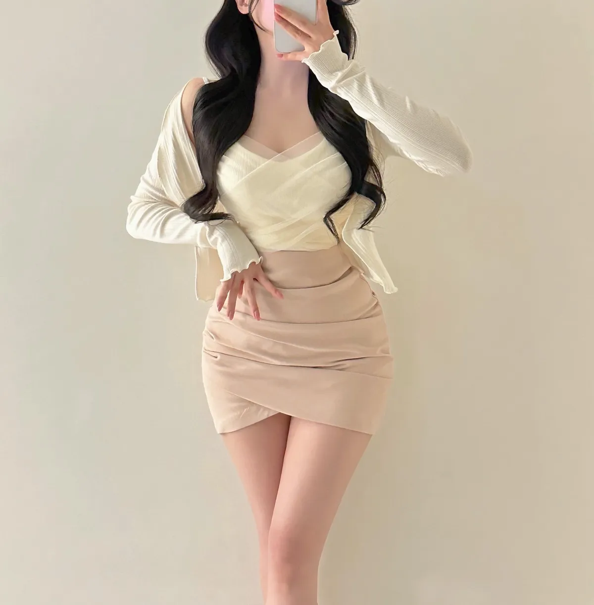 (熱賣爆款)羅紋質感拼接網紗細肩帶背心+罩衫兩件式set