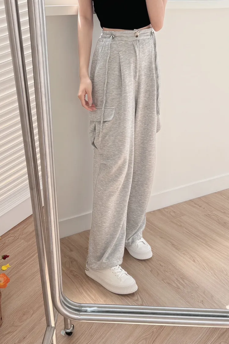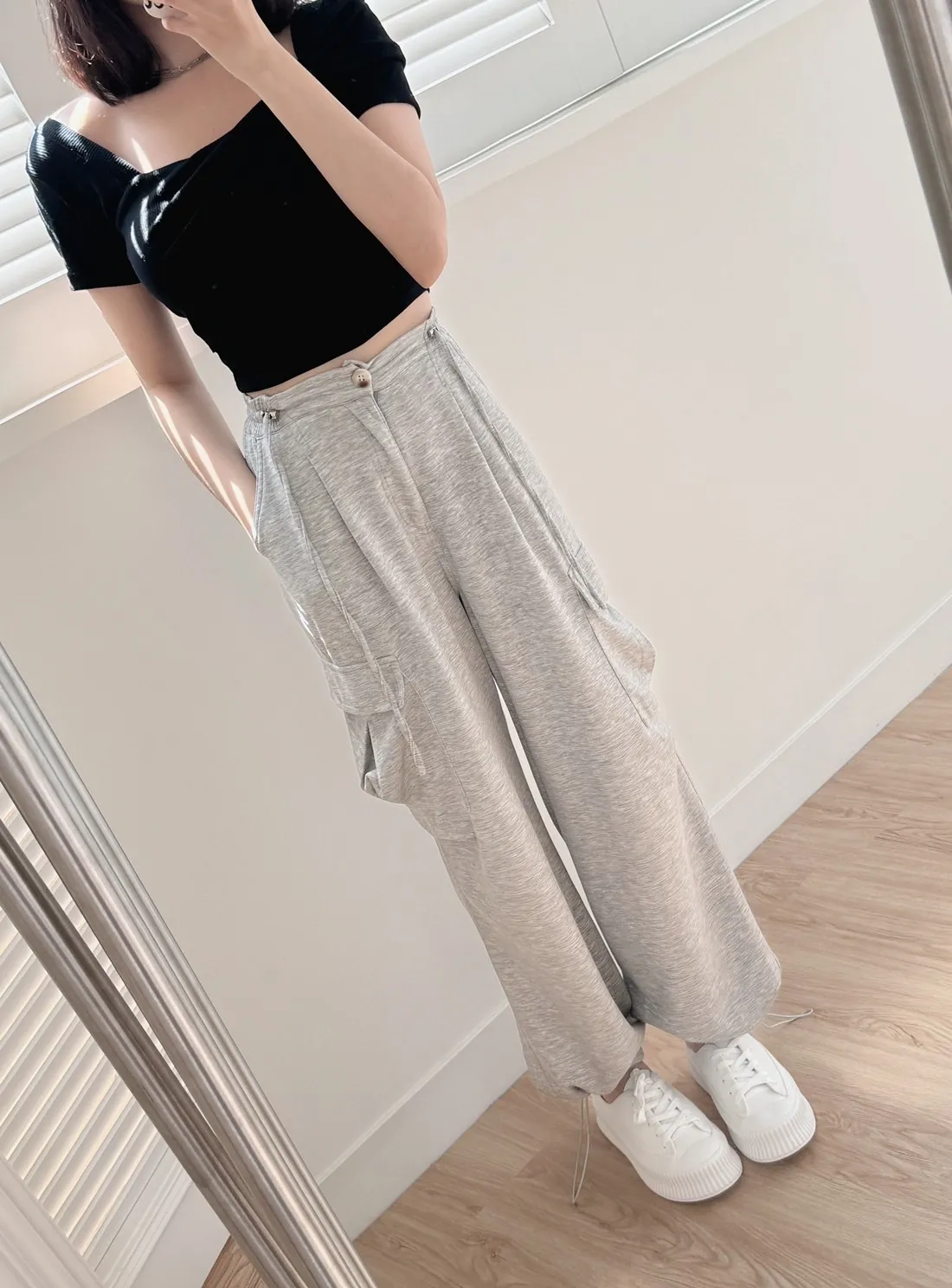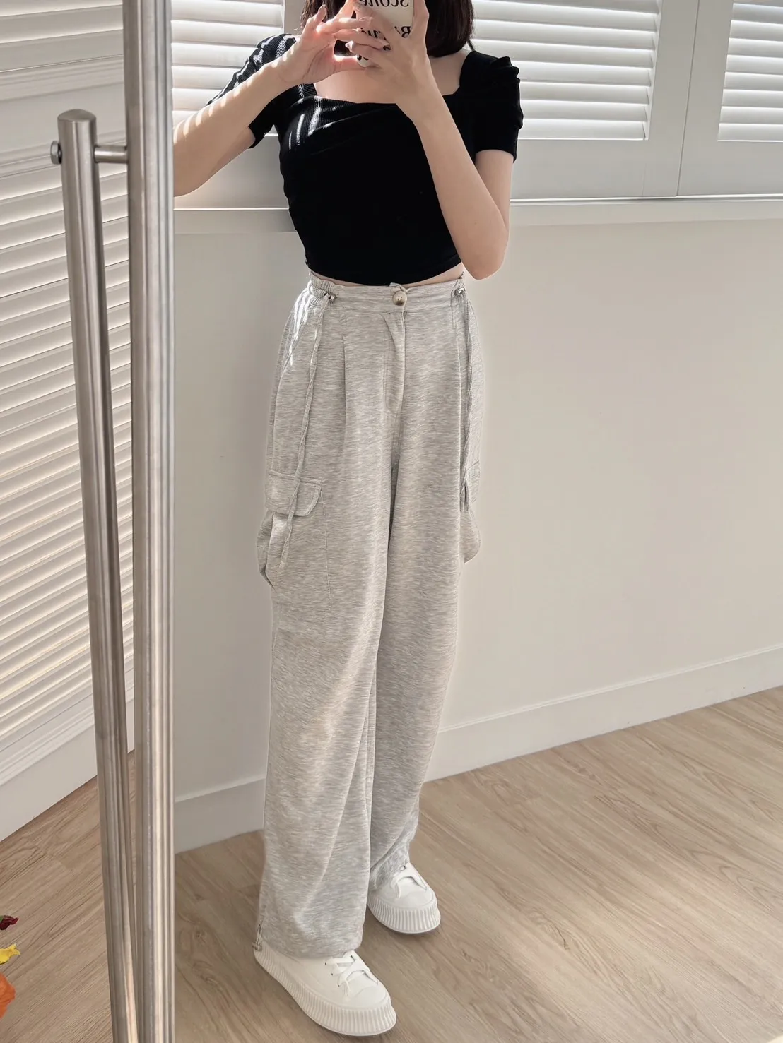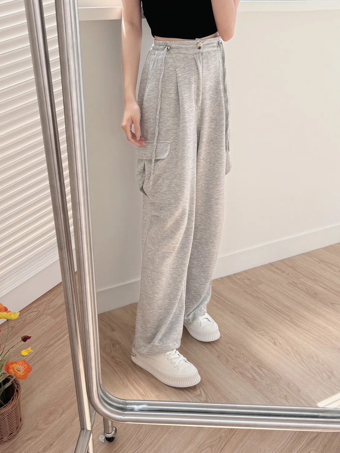 設計款涼感棉質彈力高腰兩穿棉質工裝褲