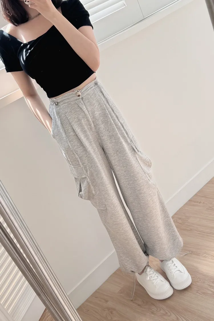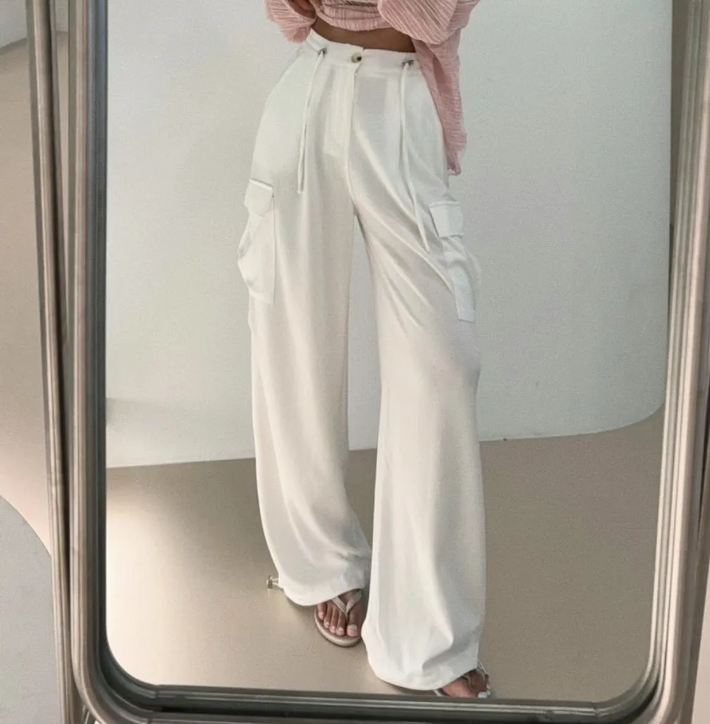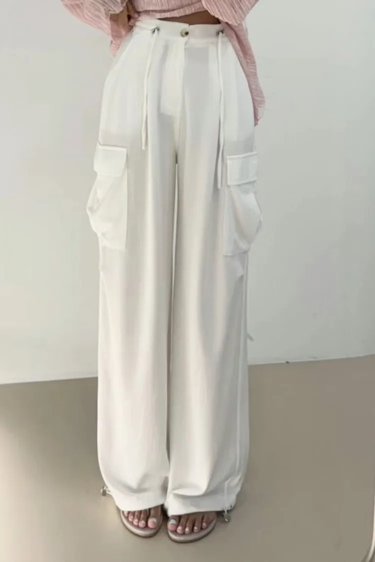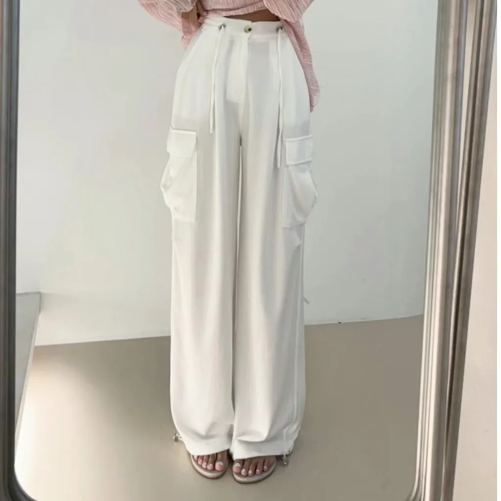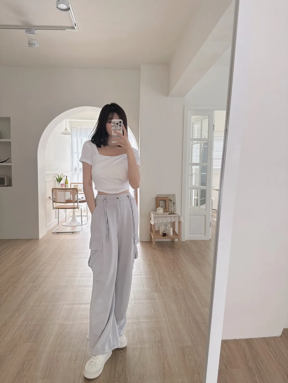 設計款涼感棉質彈力高腰兩穿棉質工裝褲