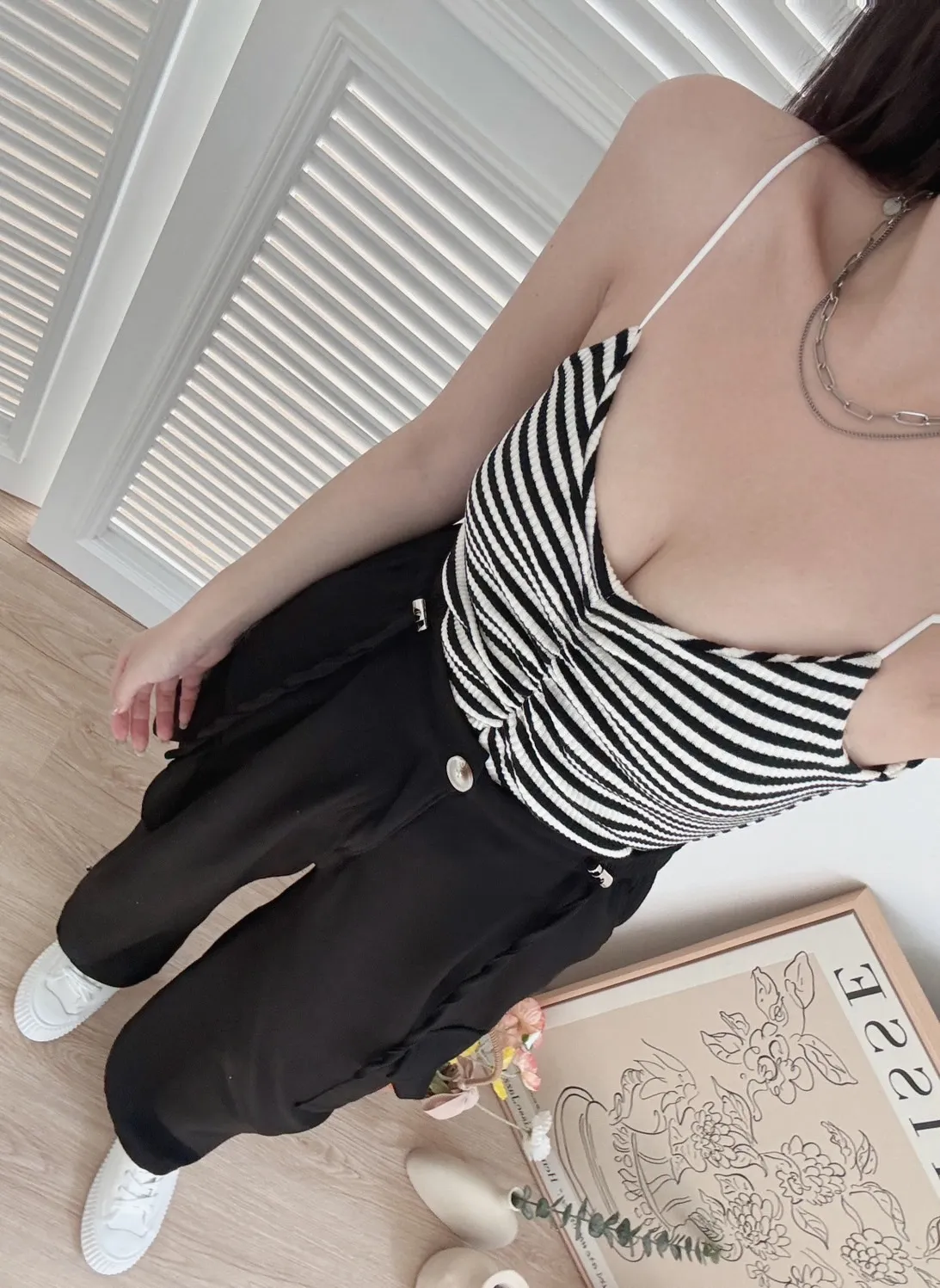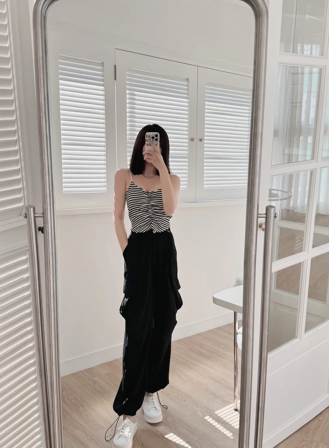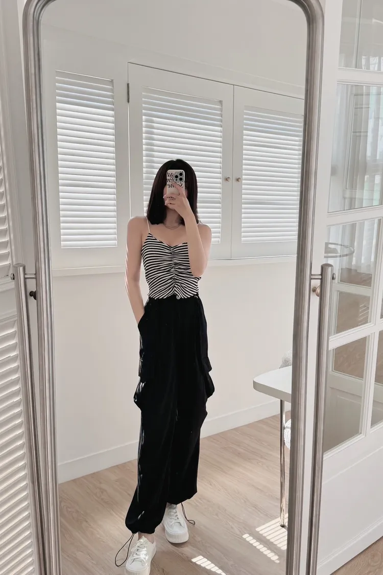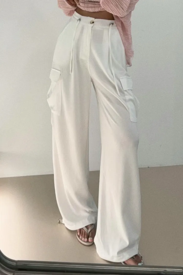 設計款涼感棉質彈力高腰兩穿棉質工裝褲
