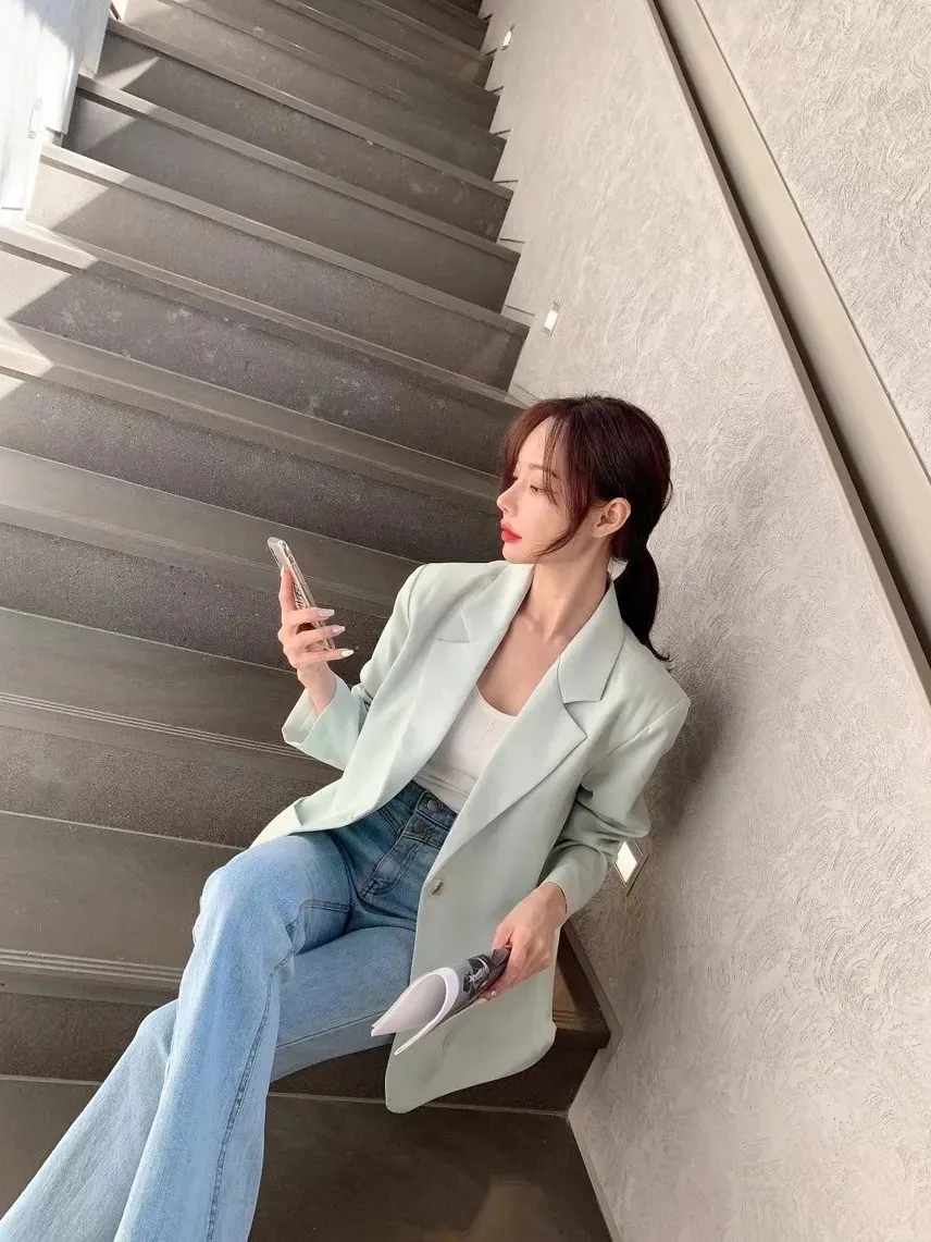 (熱賣不斷)歐膩家春夏訂製色寬鬆西裝外套