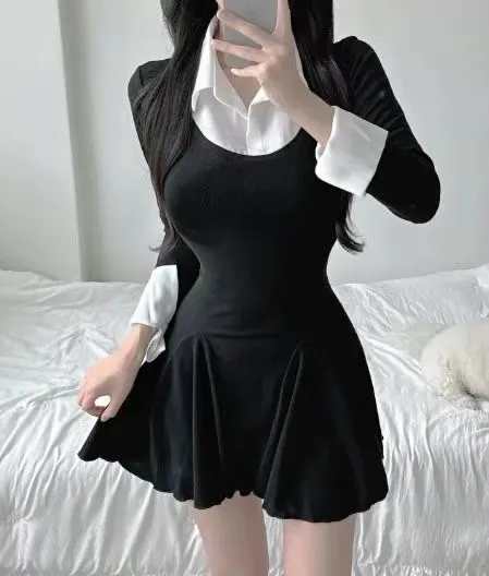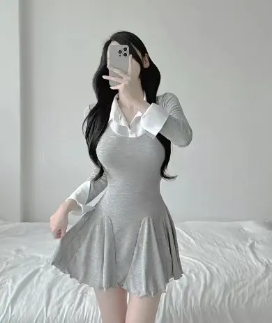 歐膩家訂製拼接假兩件襯衫棉質短洋