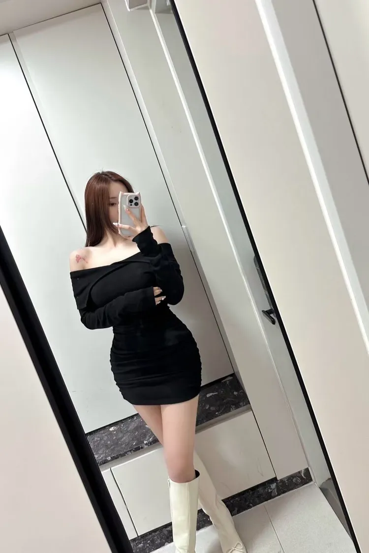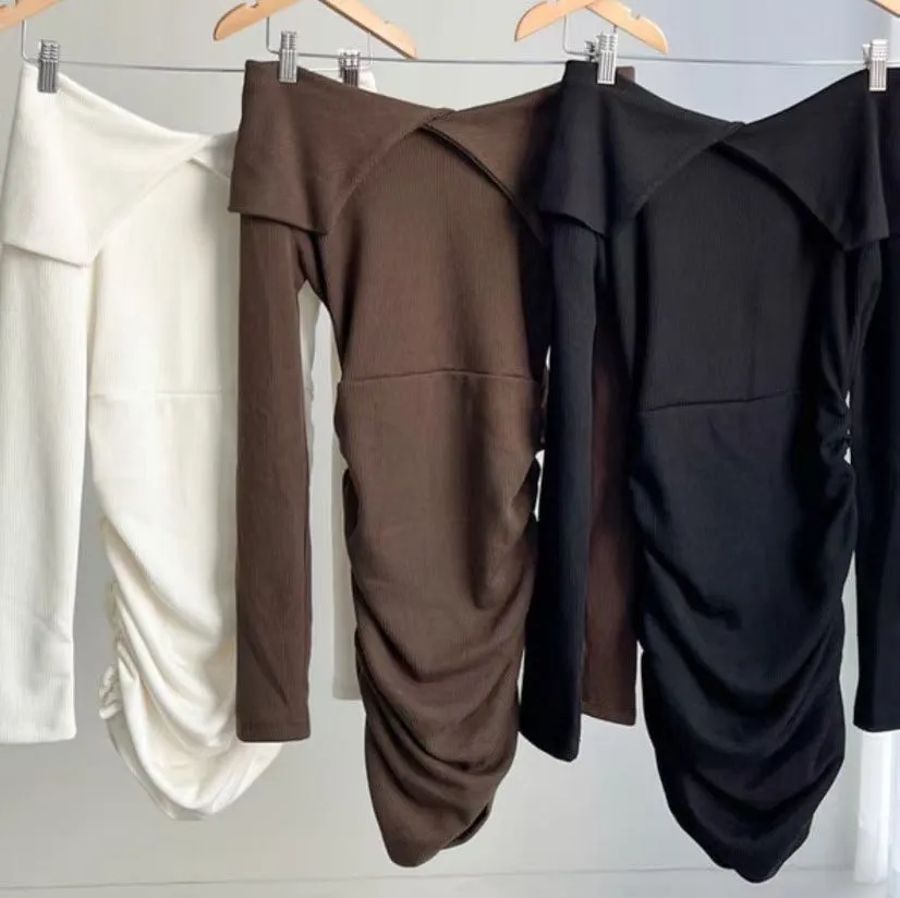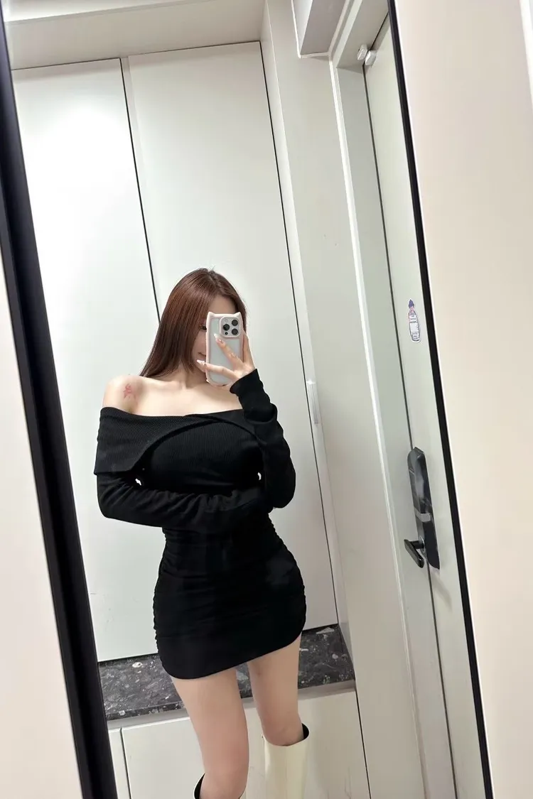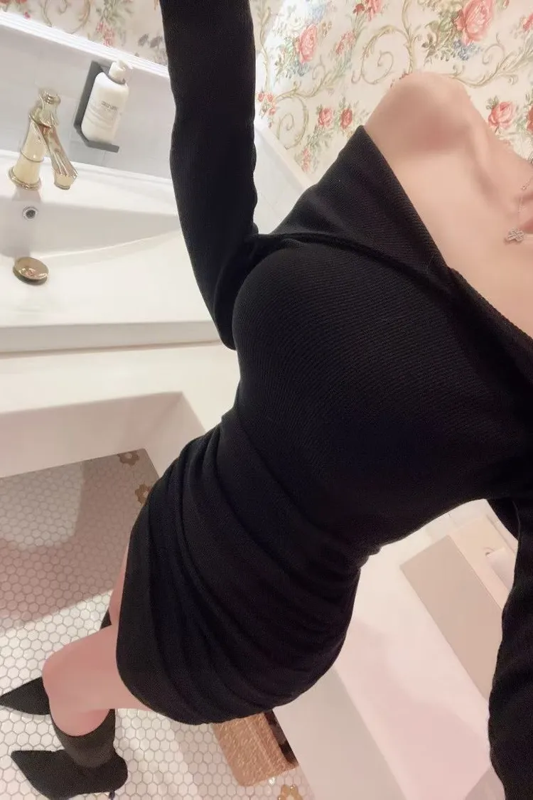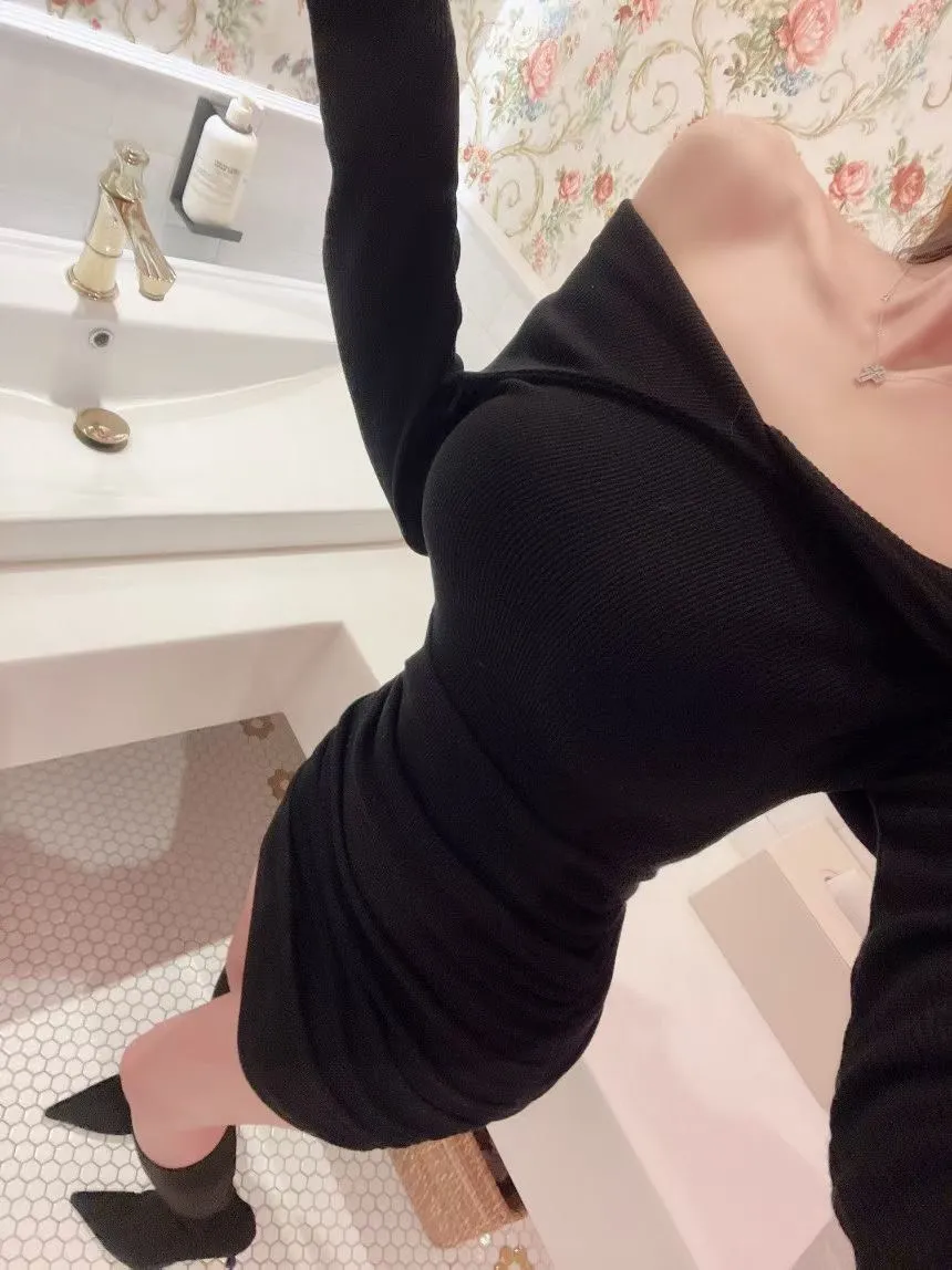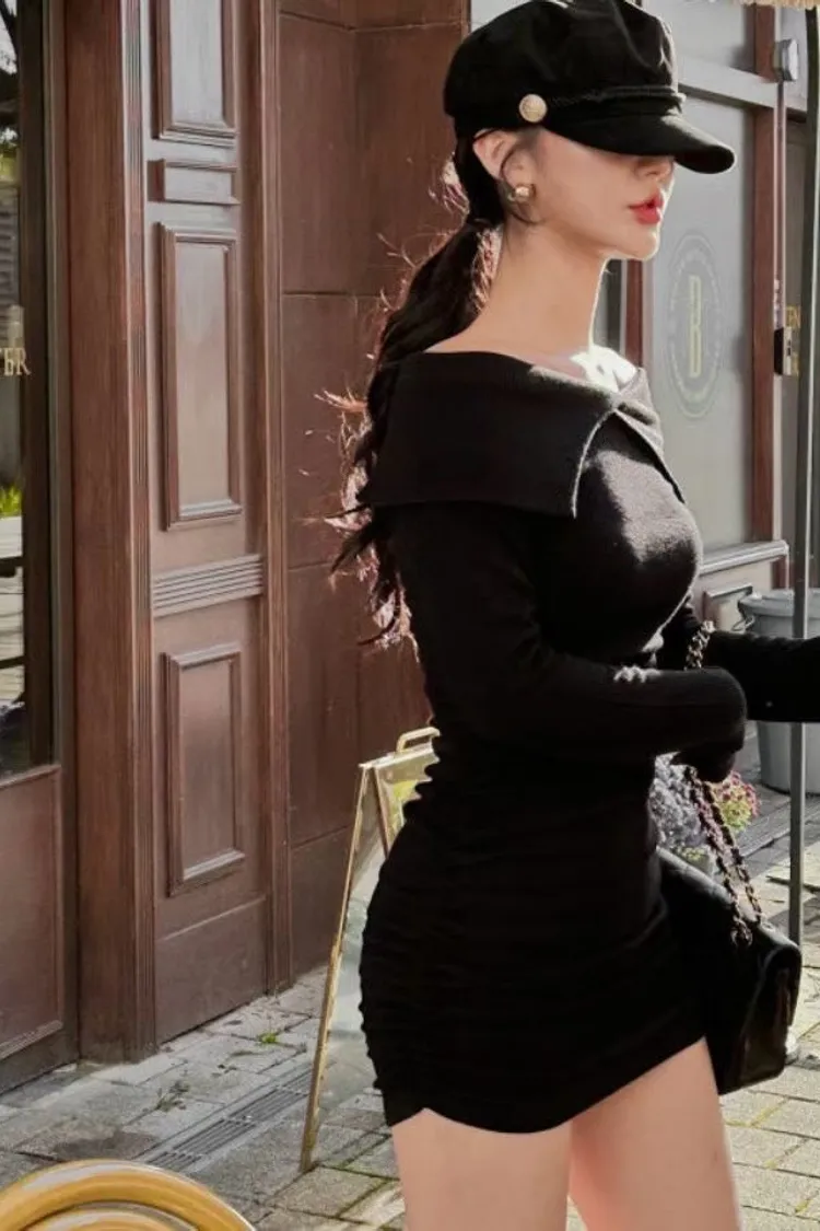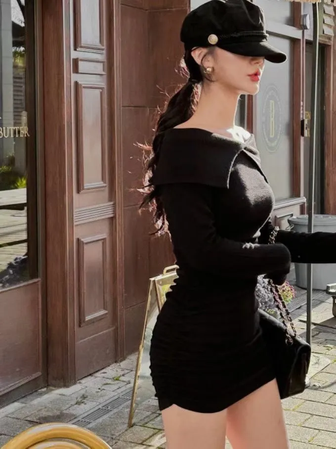 高級感翻領羅紋顯瘦彈力包臀洋