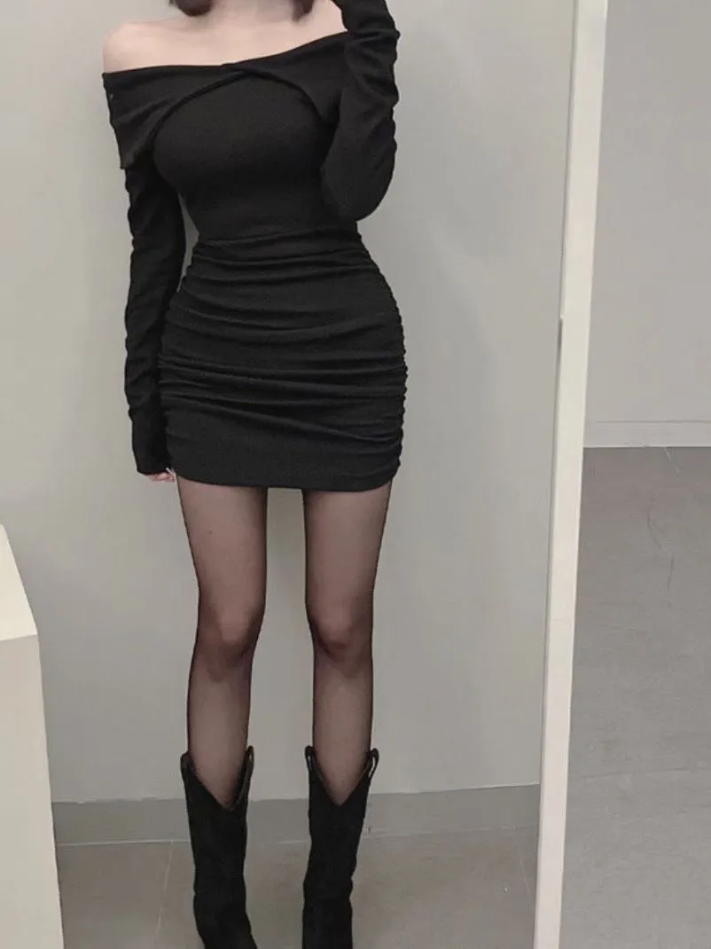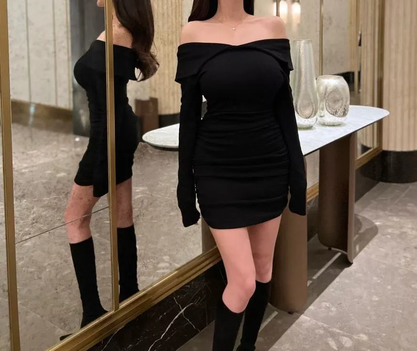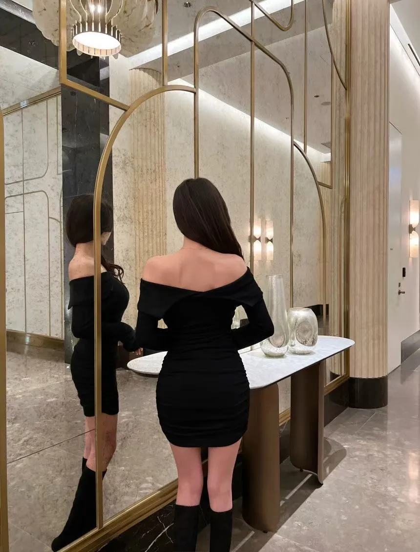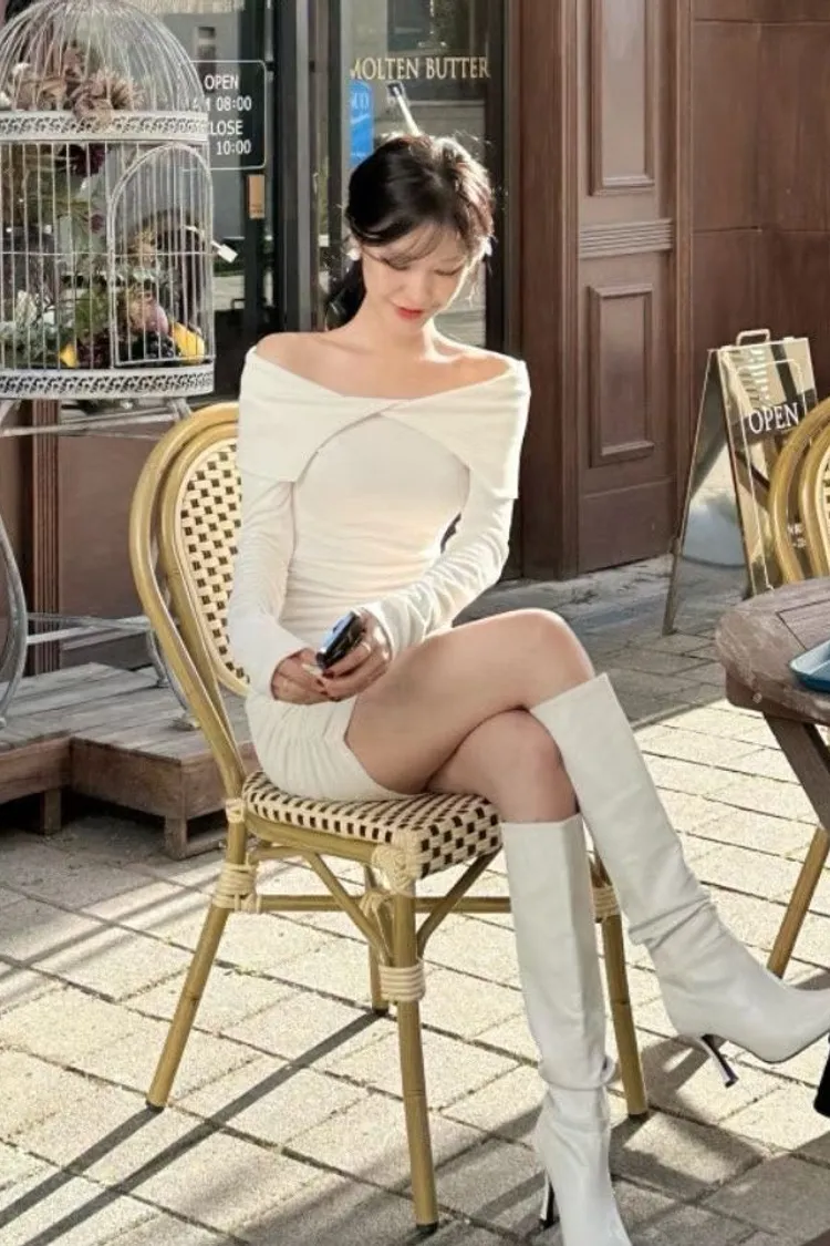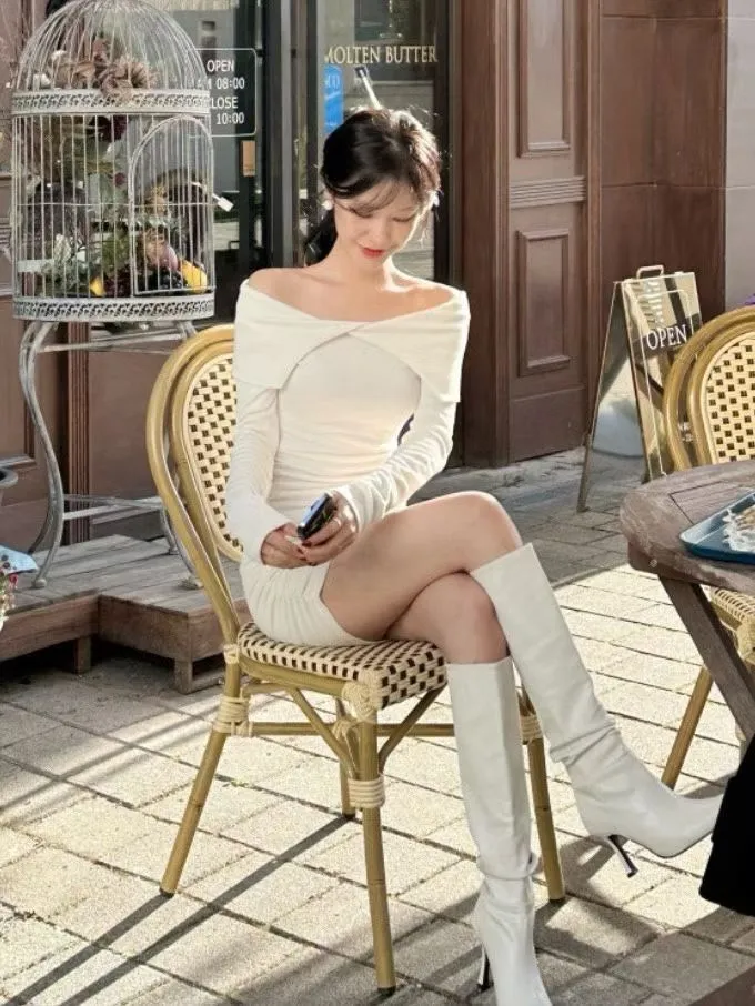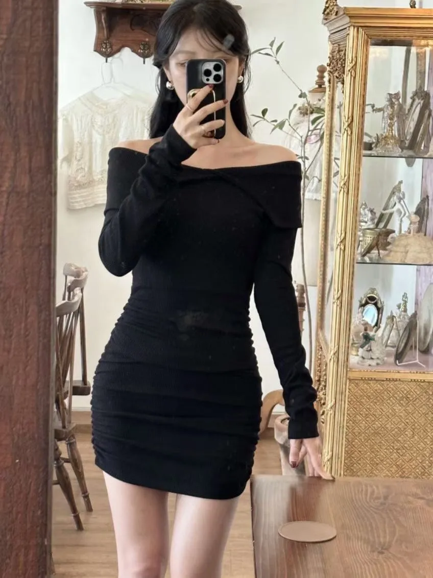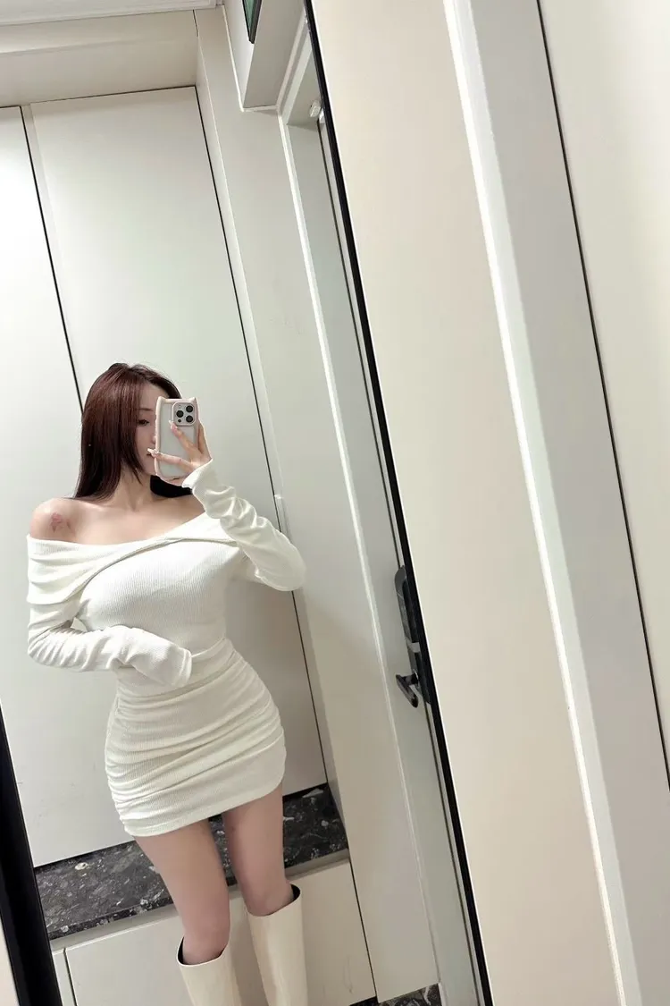 高級感翻領羅紋顯瘦彈力包臀洋