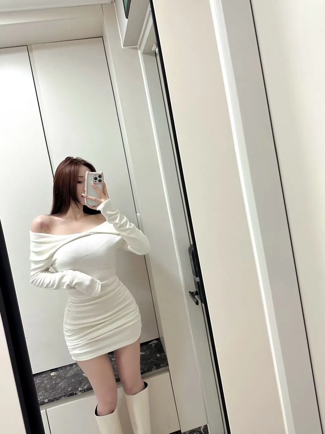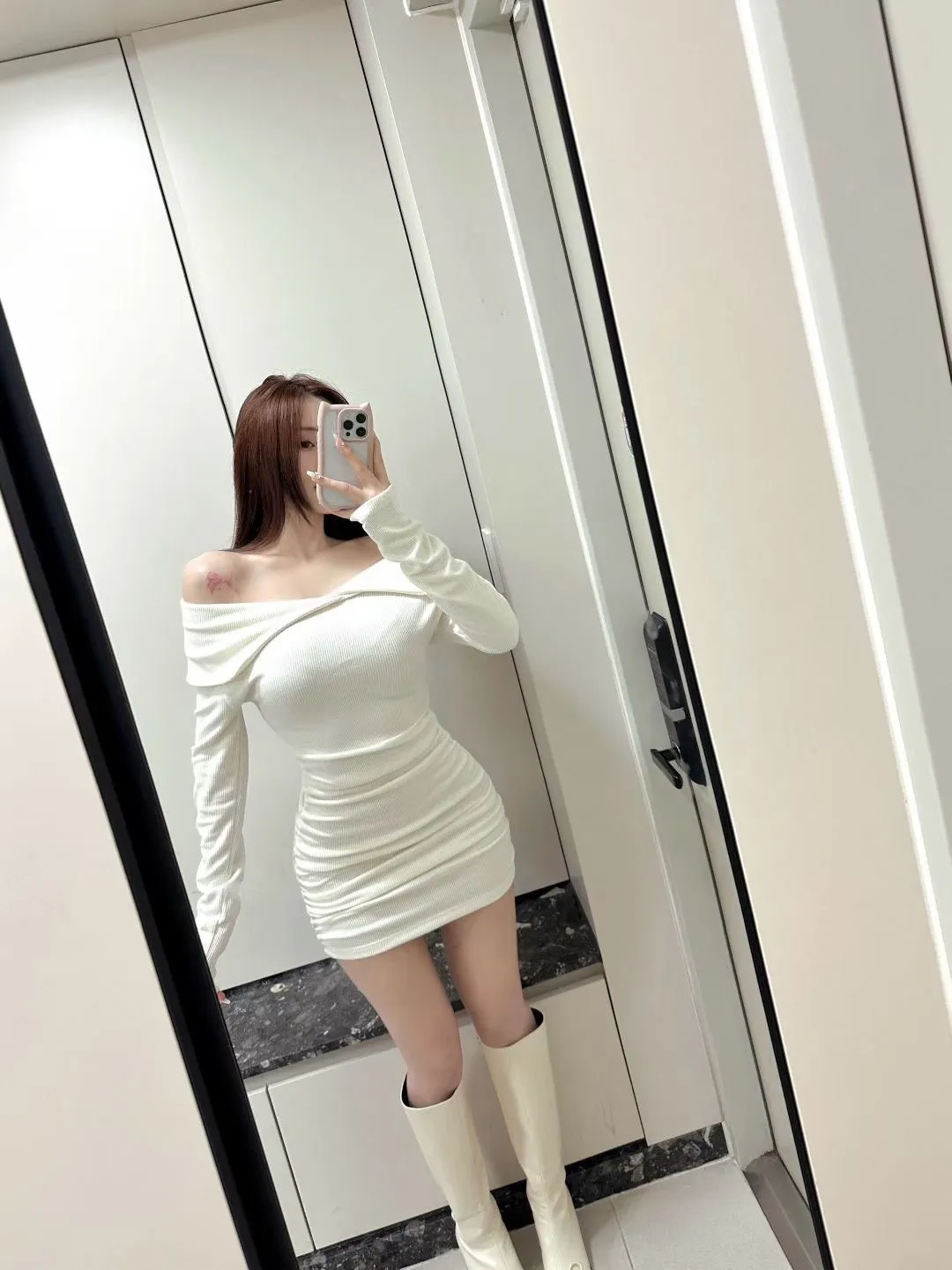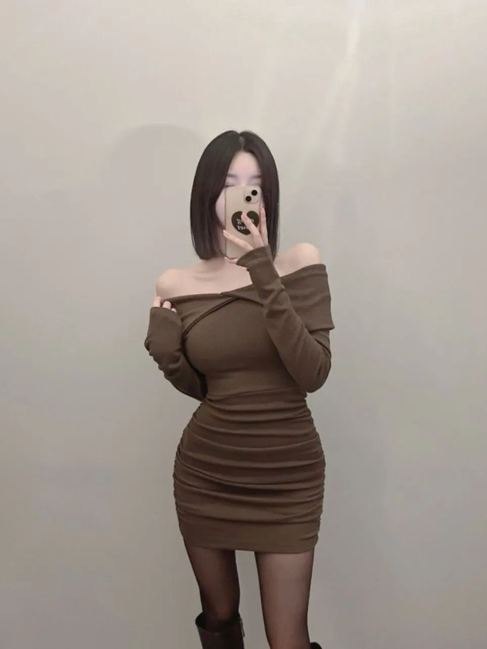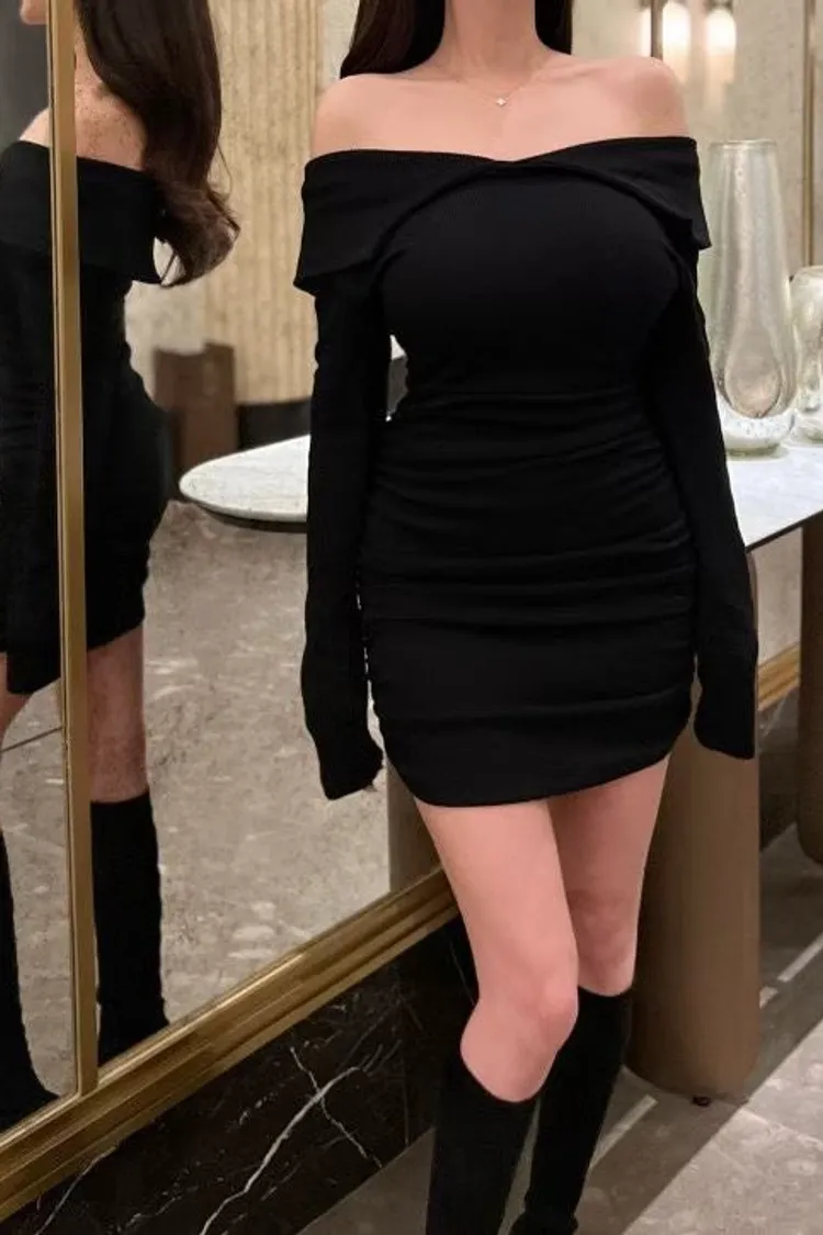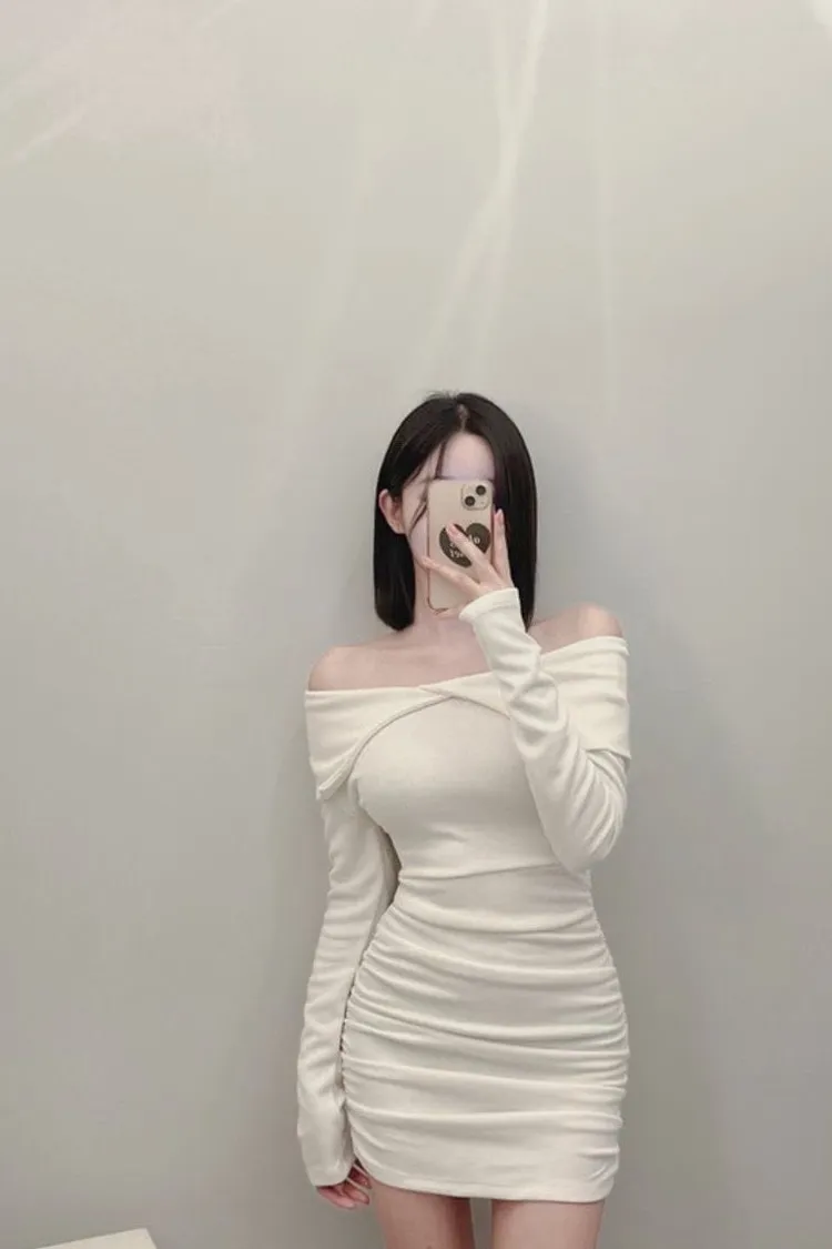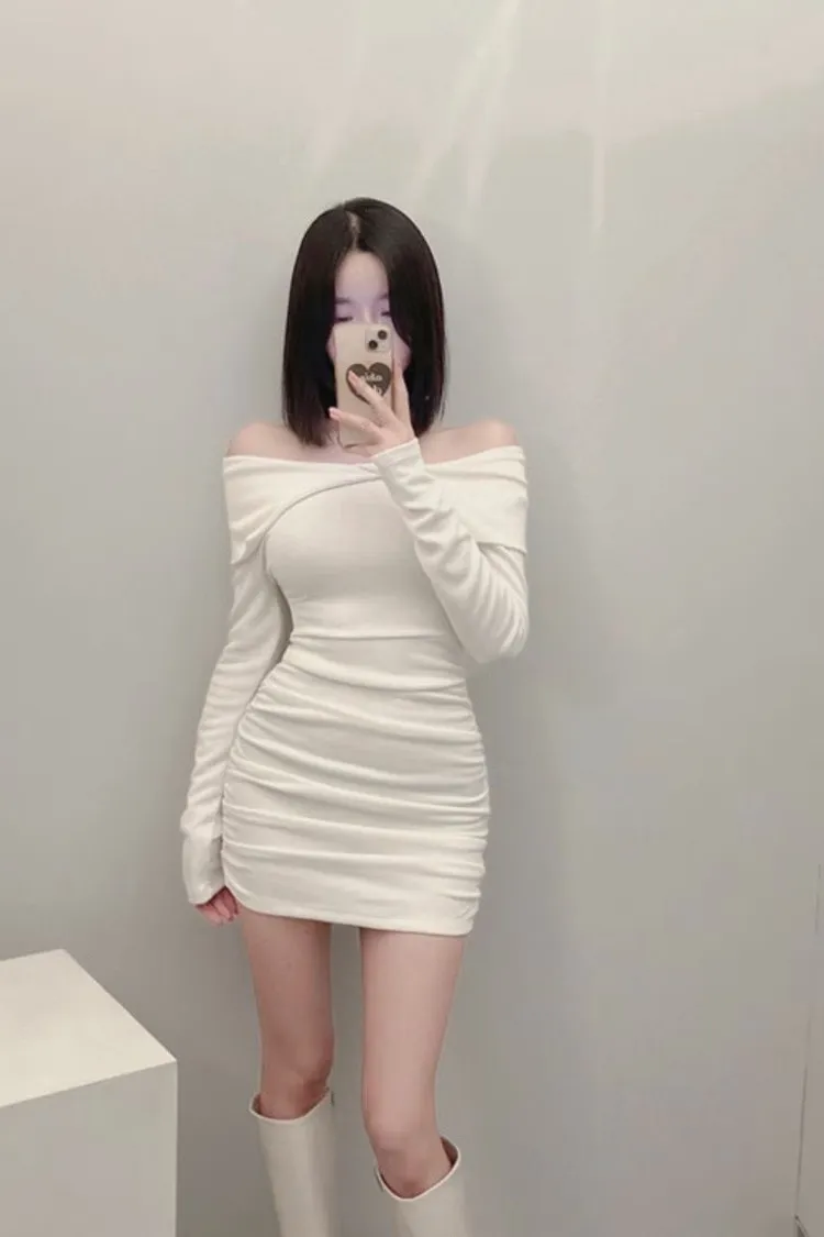 高級感翻領羅紋顯瘦彈力包臀洋