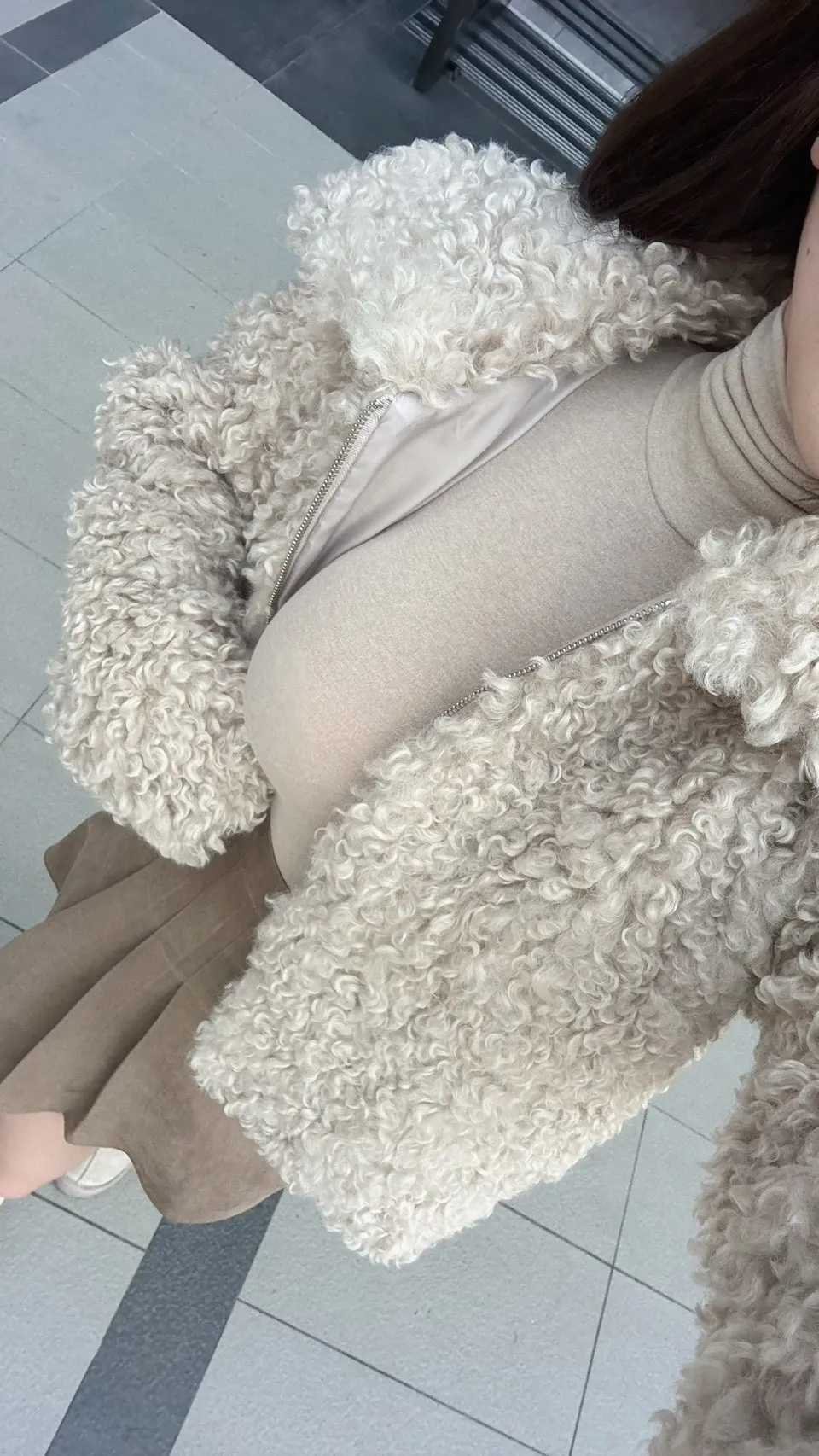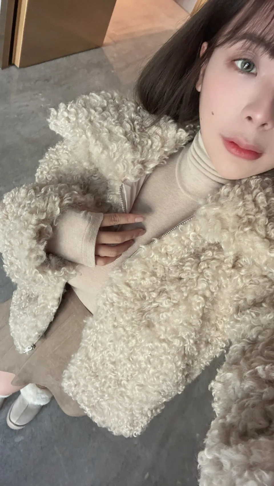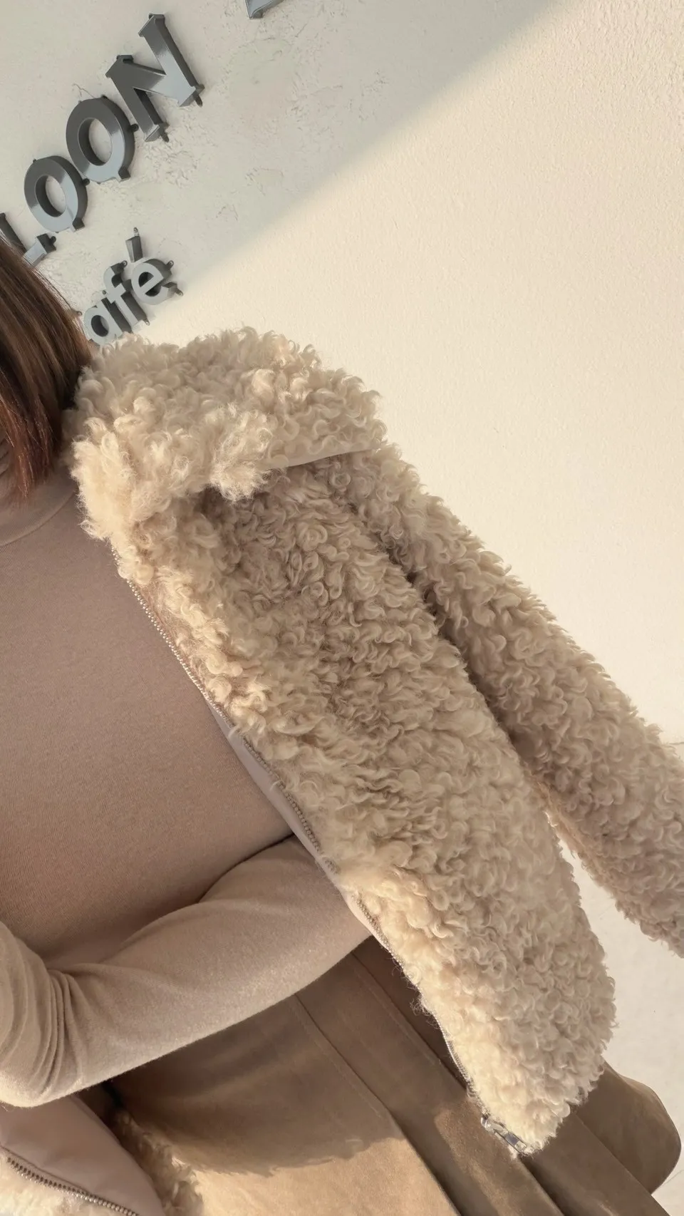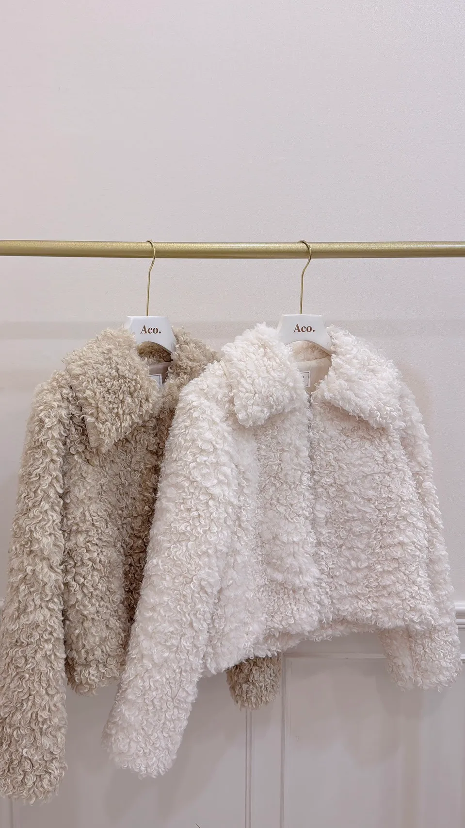 私藏訂製QQ捲捲毛翻領保暖拉鍊外套