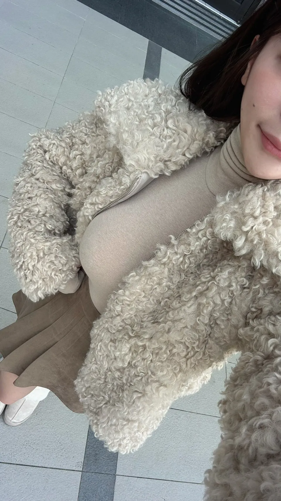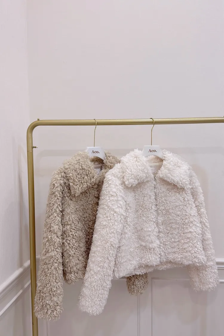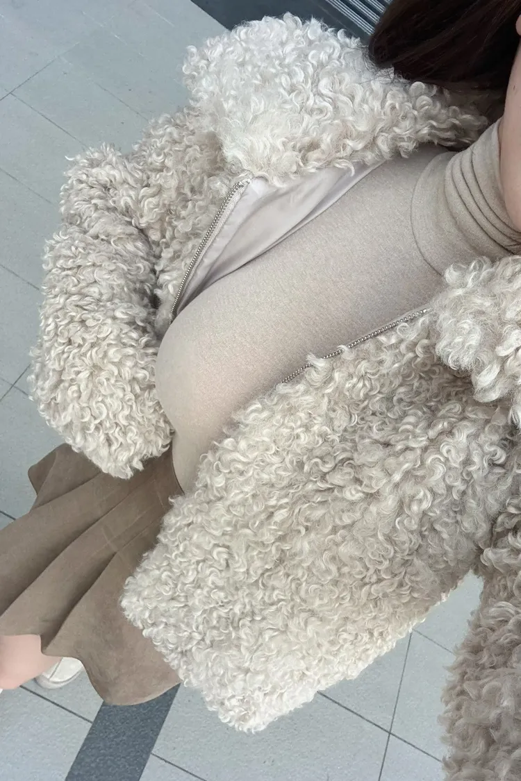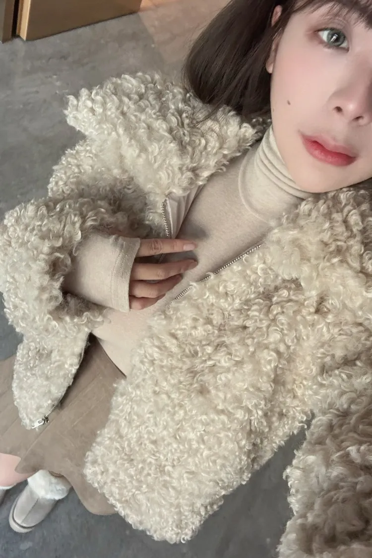 私藏訂製QQ捲捲毛翻領保暖拉鍊外套