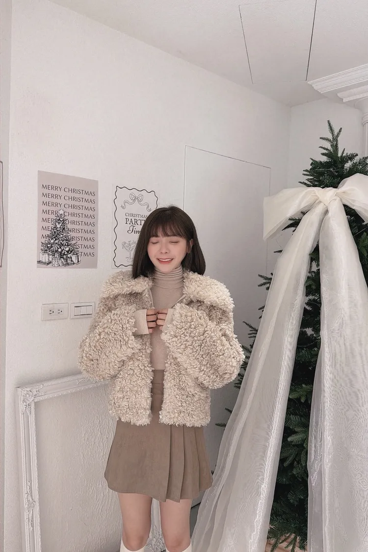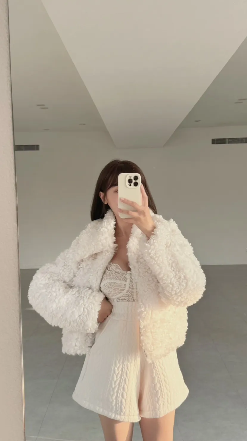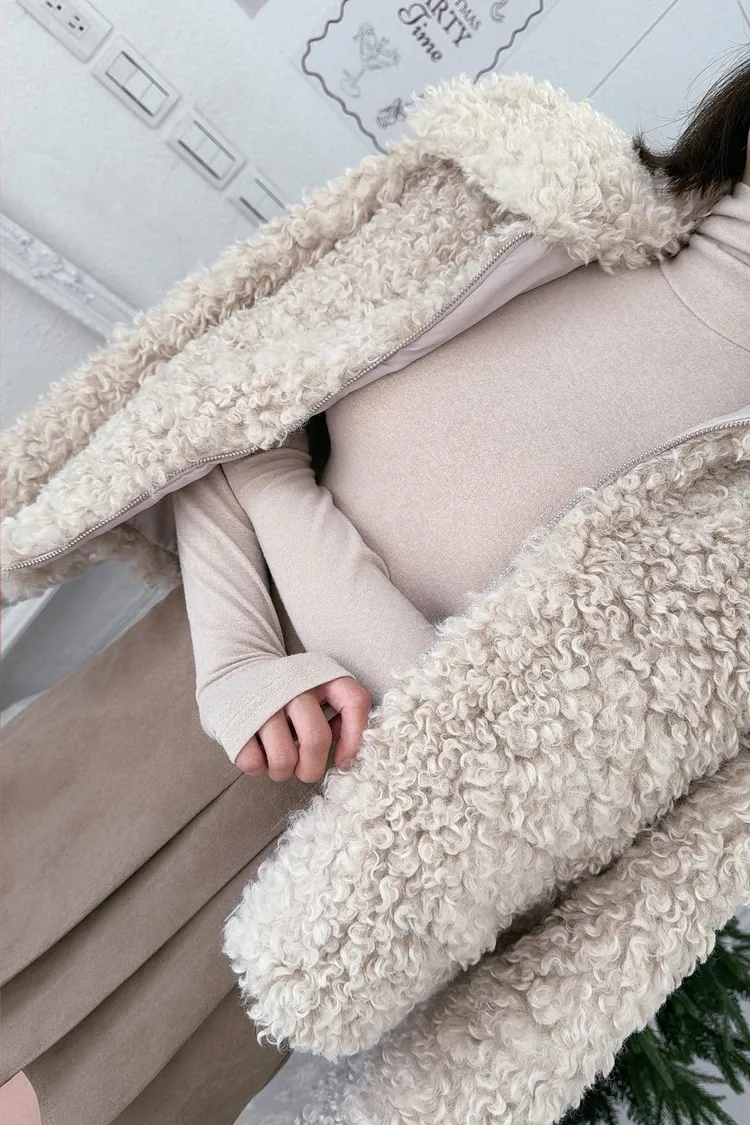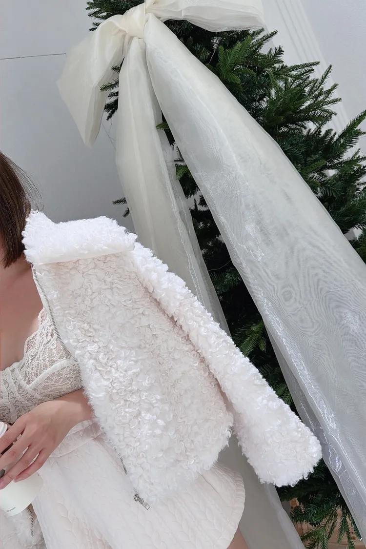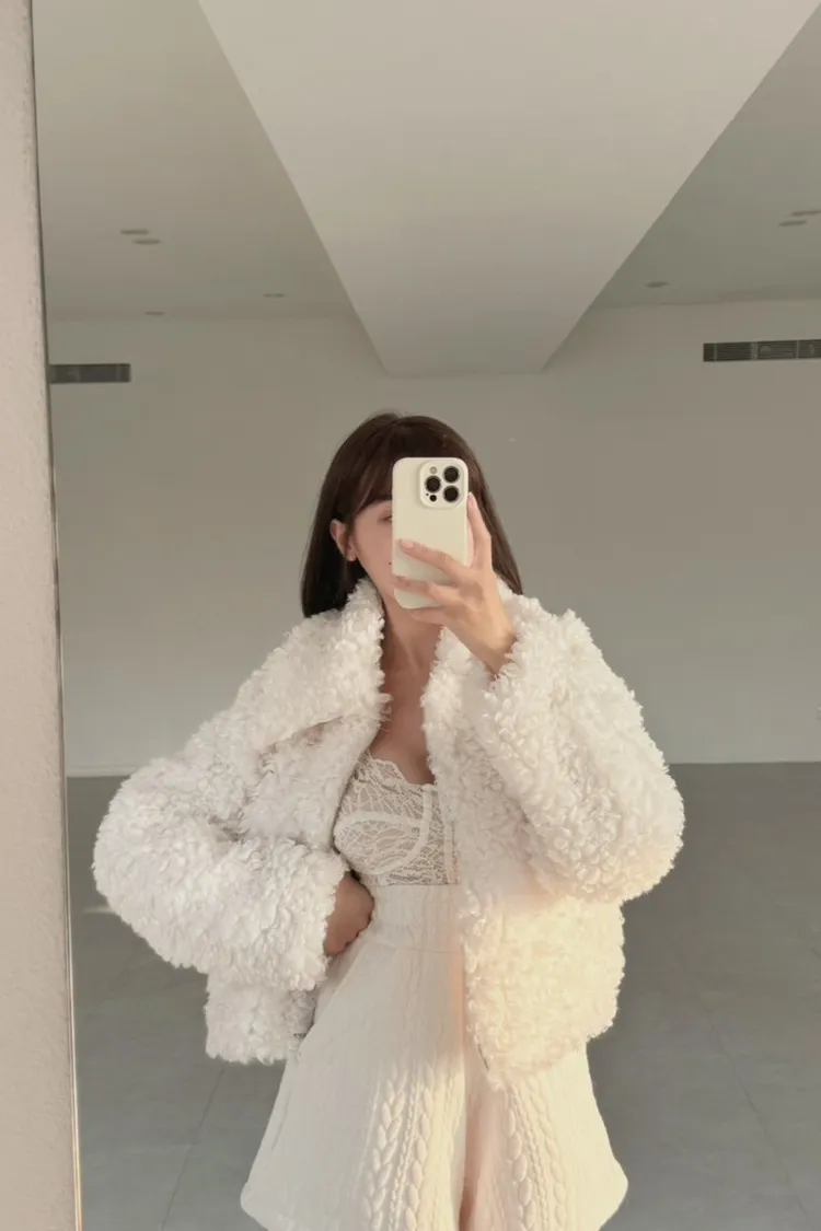 私藏訂製QQ捲捲毛翻領保暖拉鍊外套