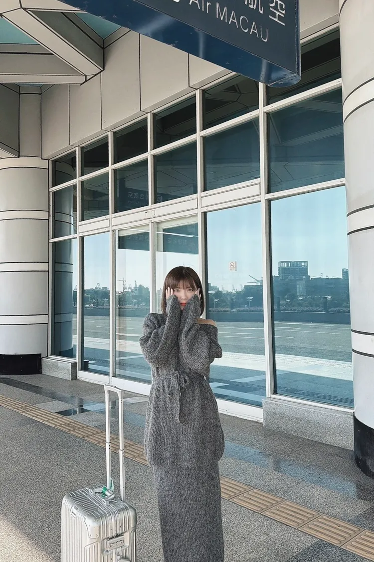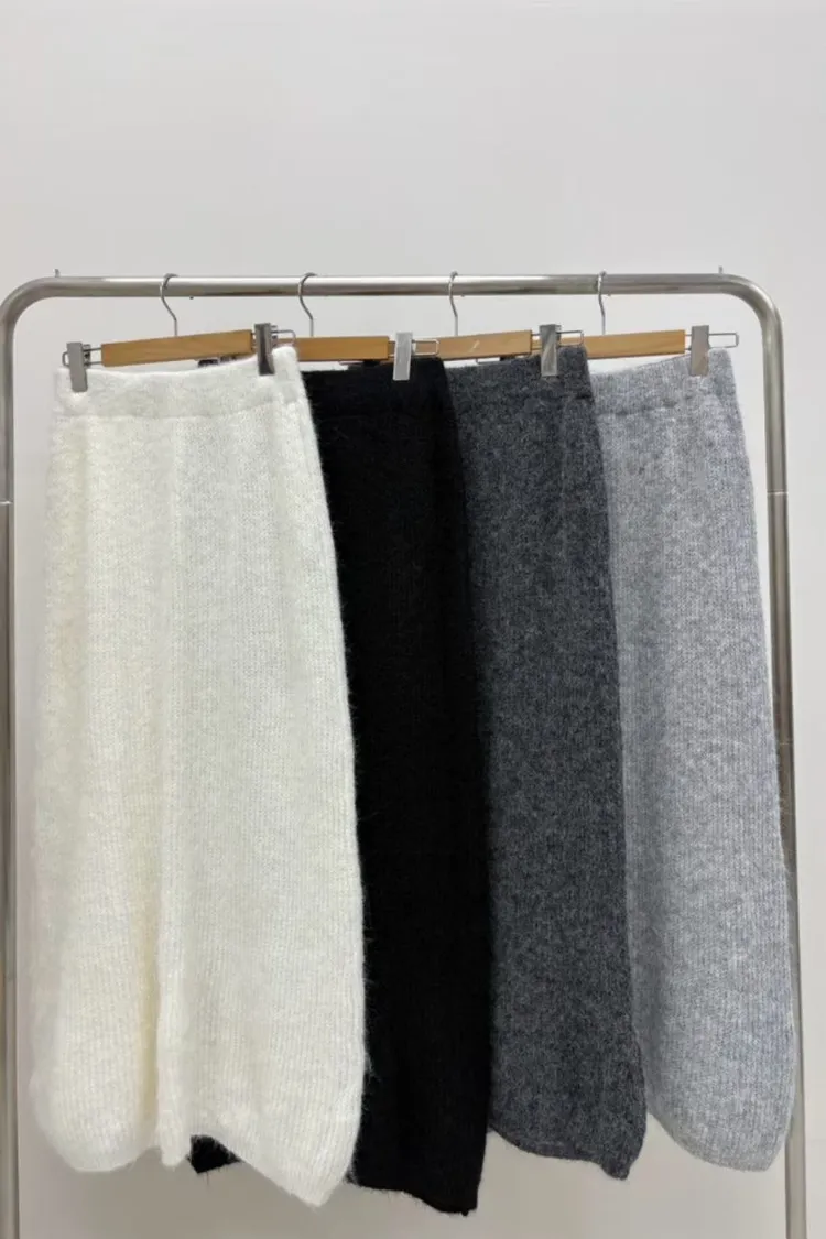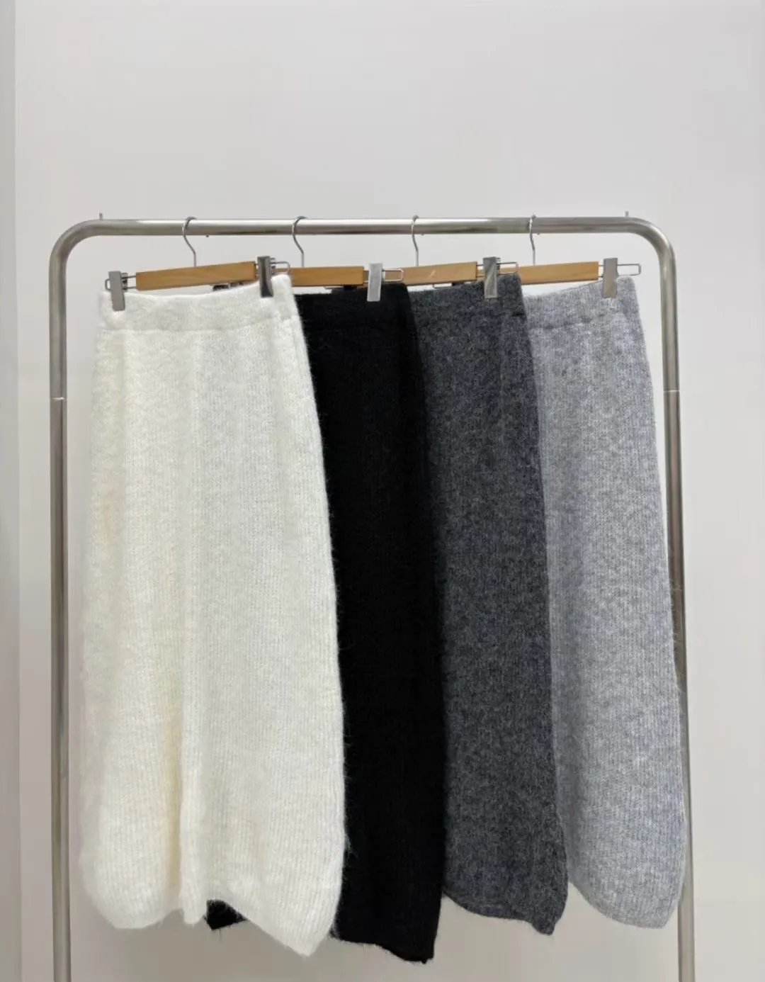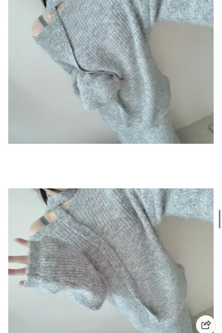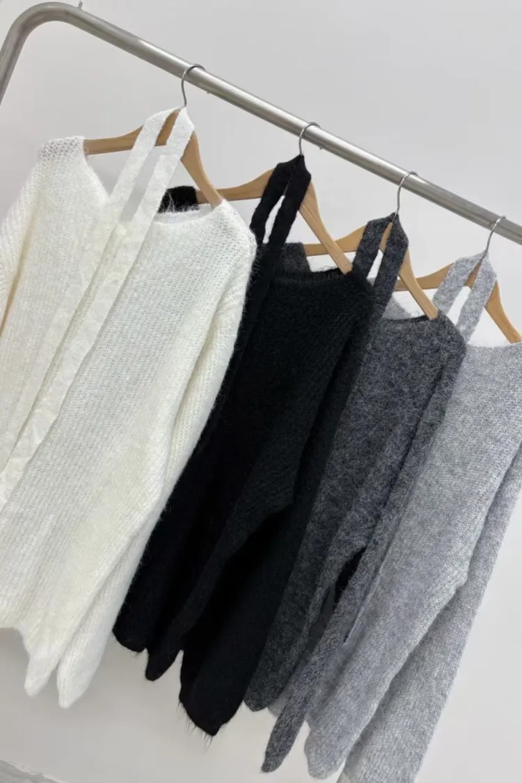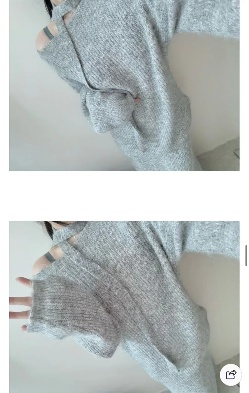 秋冬歐膩日常針織寬鬆兩件式set:寬鬆斜肩寬鬆上衣+高腰半身裙(附綁帶)