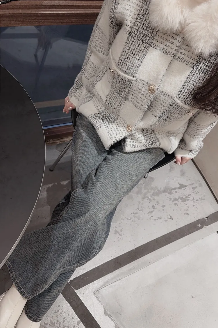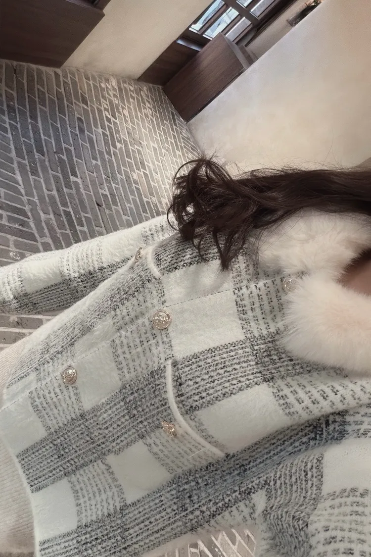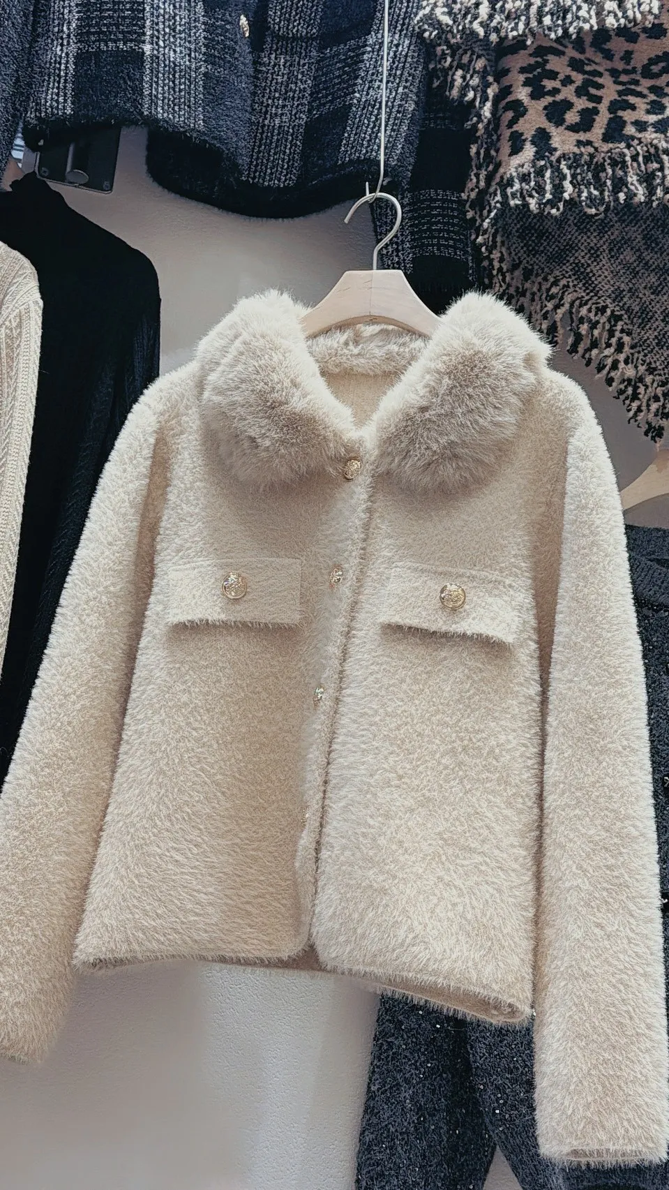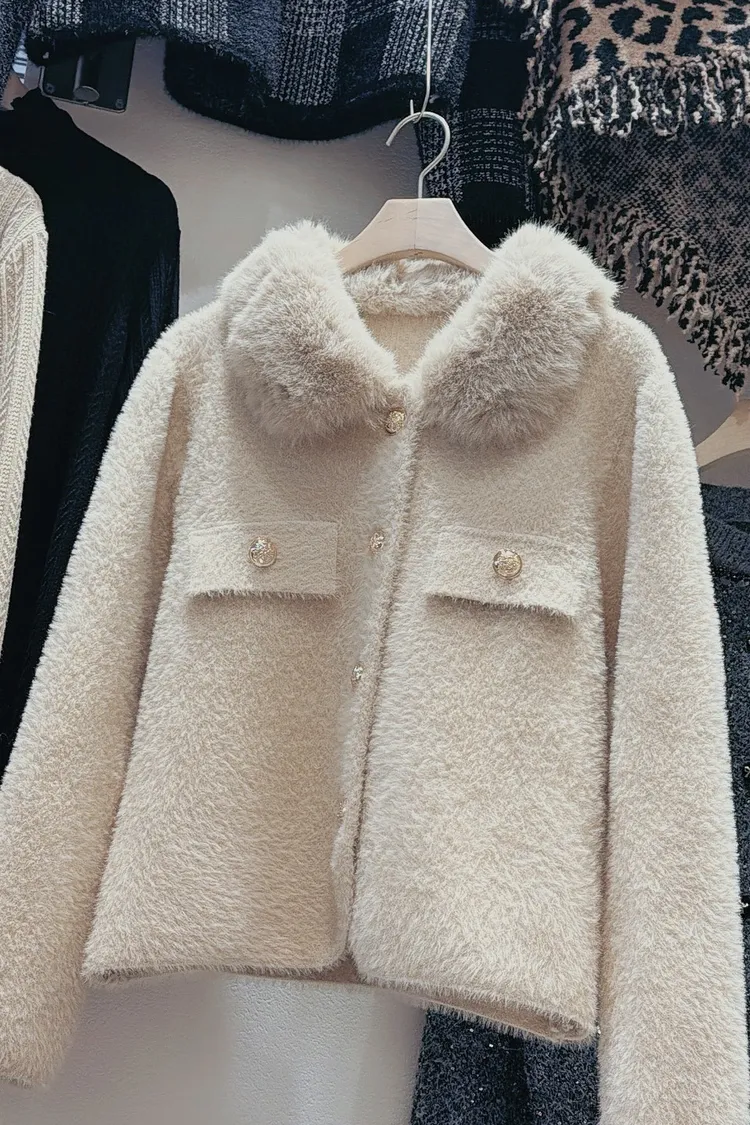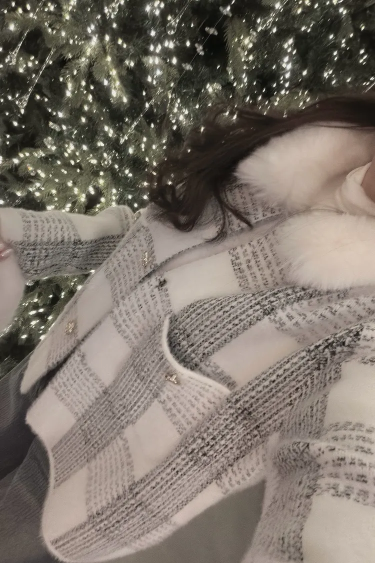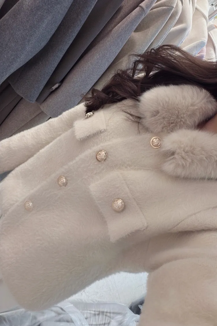 私藏高級感毛呢小香風立領毛毛拼接外套