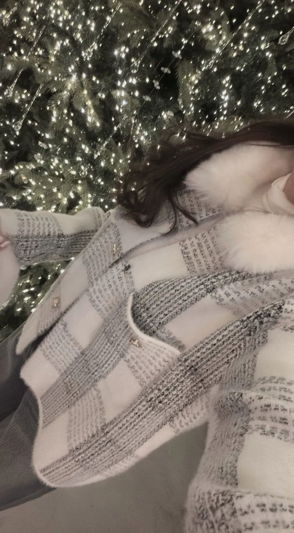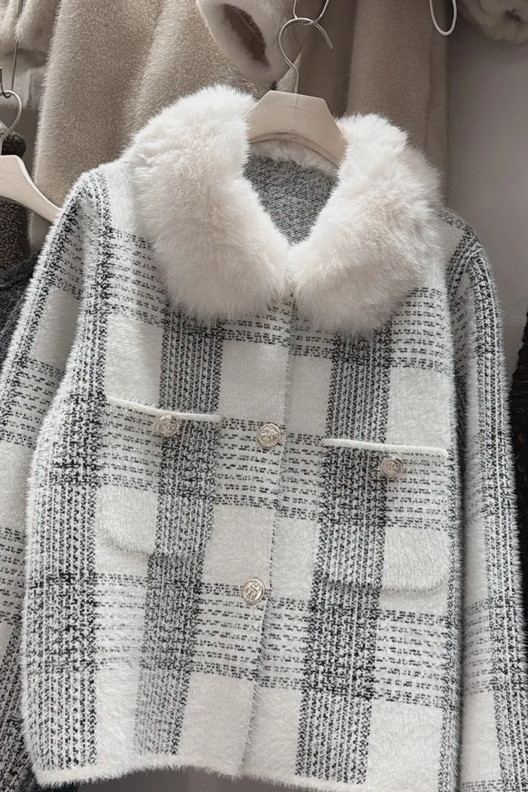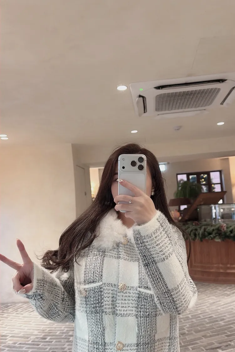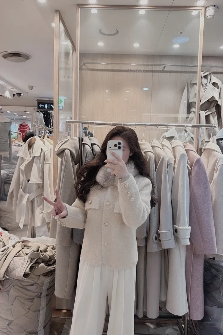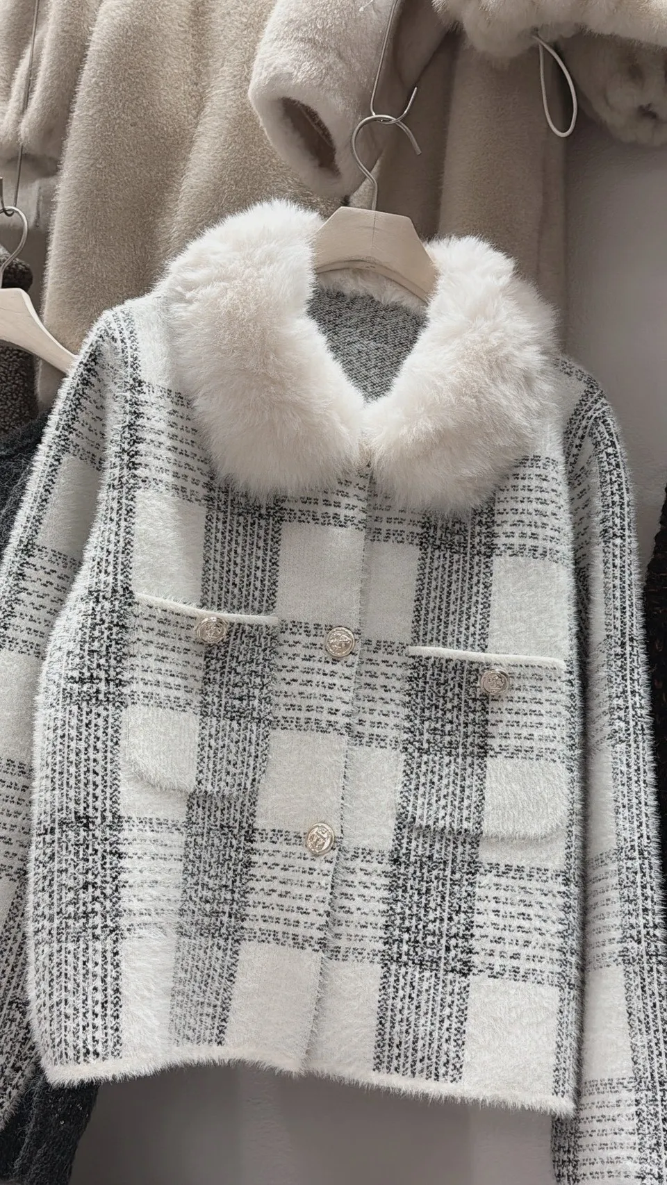 私藏高級感毛呢小香風立領毛毛拼接外套