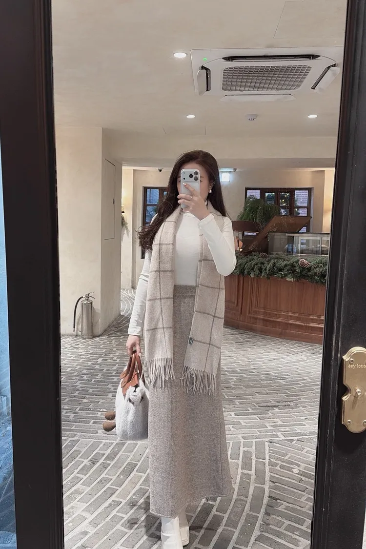 溫柔高級感挺版磨毛高腰彈力半身裙