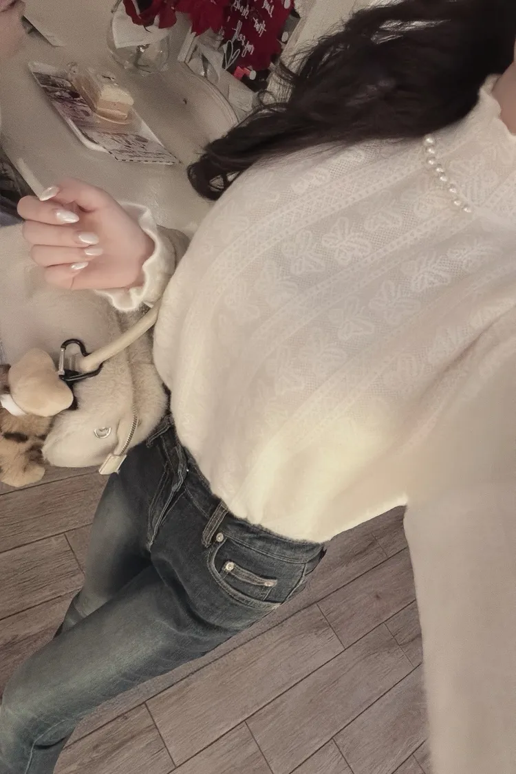 溫柔高級感緹花棉質珍珠立領上衣