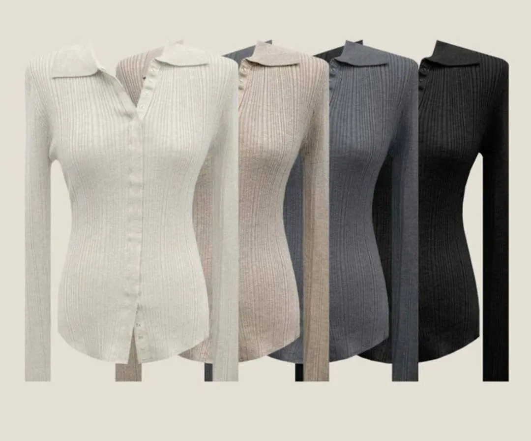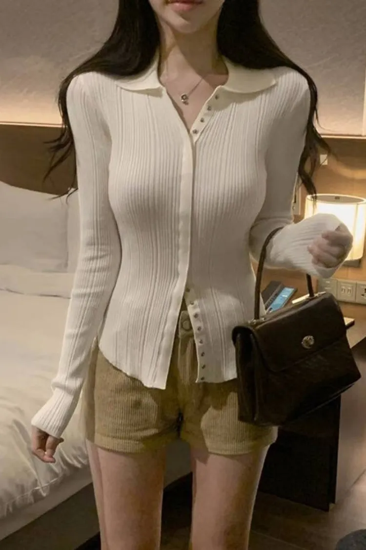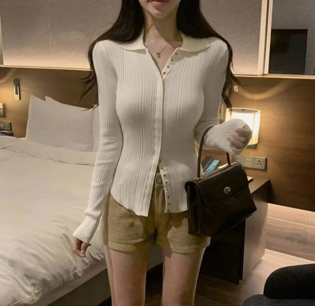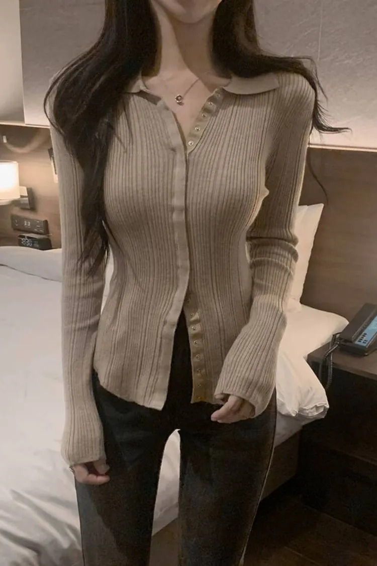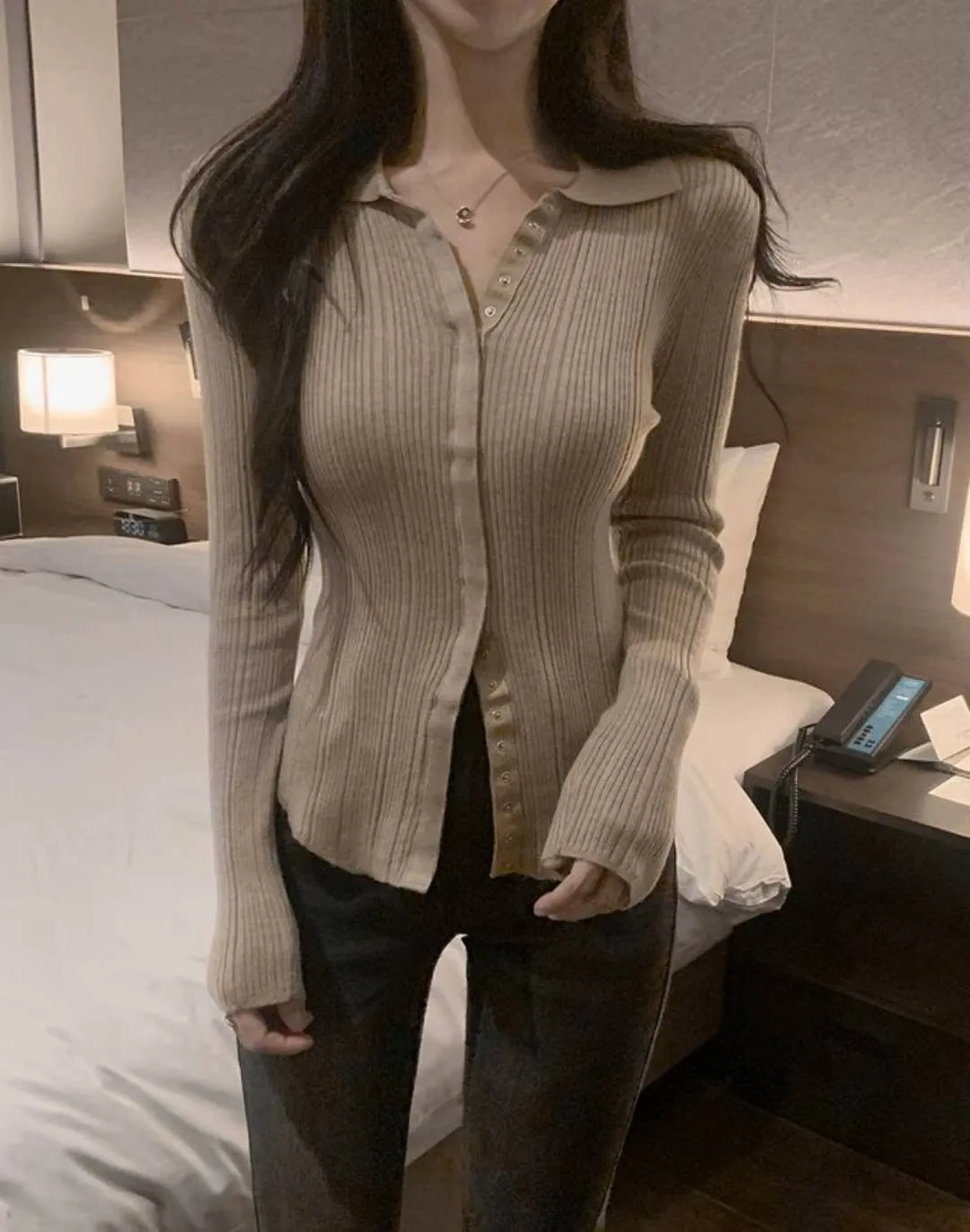 溫柔家私藏羅紋顯瘦翻領基本款上衣
