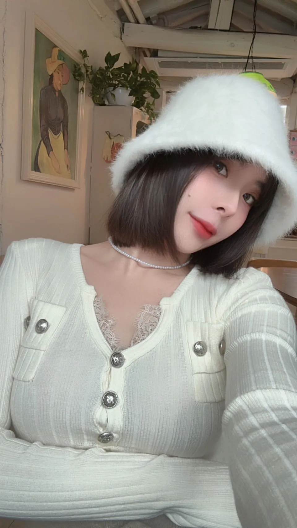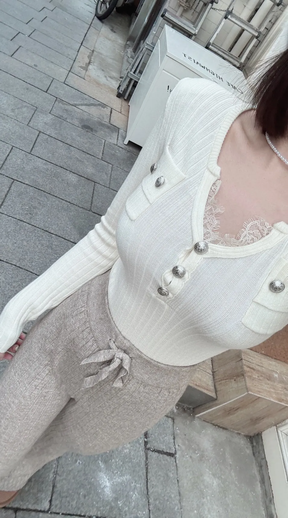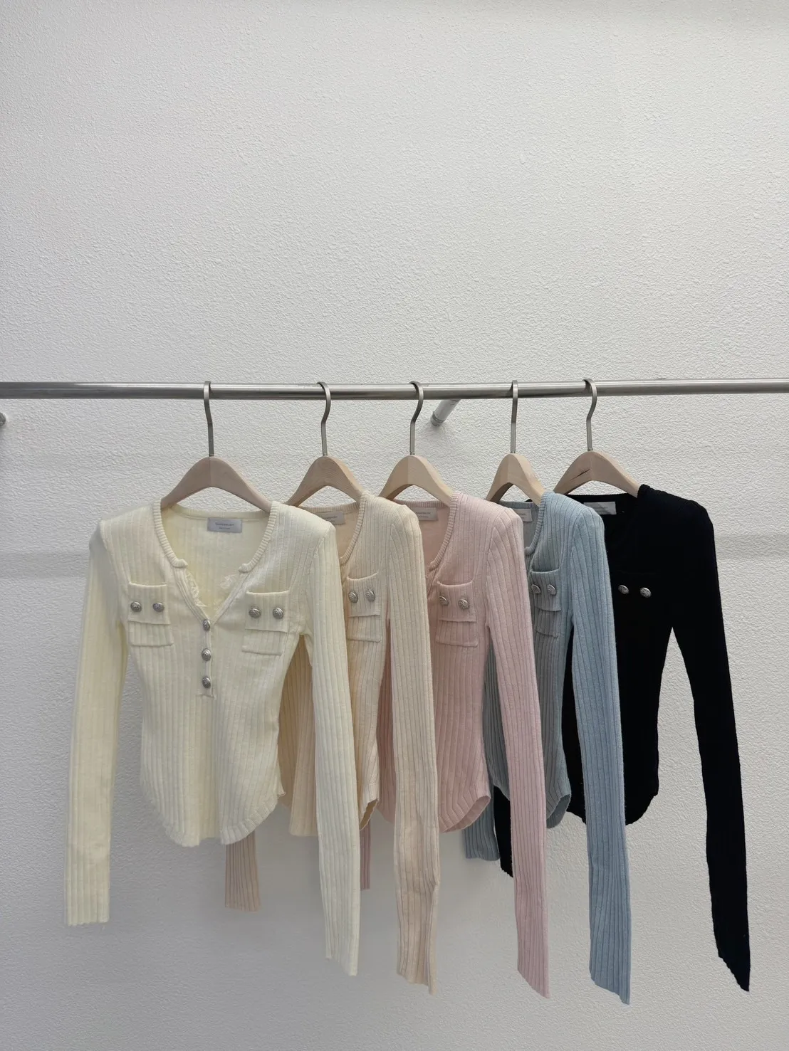 (檔口選品系列)歐膩家坑條羅紋小香風小V蕾絲上衣