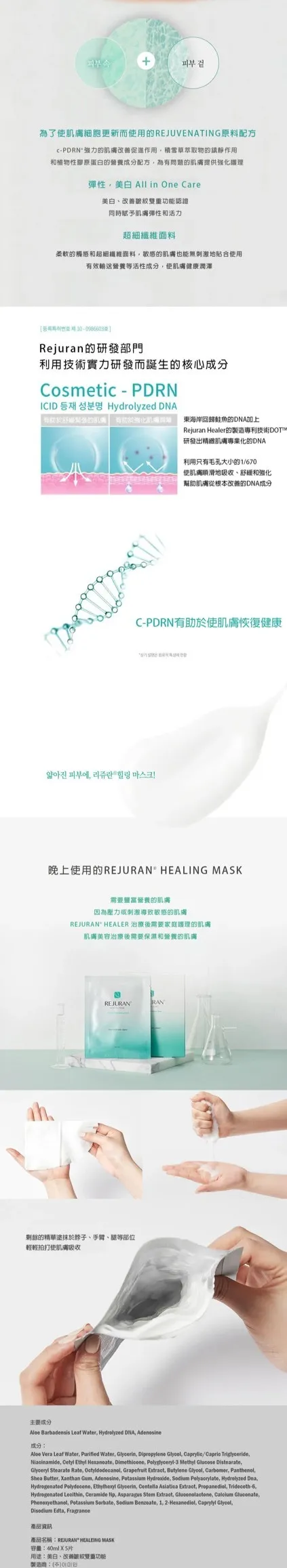 韓國醫美REJURAN麗珠蘭喚顏修護面膜五片裝