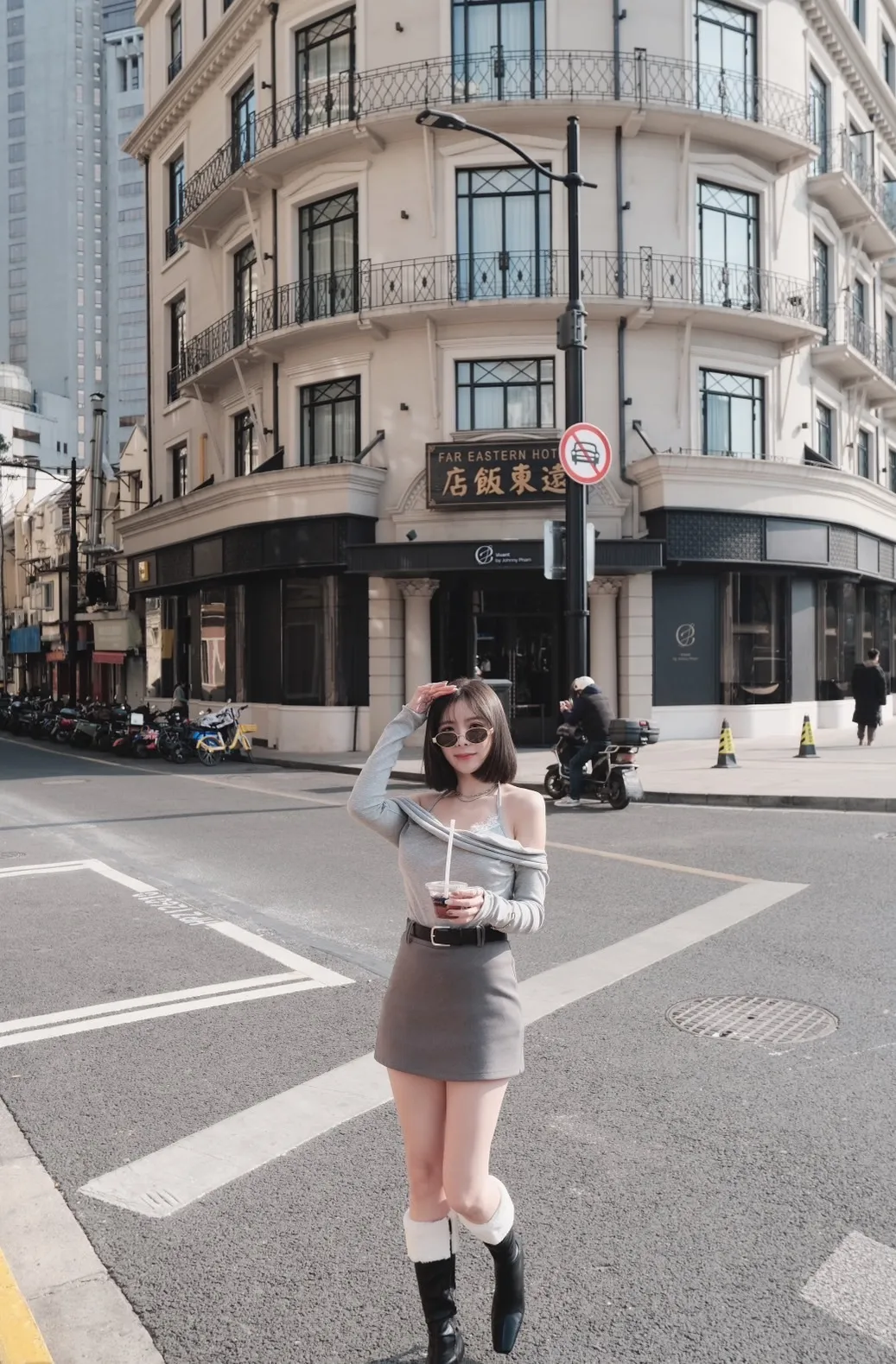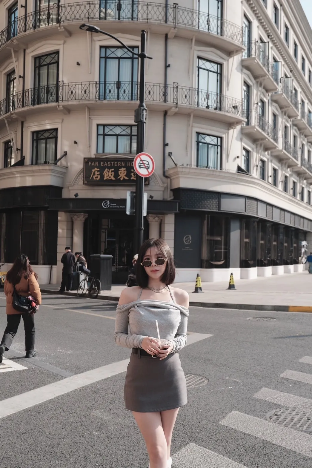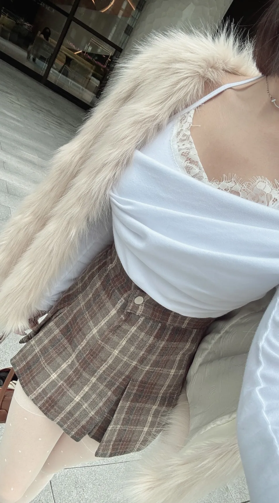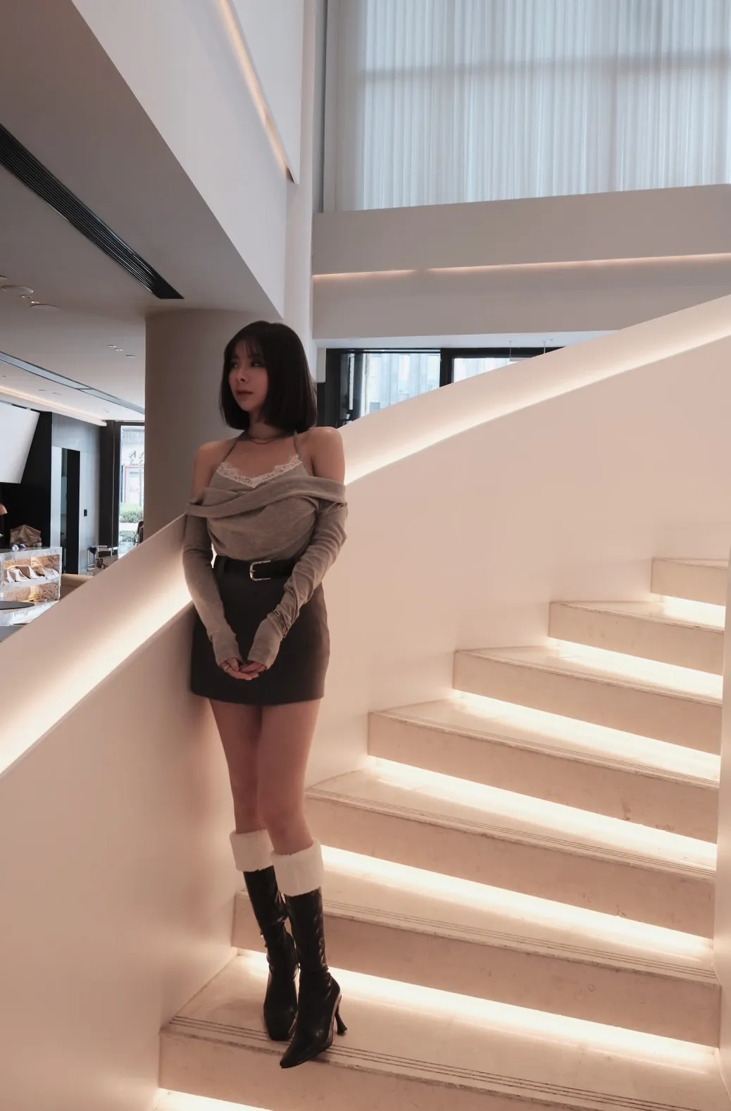 私藏假兩件性感蕾絲繞脖彈力棉質上衣(高級灰現貨)
