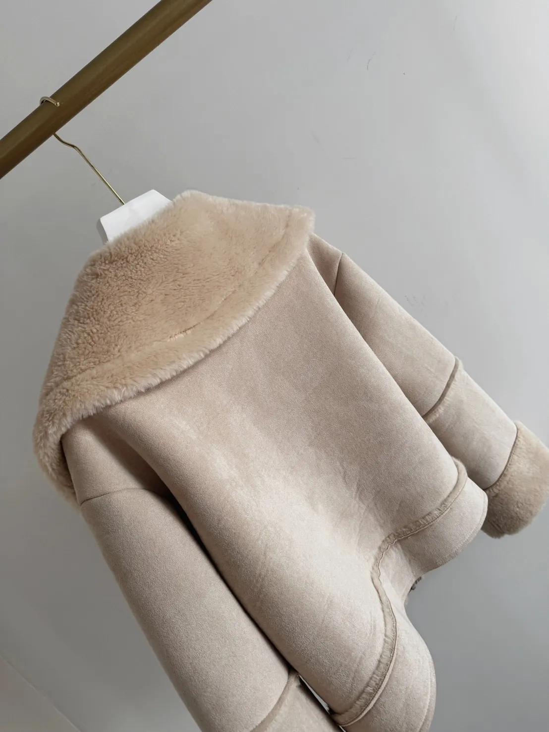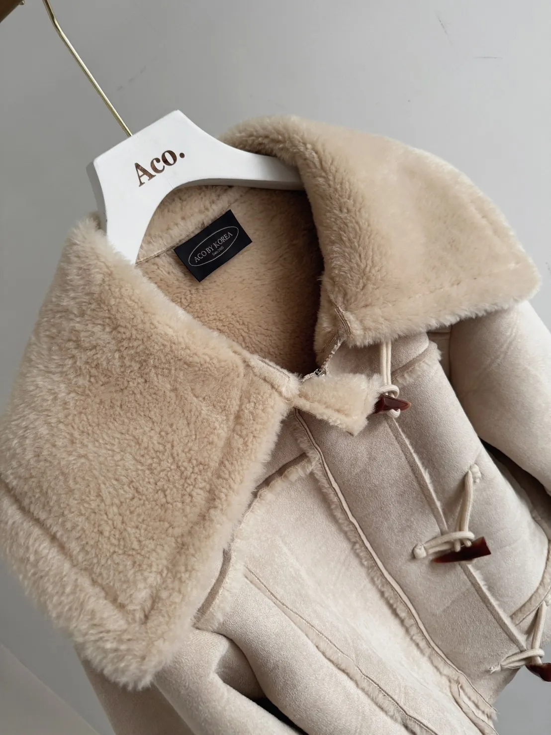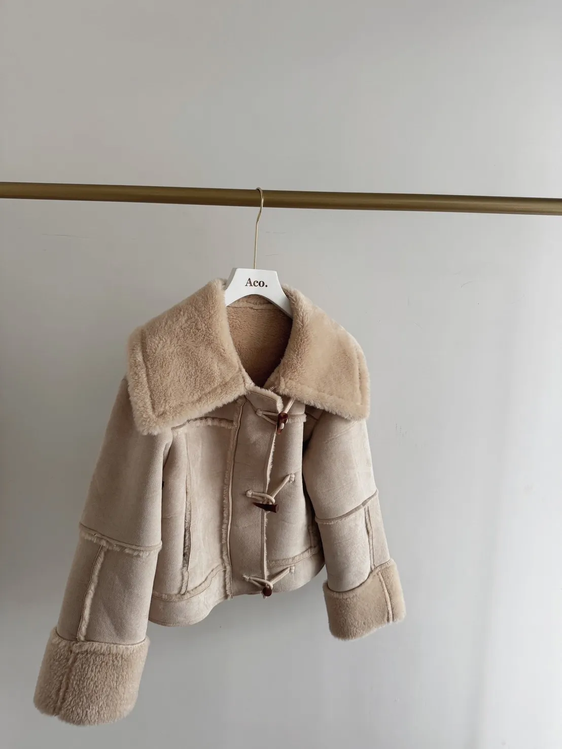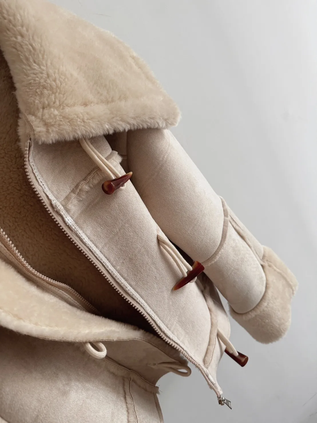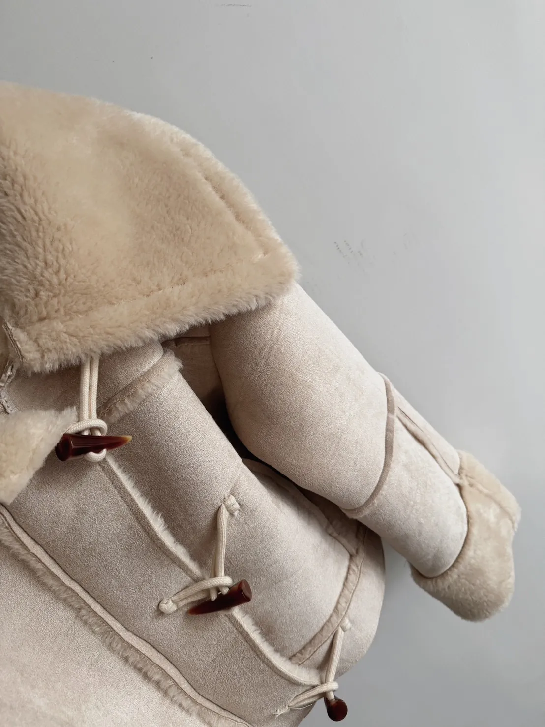 私藏必買麂皮翻領QQ毛保暖牛角釦外套