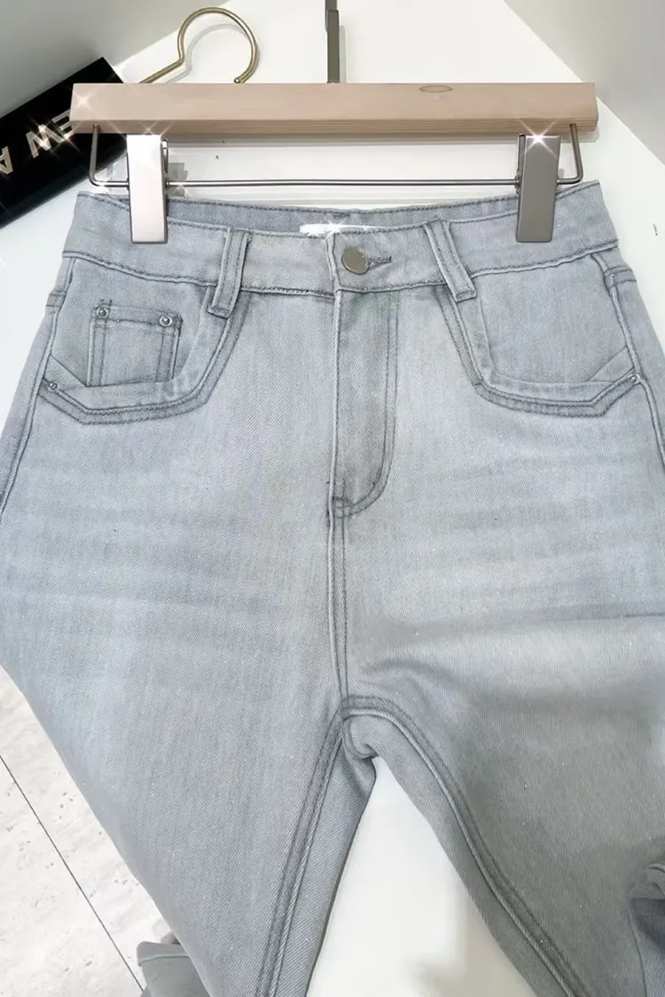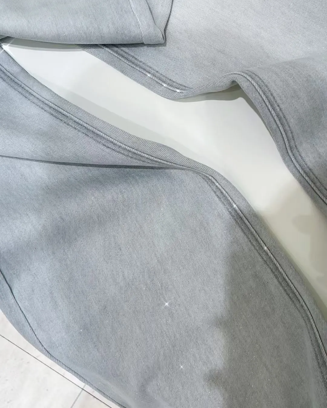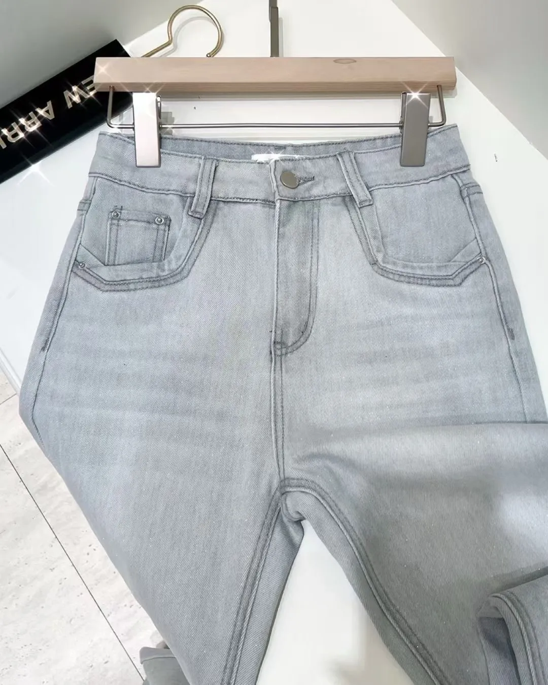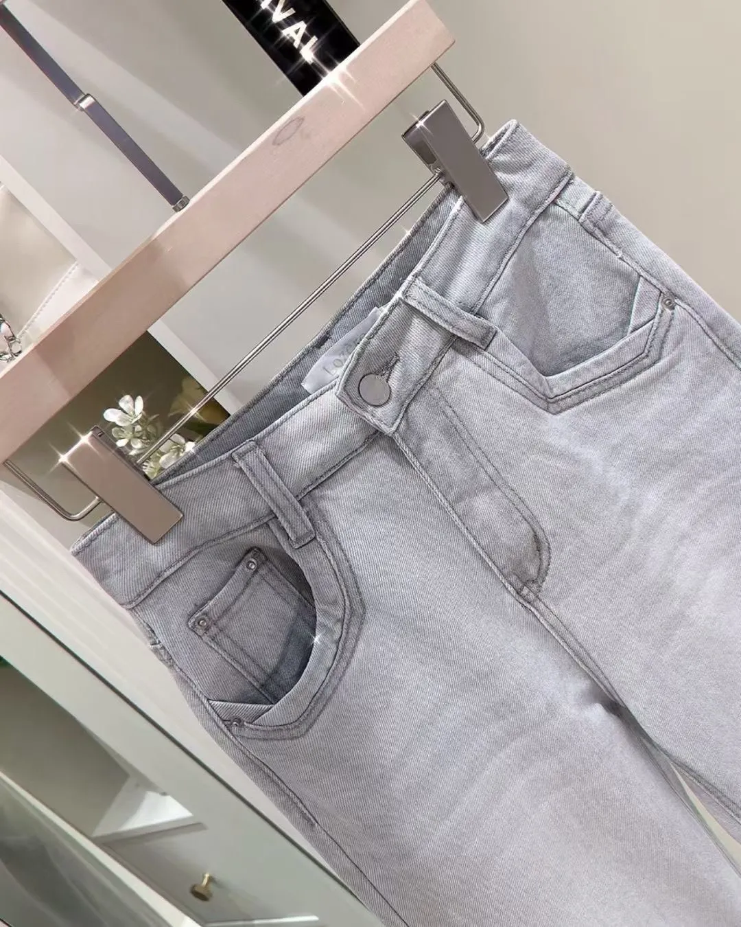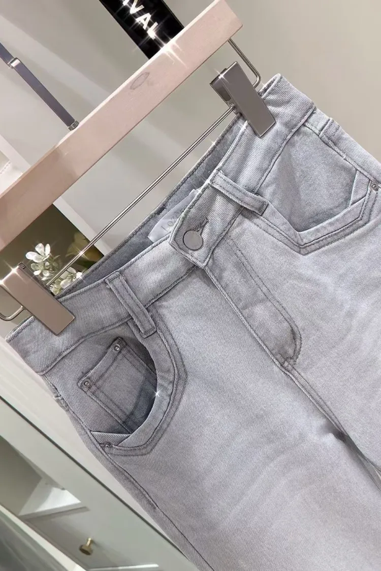 超絕美必買細閃高腰彈力淺藍喇叭褲
