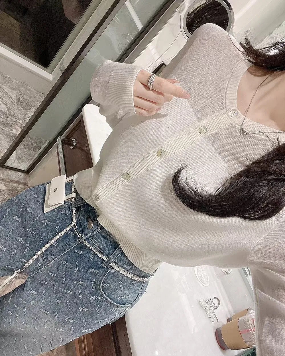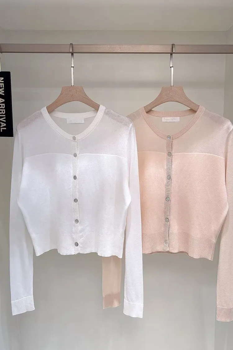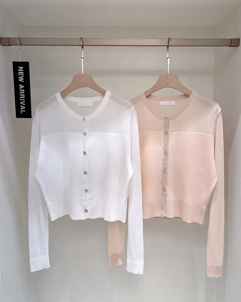 溫柔歐膩家透膚針織排釦罩衫上衣
