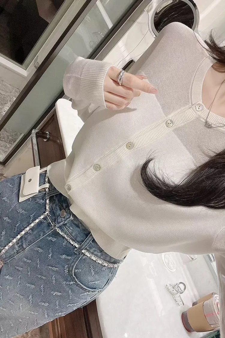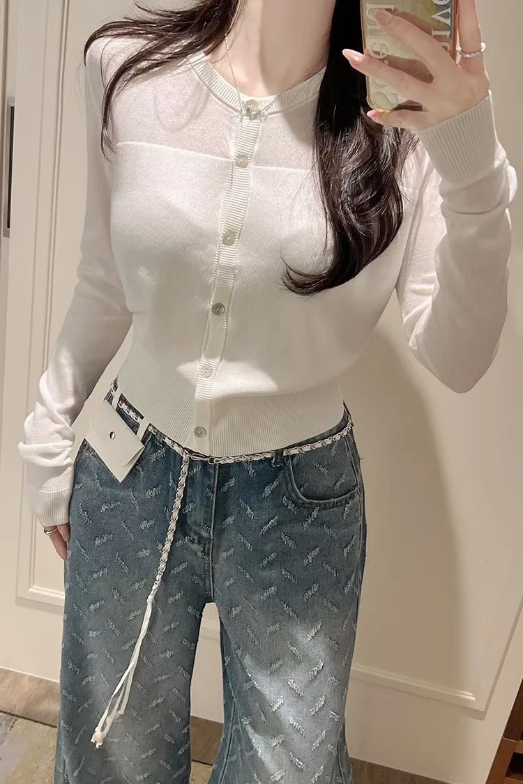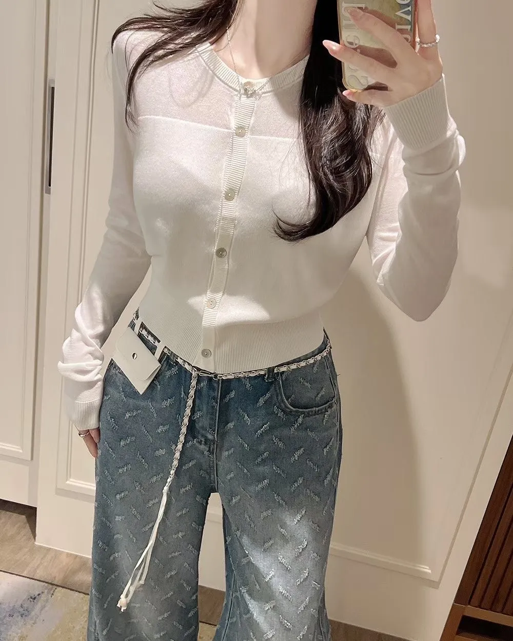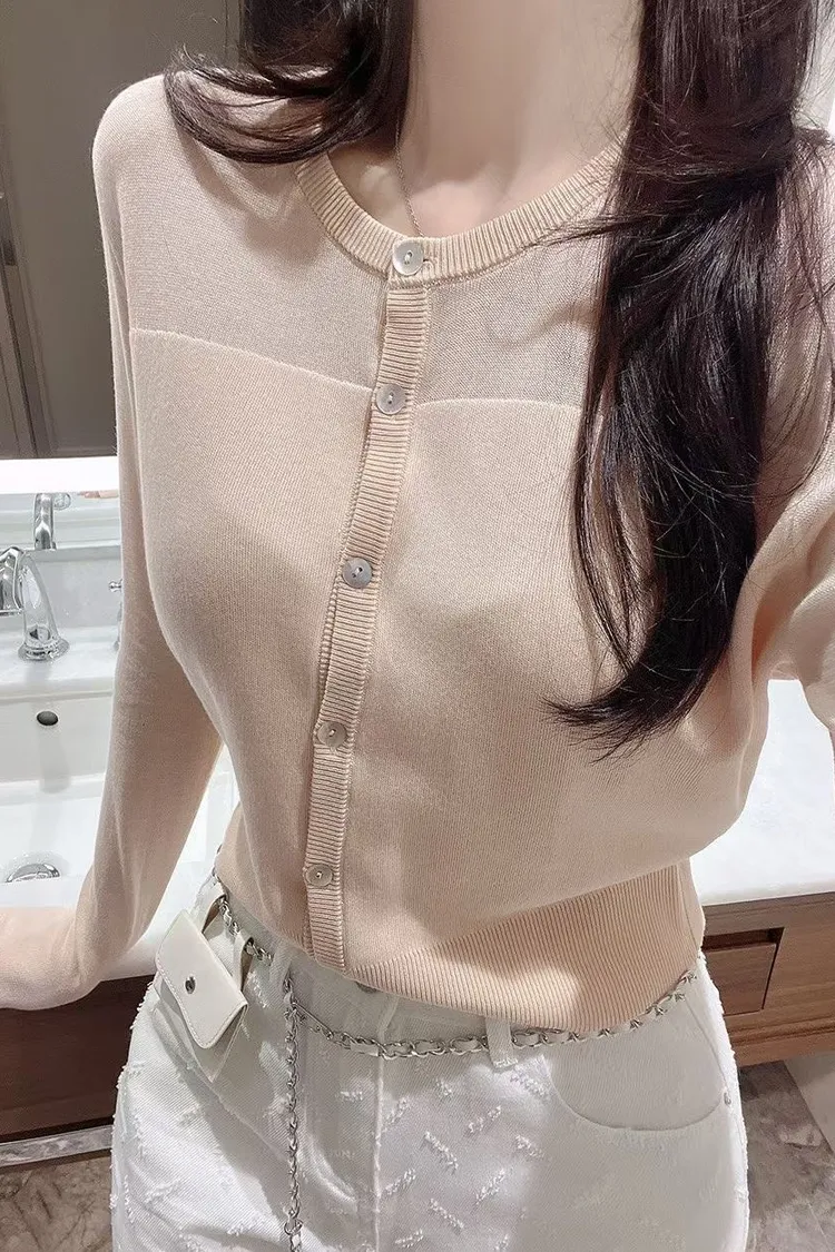 溫柔歐膩家透膚針織排釦罩衫上衣