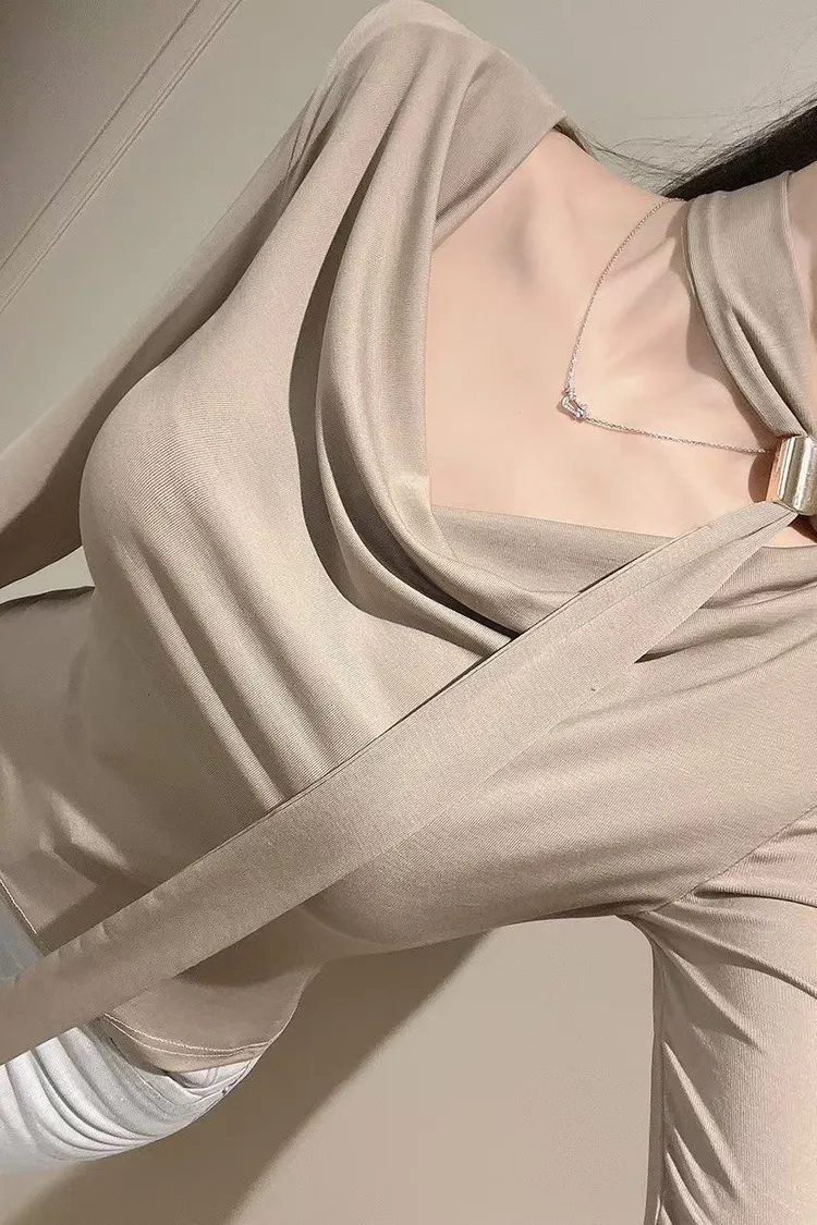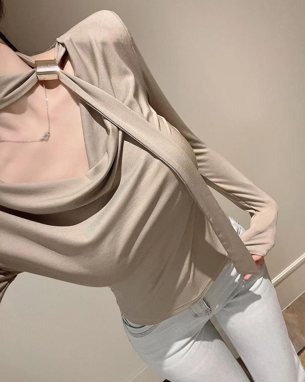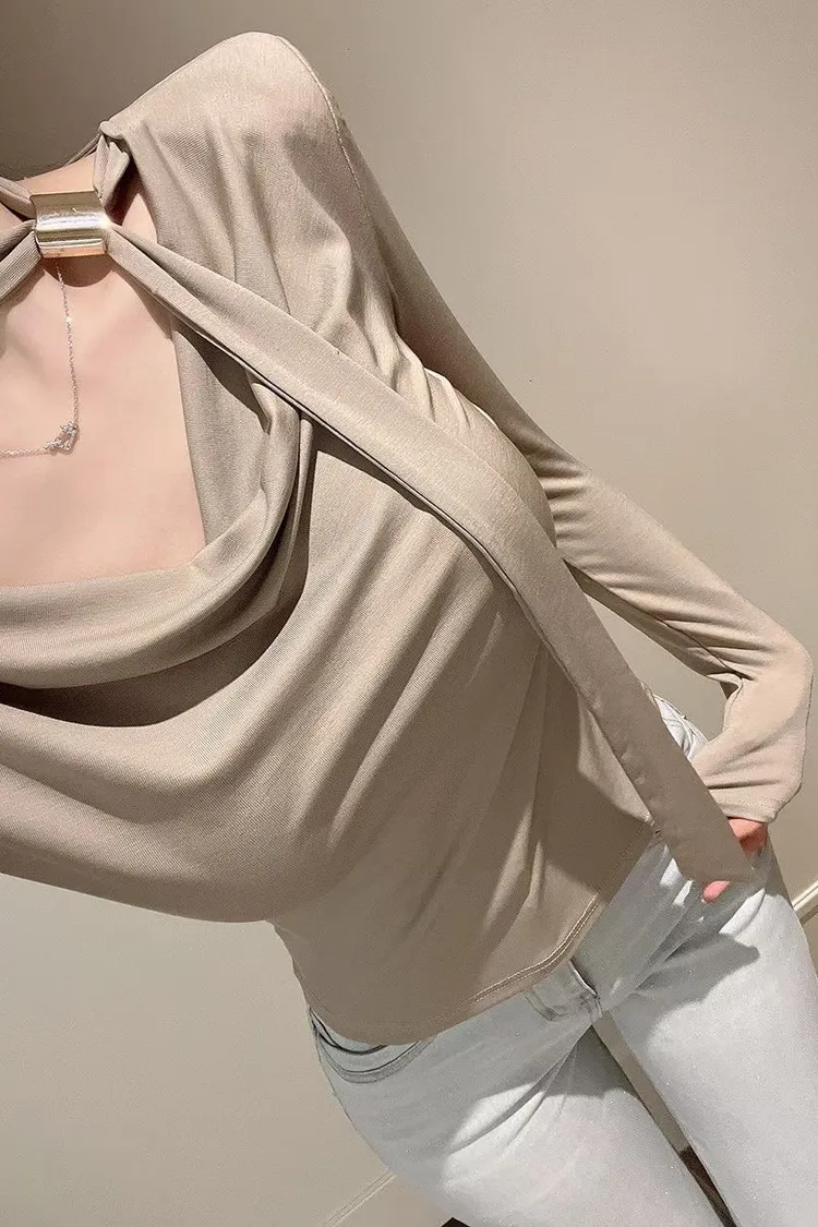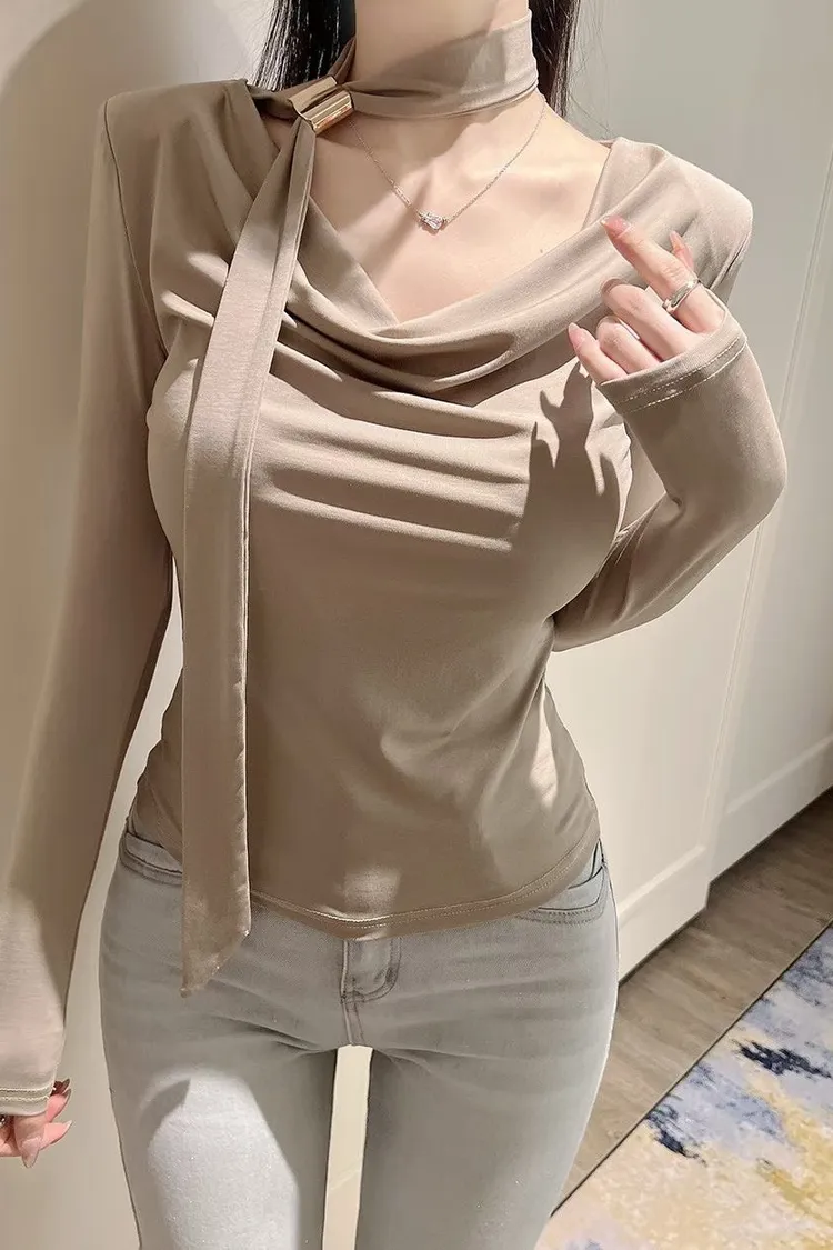 溫柔家高級棉質造型金釦綁帶上衣