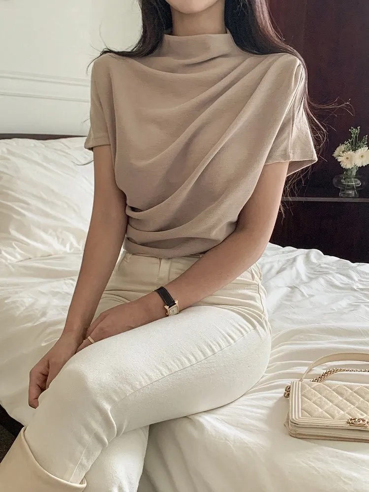 早春必買!溫柔抓皺小立領棉質基本款上衣(包色優惠)