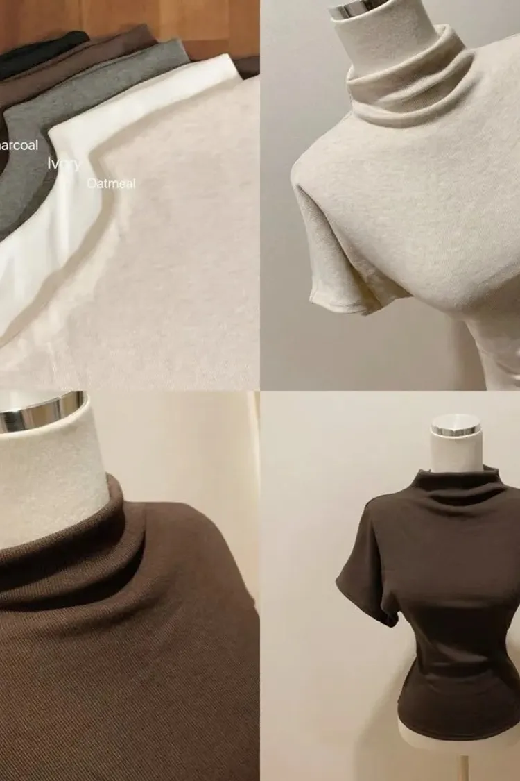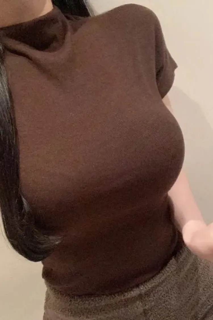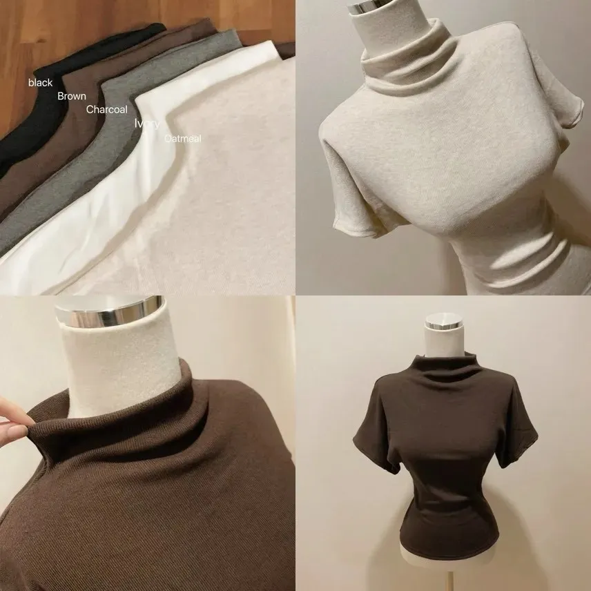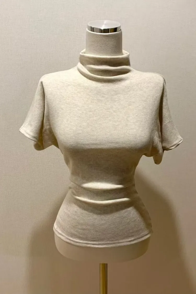 (日常必買)羅紋棉質超親膚彈力小立領短袖上衣