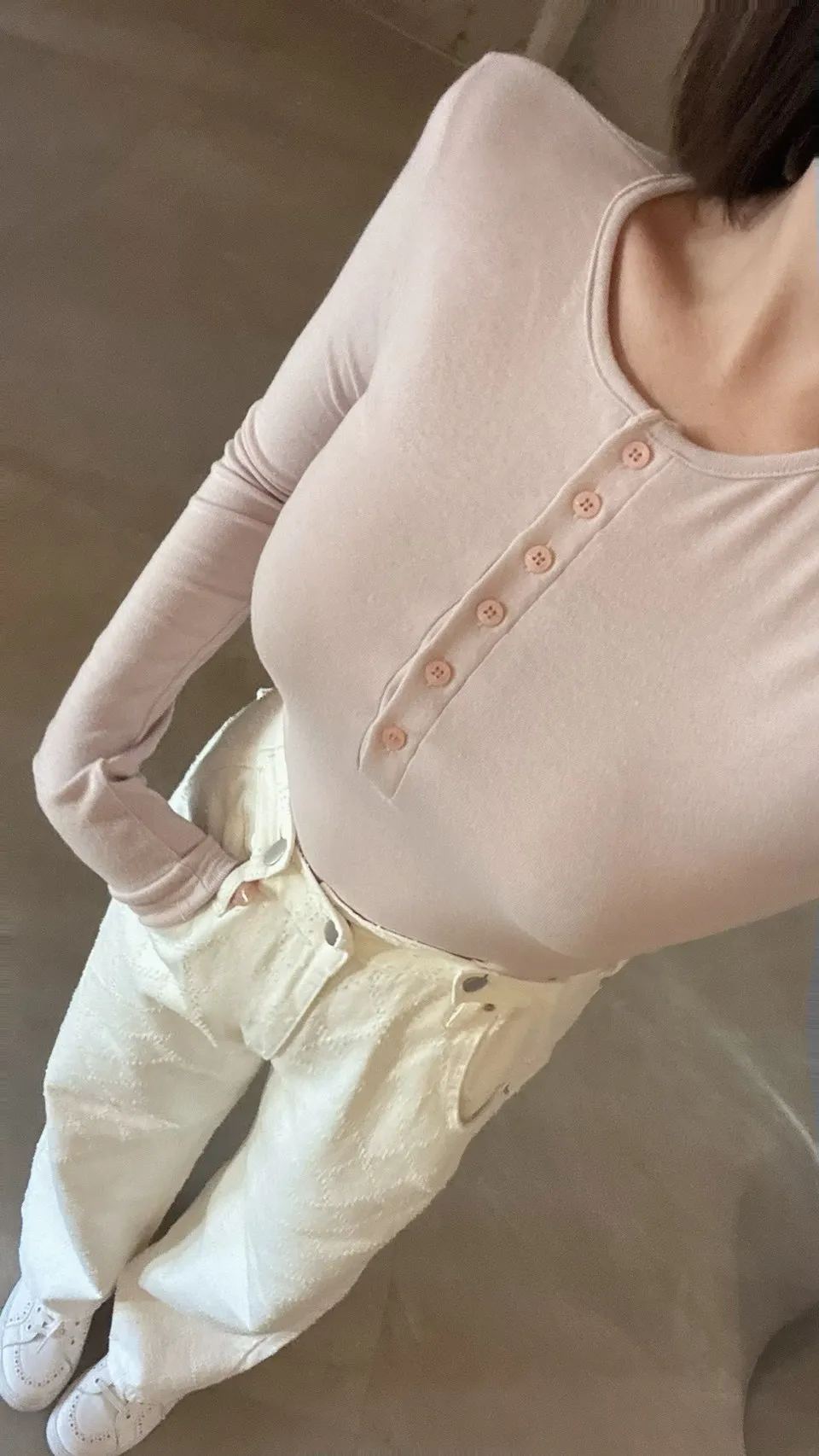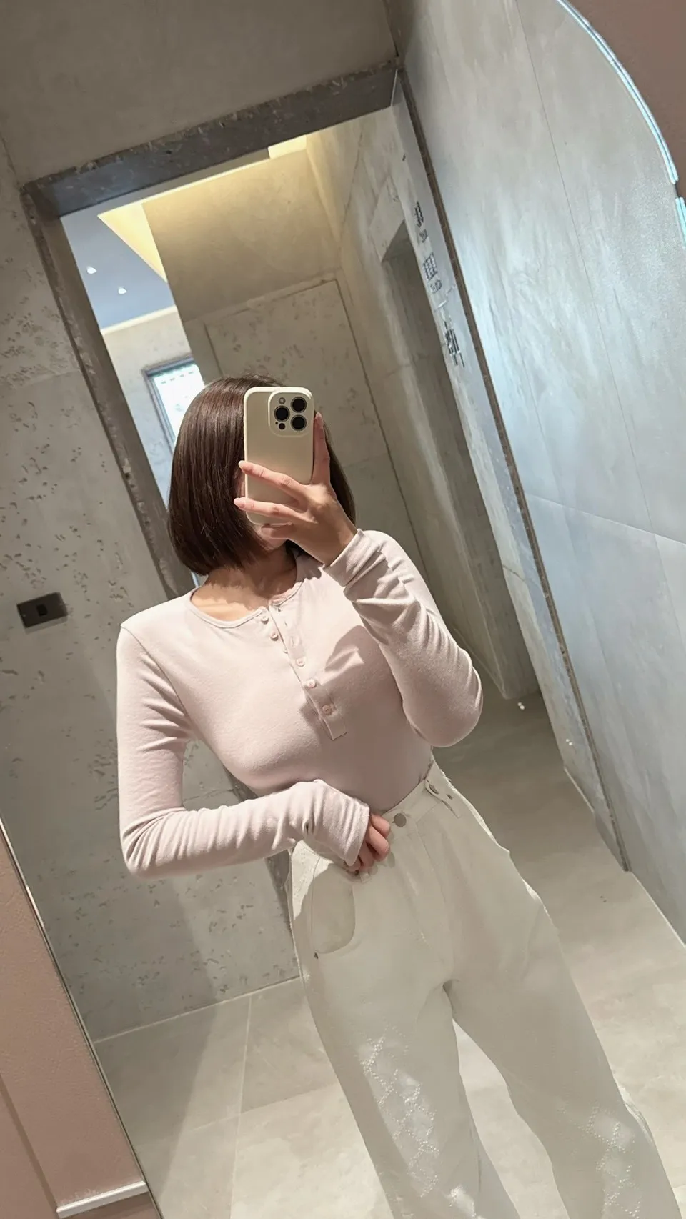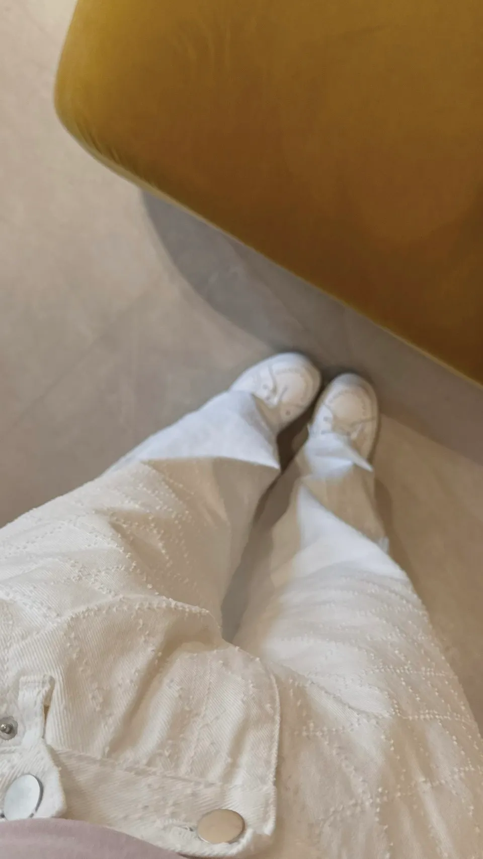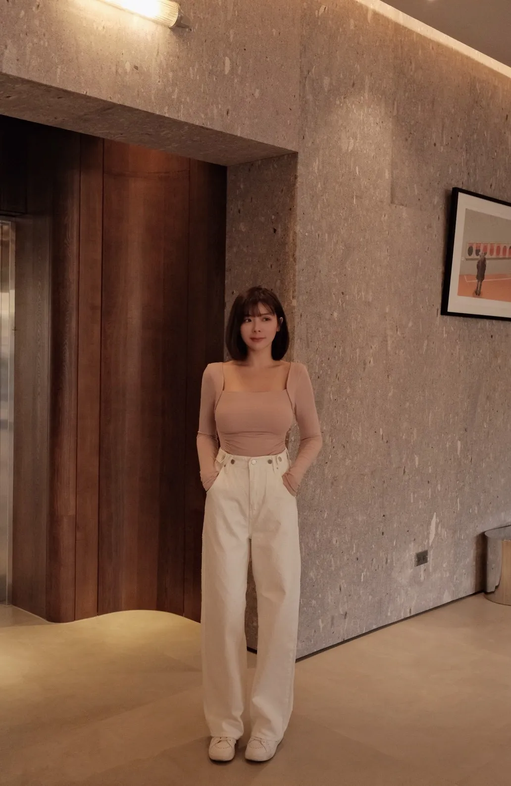 必買私藏菱格紋腰釦設計白色牛仔寬褲