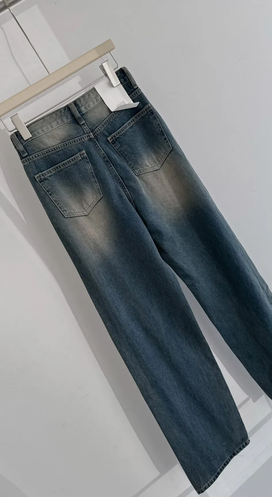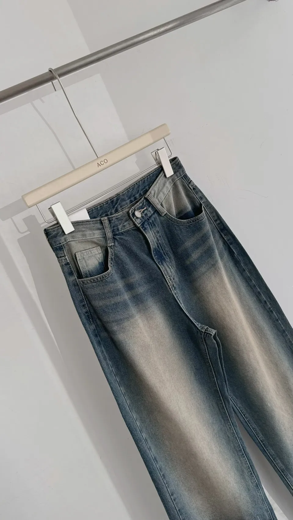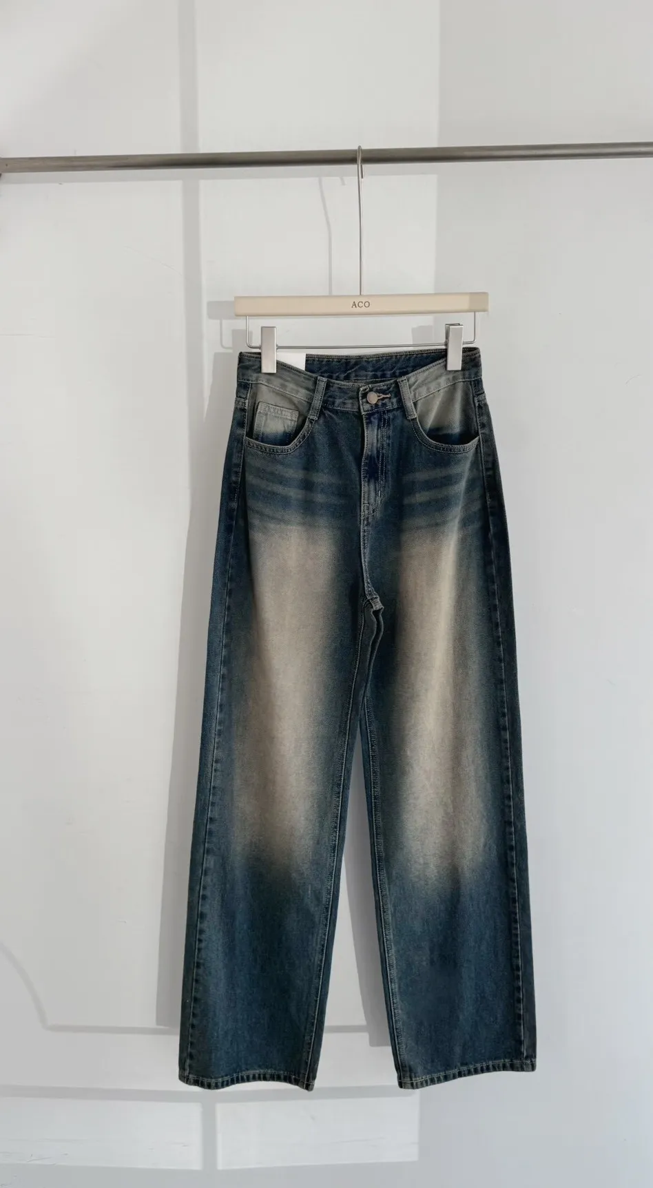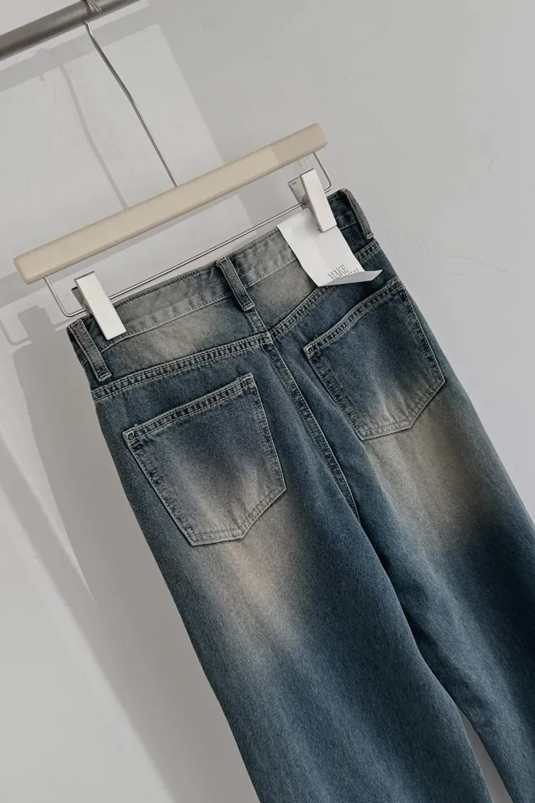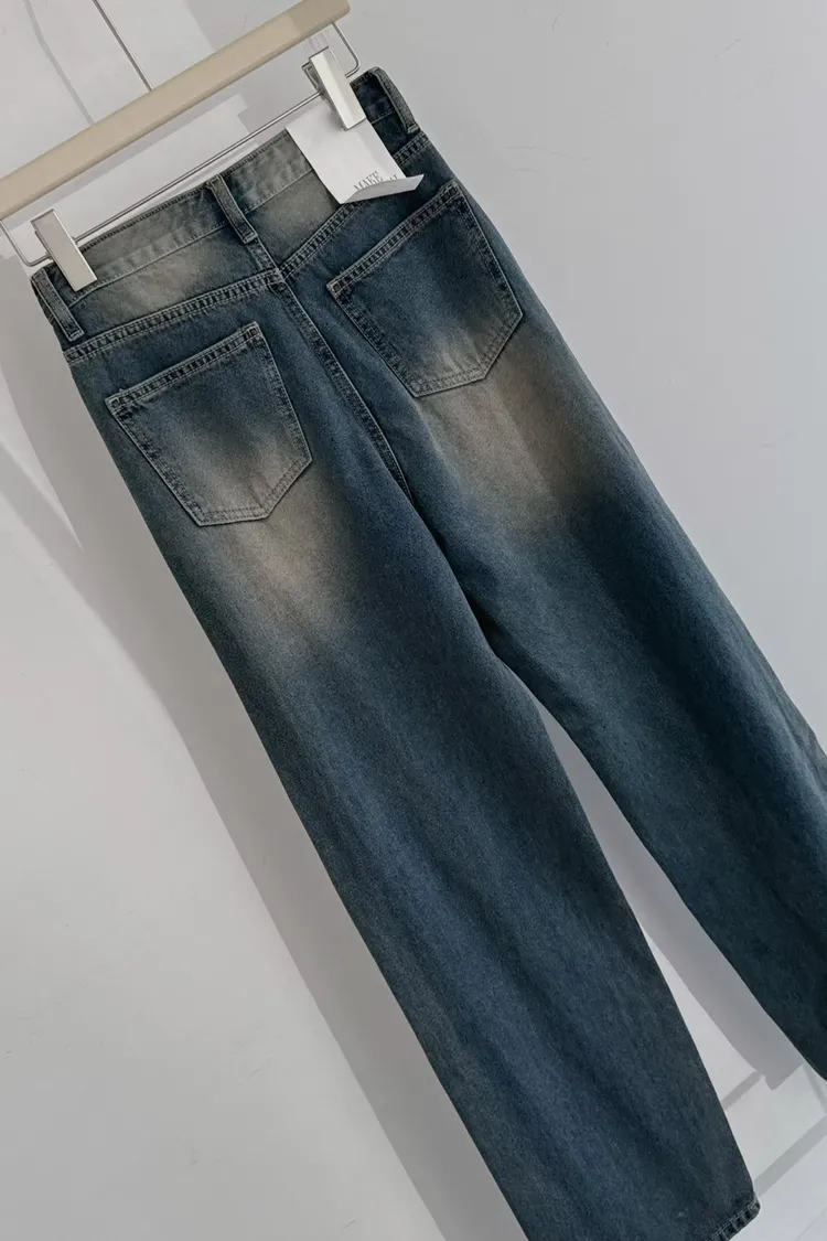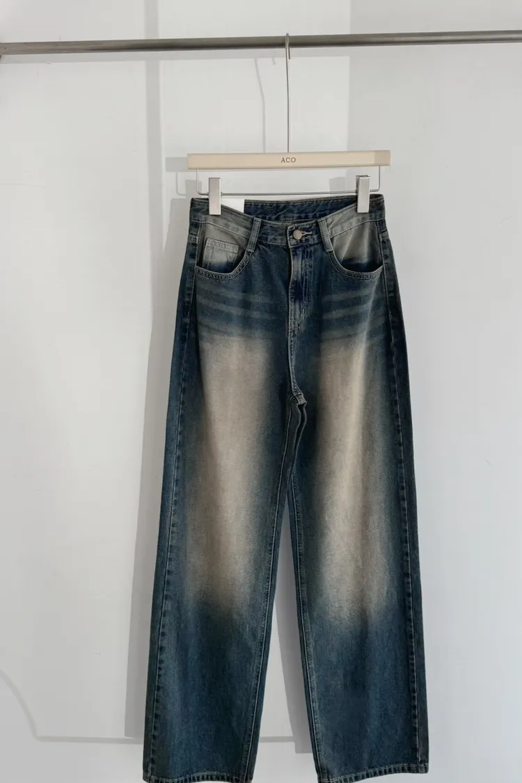 歐巴家私藏復古深藍高腰牛仔寬褲