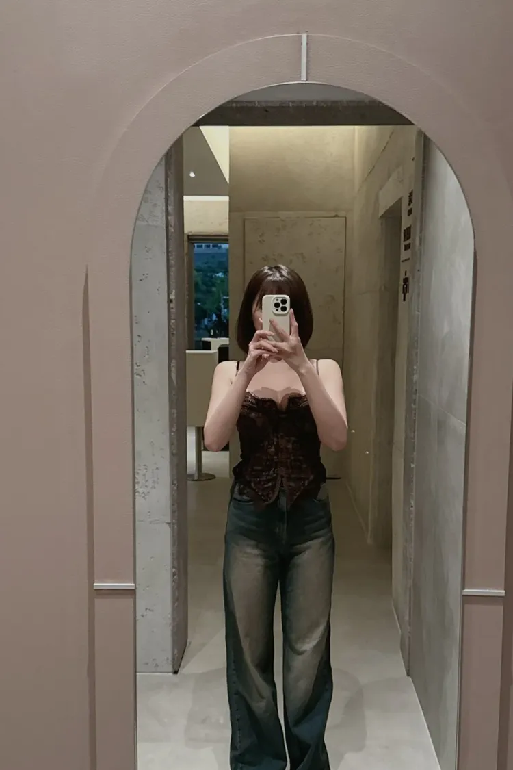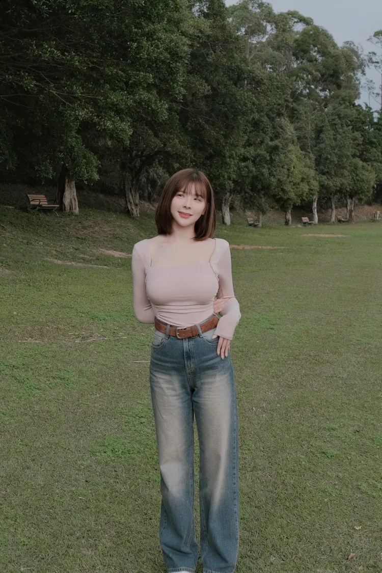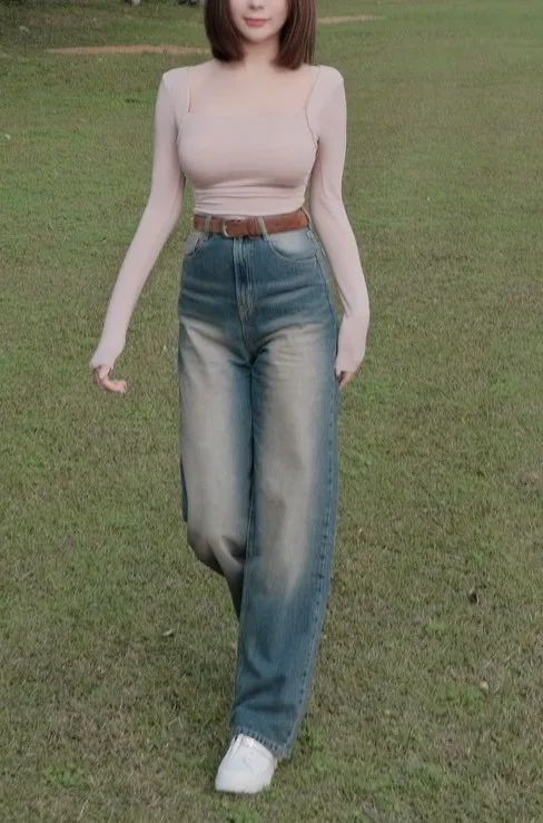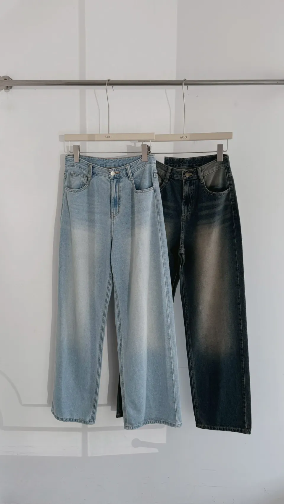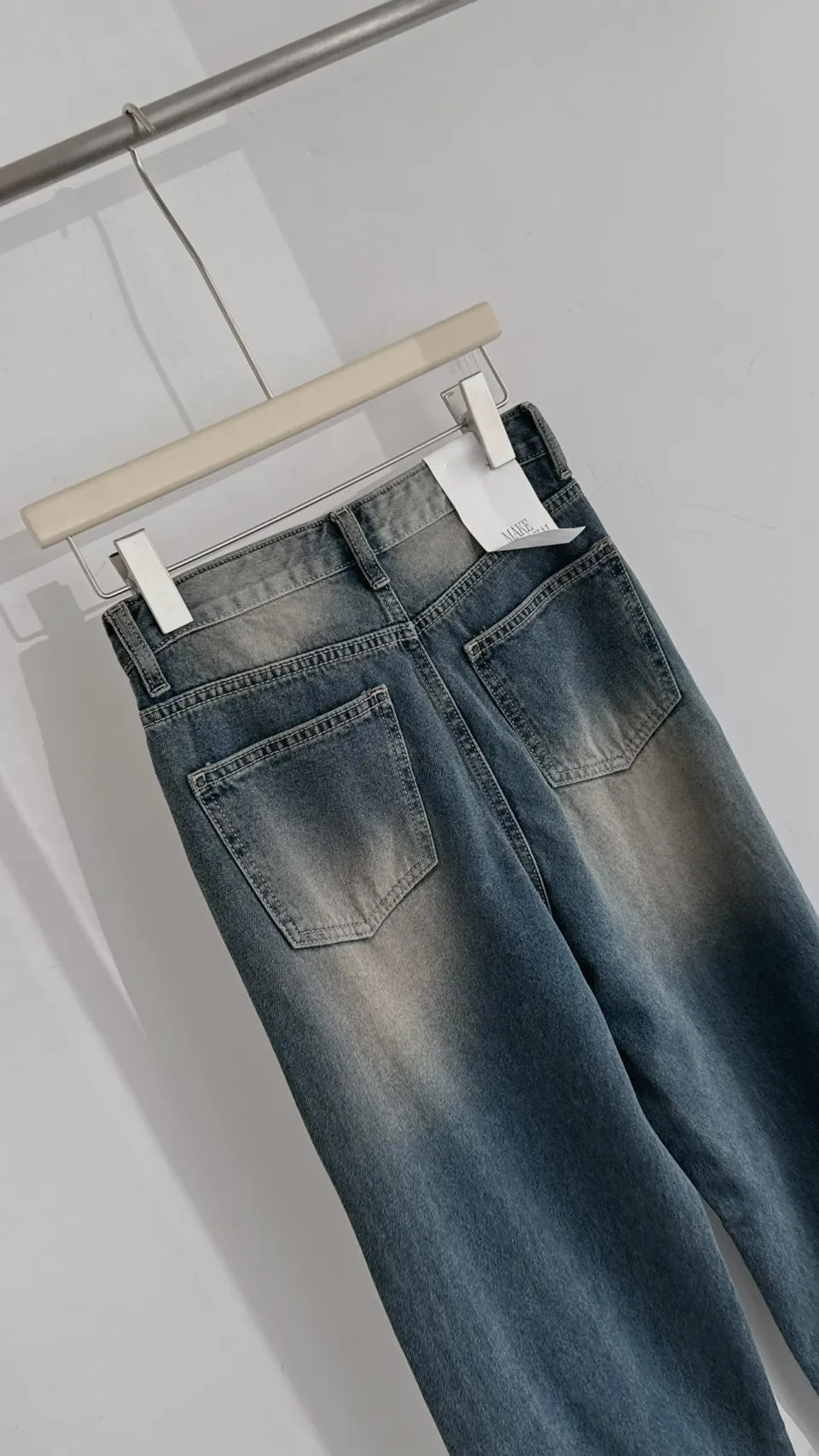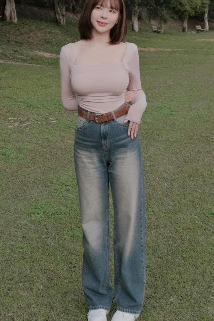 歐巴家私藏復古深藍高腰牛仔寬褲