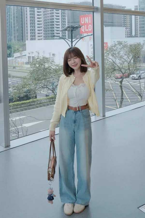 私藏春夏淺藍刷色百搭高腰牛仔寬褲