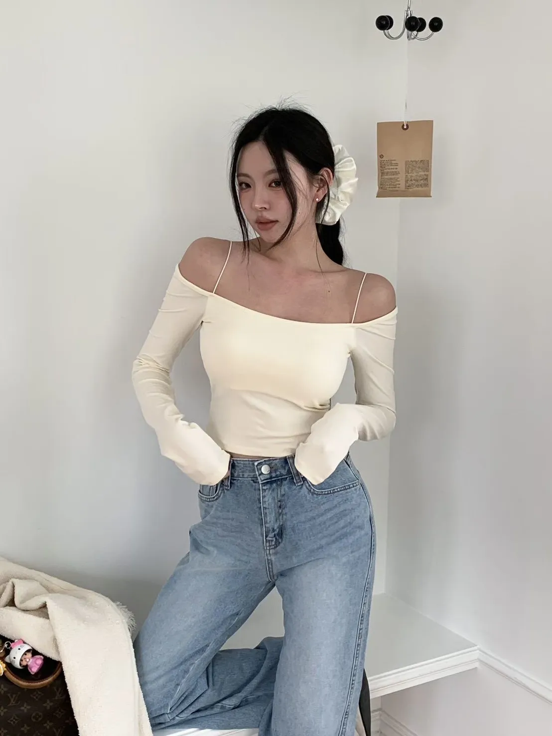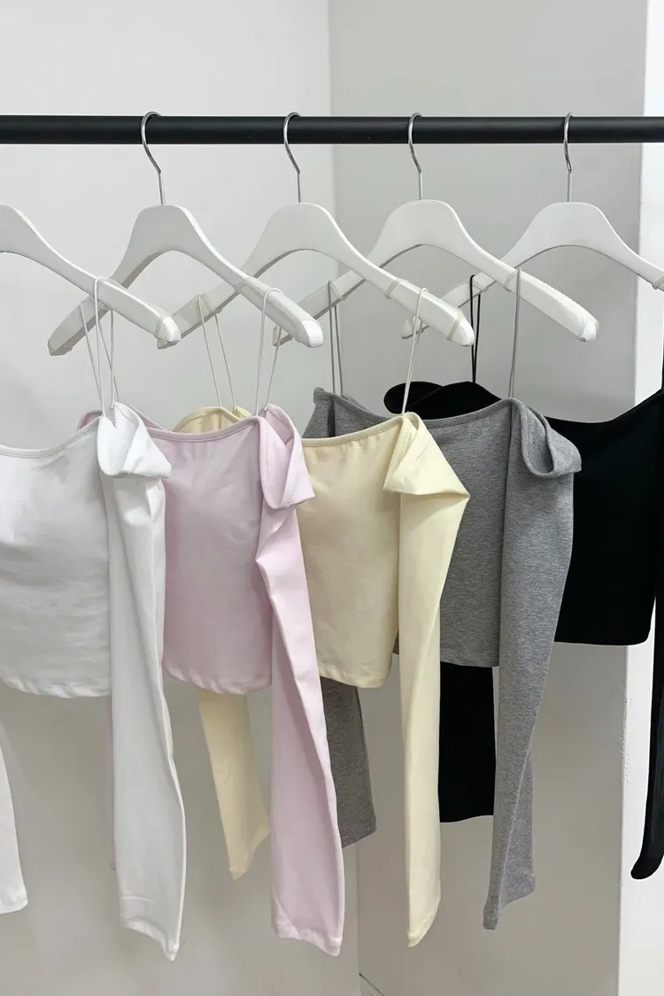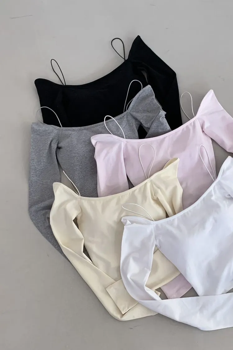 (爆款必買)(包色必備)罩杯棉質彈力一字領棉質tee(罩杯可拆)